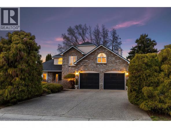 Perched above Kelowna with sweeping lake, city, bridge, mountain, and valley views, this Tuscan-inspired home offers timeless architecture and refined Okanagan living. Travertine tile and immediate lake views welcome you into the grand foyer. Soaring ceilings, wood beams, solid wood doors, and oak hardwood define the main level. The great room is anchored by a wood-burning fireplace with gas starter,…