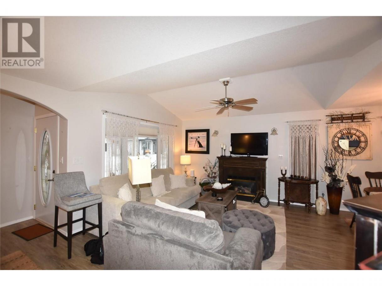 Welcome to 606 Nighthawk Avenue in Parker Cove! This lovely 2-bedroom, 2.5-bathroom rancher offers fantastic parking options, including space for your boat or RV plus a convenient sani-dump—perfect for those who love to explore the Okanagan. Set on a spacious lot just minutes from the beach, this beautifully maintained, custom-built home is an ideal choice for anyone seeking an affordable and comfortable retirement lifestyle. The modern level-entry design features a kitchen with abundant cabinetry and generous counter space, a welcoming living room with a cozy gas fireplace and vaulted ceilings, and a large primary bedroom complete with a walk-in closet and 4-piece en-suite. Additional comforts include central air, built-in vacuum, and a 4-foot crawl space providing ample storage. Recent updates—such as vinyl plank flooring, fresh paint, new backsplash, and updated countertops—add to the home’s appeal. The landscaped backyard is mostly fenced and includes a patio with an awning and a charming gazebo, perfect for relaxing or summer dining. From the front of the home, you can enjoy a view of Lake Okanagan—it’s truly that close. And on clear evenings, the twinkling lights of the surrounding hills and resorts create a magical backdrop. The registered lease runs until 2043, with an annual payment of $4,488.74 ($388.83/month). (id:6769)