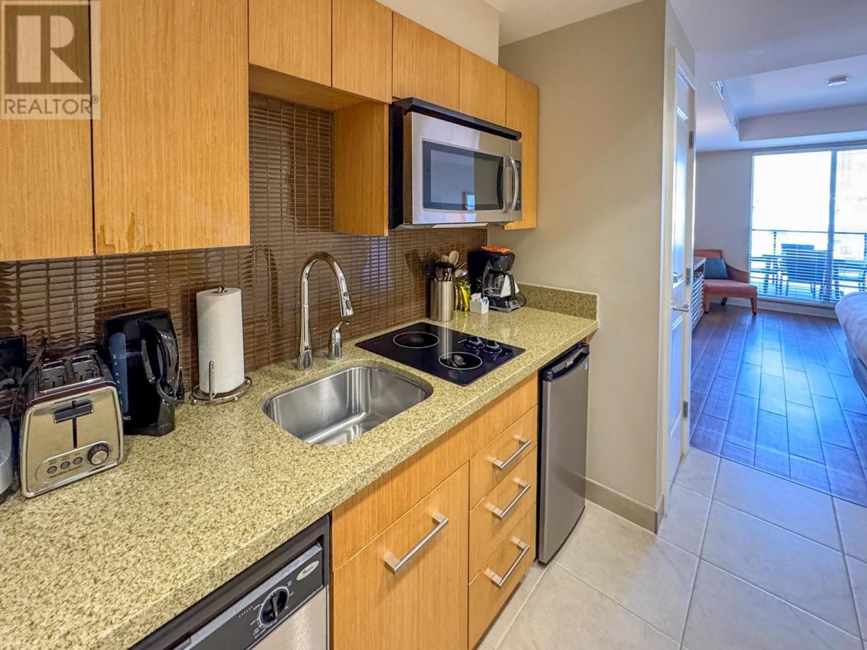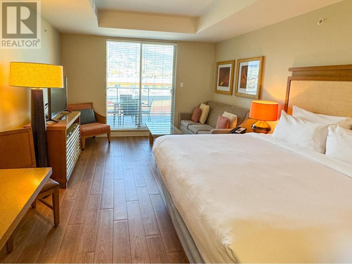 Luxury Resort Living – Own at Watermark Beach Resort on stunning Osoyoos Lake! This stunning fourth-floor studio suite at Watermark Beach Resort is listed at $195,000, well below its $233,300 assessment! Step inside and be greeted by a bright, contemporary space with upscale finishes. The fully equipped kitchenette features sleek granite countertops, modern appliances, and stylish wood cabinetry—ideal for prepping quick meals before heading out to enjoy Osoyoos’ best lakefront location. The open-concept living and sleeping area offers a comfortable queen-sized bed, cozy seating area, and large windows leading to your private balcony. Additionally, no balconies look over or down onto this one! From here, enjoy a glimpse of Osoyoos Lake, perfect for checking water conditions before grabbing your paddleboard or beach gear. As part of the rental pool, this suite is perfect, whether you’re a snowbird looking for a winter escape that can be rented out in summer or someone seeking a vacation home with unlimited personal stays with additional rentals to help pay the bills. This is the lifestyle you deserve! Watermark Beach Resort offers unparalleled amenities, including a stunning outdoor pool, hot tubs, spa, fitness center, on-site restaurant, and beachfront access. Please note: This unit cannot be used as a permanent residence. GST applies to the purchase. (id:6769)