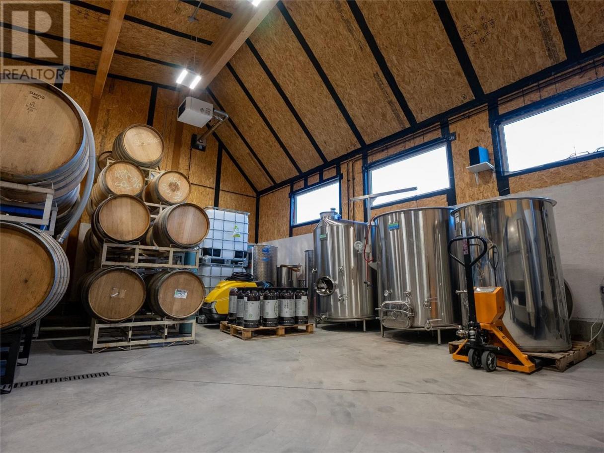 Beautiful 5-Acre Winery in Okanagan Falls. Situated along the scenic McLean Creek Road, this stunning 5-acre winery property offers an incredible opportunity to own a turnkey operation in the heart of Okanagan Falls, one of British Columbia's premier wine regions. With 3.75 acres of mature grapevines split between Gamay and Chenin Blanc, the vineyard is well-positioned to produce quality wines, with the potential to expand production to 5,000 cases annually through additional grape sourcing. The 3,100 sq. ft. winery is purpose-built for both functionality and sustainability. It features an indoor/outdoor crush pad for efficient harvest processing, a fully equipped lab, and office space for operations and quality control. The building is angled for optimal solar energy use, emphasizing eco-friendly design and cost-efficiency. Additionally, the property offers ample space at the rear for the construction of a custom home, allowing for on-site living or further expansion. Located in a high-traffic area with plenty of drive-by visibility, this winery is perfectly positioned for direct-to-consumer sales and wine tastings. Whether you're an established winemaker looking to expand or an entrepreneur eager to enter the wine industry, this property offers everything you need to succeed in the Okanagan's thriving wine region. Contact your favourite agent for more information. (Duplicate listing commercial MLS® 10325851) (id:6769)