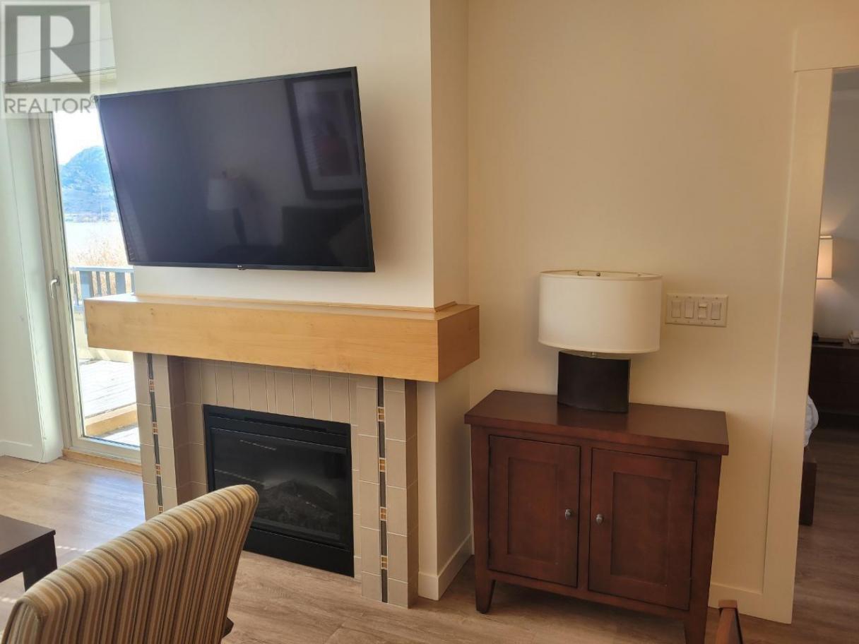 Lakeview 1 bedroom with the largest patio for a 1 bedroom unit in beautiful Walnut Beach Resort. Newer vinyl plank flooring and updated paint. Fully furnished, granite counter tops, stainless steel appliances, electric fireplace, in suite laundry, 2 wall mounted TV's. The suite has a lake view with riparian land between. The resort is lake front providing a private beach, a dock, 2 hot tubs and a heated pool open year round and green space for relaxing or games. The complex includes a restaurant, indoor or outdoor dining, fitness room, outdoor BBQs. The unit is part of a strata rental pool and will generate some income when you aren't using it. Sorry no pets. Strata Fees $664.73/month (id:6769)