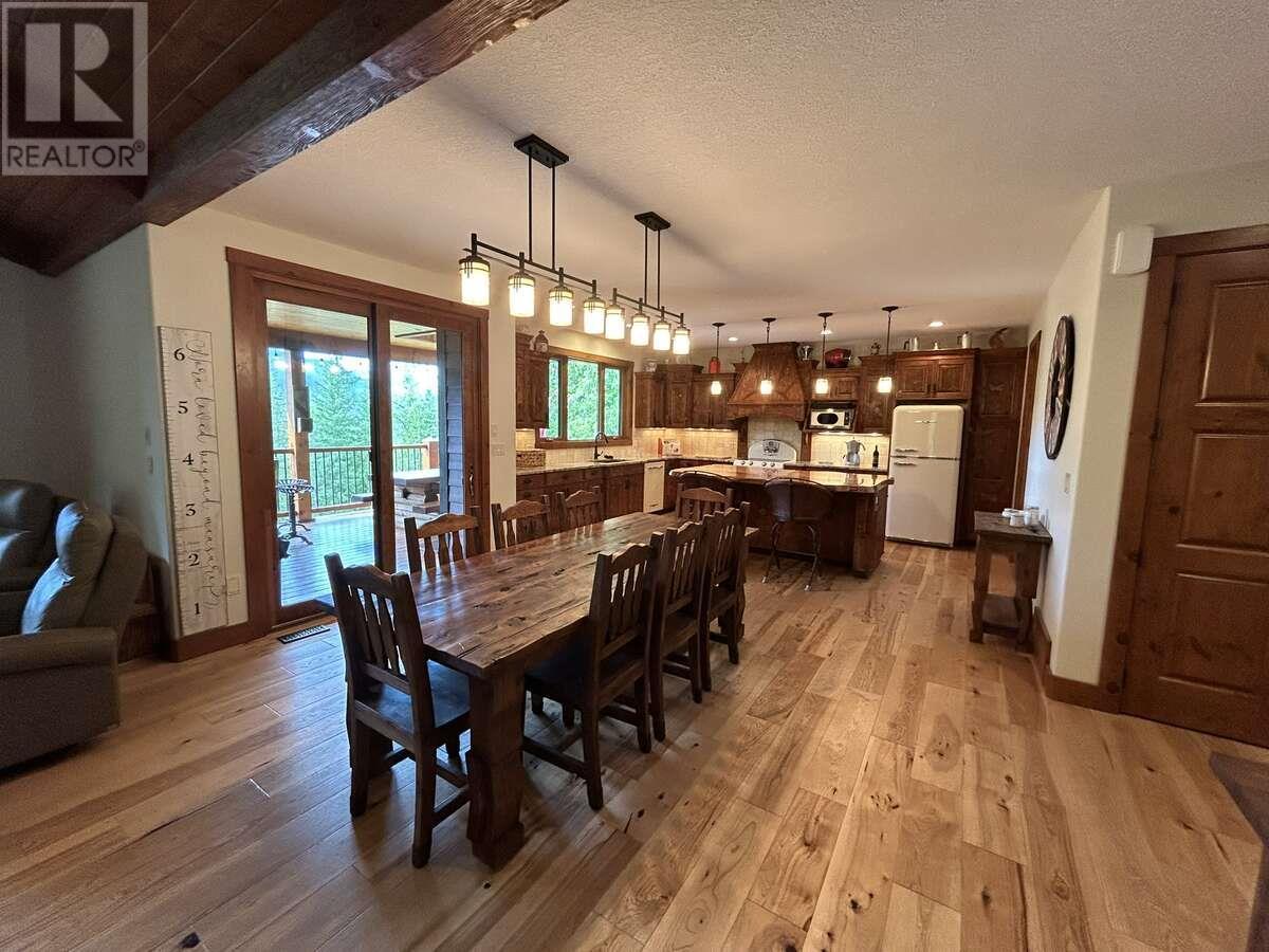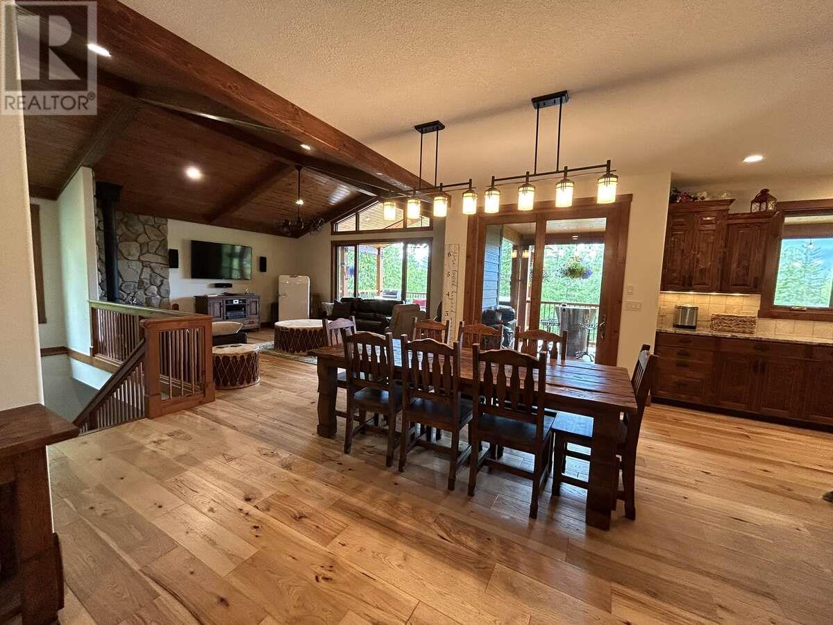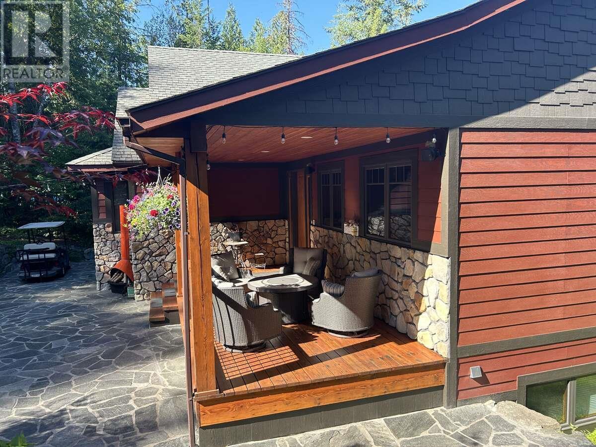For more info, please click on Brochure button below. Escape to an exquisite retreat at Mabel Lake BC. This luxurious 3012 sq ft home epitomizes elegance & functionality with 4 bedrooms, 3.5 bathrooms, & a walkout basement featuring 9'6"" ceilings & a wet bar. The custom-built kitchen is an entertainer’s dream, showcasing Northstar appliances, custom cabinetry, granite countertops, & a stunning solid wood resin island. Wide plank hickory flooring flows throughout, while every bathroom & shower is adorned with travertine tiles. Comfort & efficiency are paramount, with radiant heating, forced air, & air conditioning ensuring year-round comfort, complemented by a cozy wood-burning stove. The living room & master bedroom feature vaulted ceilings, with the living room further enhanced by beautiful exposed wood beams, creating a rustic yet luxurious ambiance. Designed for ultimate outdoor enjoyment, the home features a west-facing 600 sq ft covered back deck with vaulted ceilings, timber beams, and copper railings, perfect for soaking up the afternoon sun. The 235 sq ft front porch echoes the same exquisite finish. The property is tiered with meticulously crafted rock walls & lush landscaping, complete with an irrigation system. At the front, there is a courtyard with a beautiful flagstone patio, providing an inviting space for outdoor gatherings. Additional highlights include a covered stairwell from the roadside above and convenient road access to the oversized garage below. (id:6769)