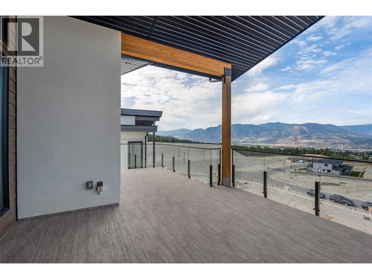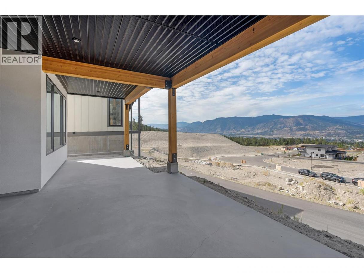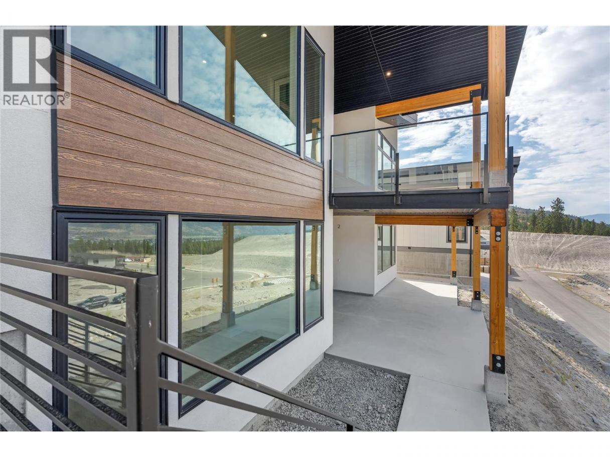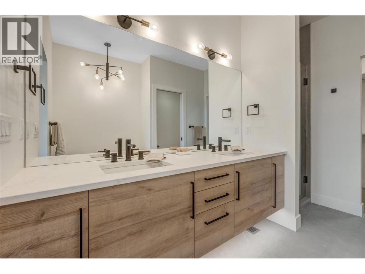Luxurious family home with legal walk-out suite. Welcome to this stunning 2400+ square foot home in the highly sought-after The Ridge Penticton neighborhood. Blending modern design with functional living spaces, this home is perfect for families or those seeking rental income. The main house includes 3 bedrooms and 2 1/2 baths in a thoughtfully designed open-concept layout. The living area features beautiful white oak engineered hardwood flooring, while the ensuite bathroom features matte porcelain tile. The vaulted ceilings enhance the airy and spacious feel of the home. The kitchen is equipped with quartz countertops, custom cabinetry, and high-end Bosch appliances, including a gas range. For added convenience, the Samsung washer and dryer are located in a multifunctional mudroom/laundry room, which has private access from the 2-car garage. A fully carpeted staircase leads to the lower level, continuing into the hallway and one of the bedrooms. The legal walk-out basement suite offers 2 bedrooms and 1 bathroom, making it perfect for long or short-term rentals following the updated provincial legislation. The suite has laminate flooring in the main living area, a private entrance from the street with stair access, a spacious 200+ square foot covered patio and an in-suite laundry. Located in a peaceful neighborhood with access to local amenities, parks, and schools, this property also offers excellent rental potential with its legal suite. (id:6769)