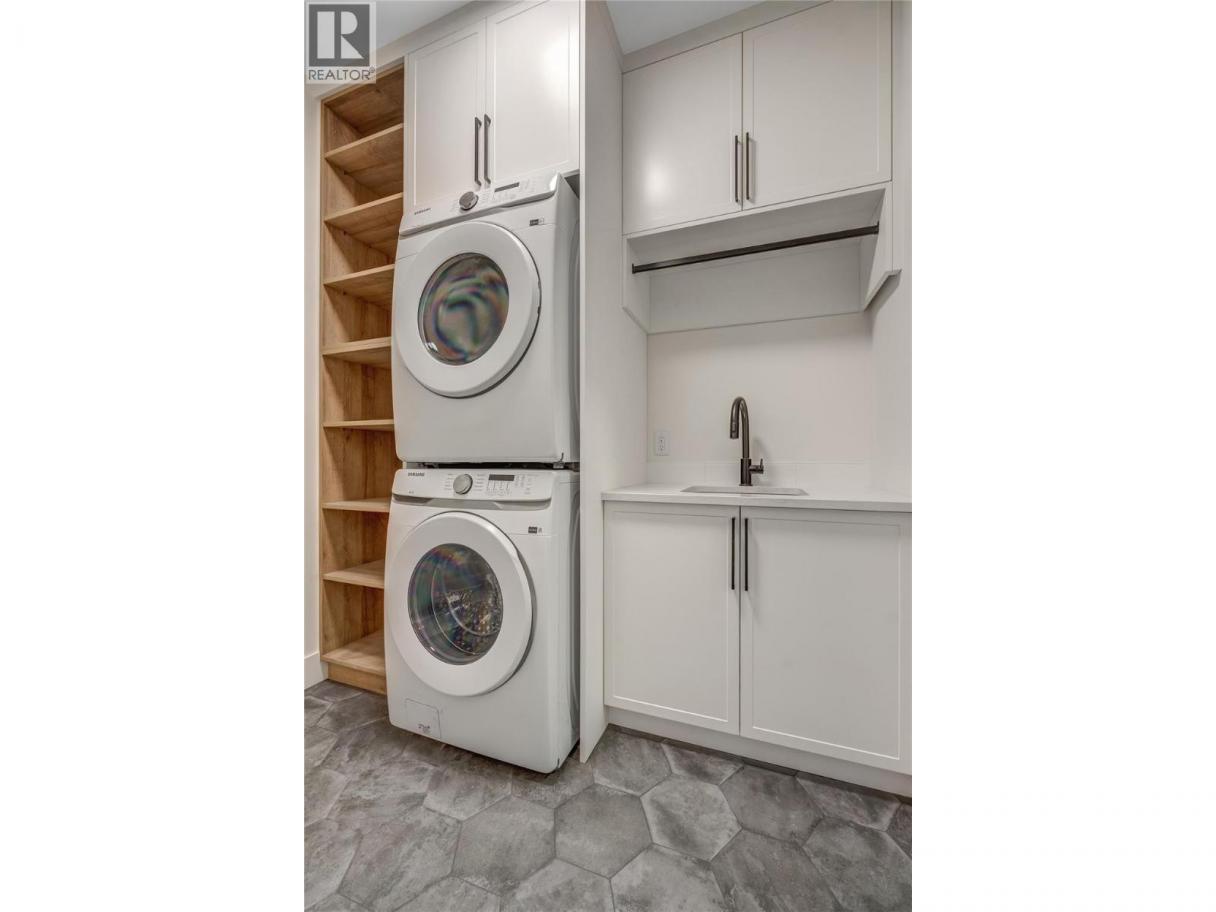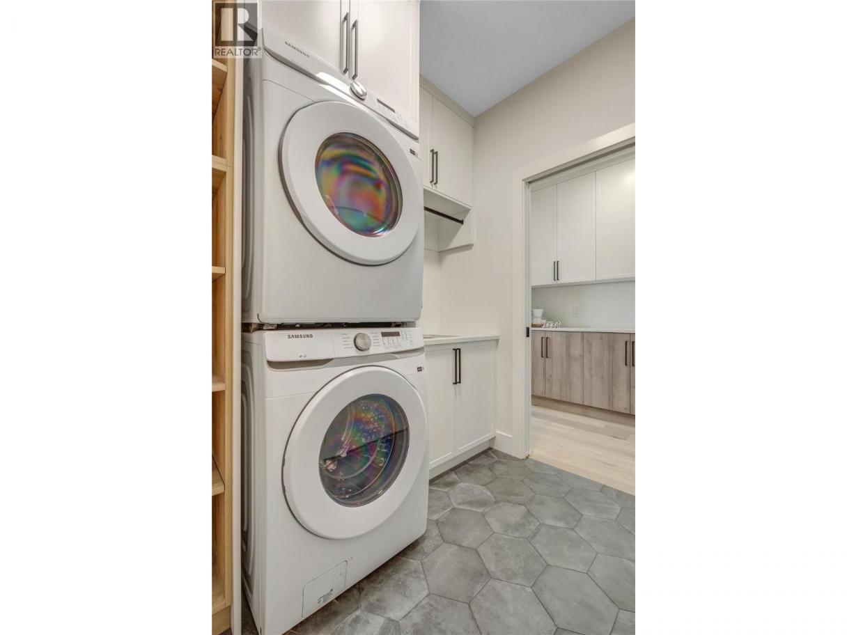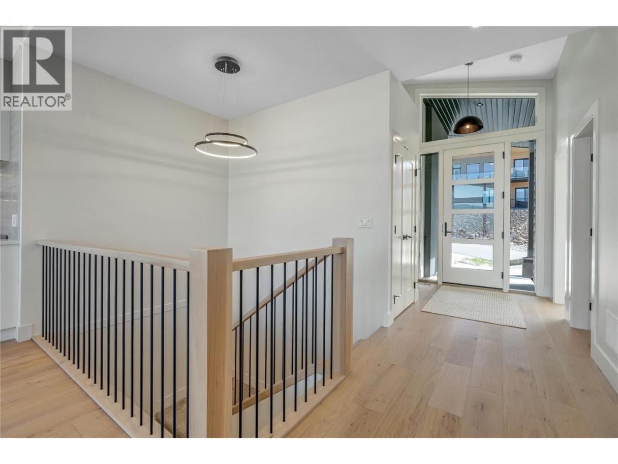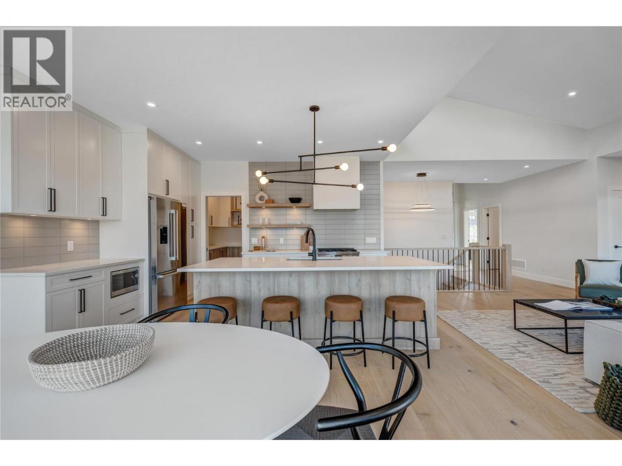Luxurious family home with legal walk-out suite. Welcome to this stunning 2400+ square foot home in the highly sought-after The Ridge Penticton neighborhood. Blending modern design with functional living spaces, this home is perfect for families or those seeking rental income. The main house includes 3 bedrooms and 2 1/2 baths in a thoughtfully designed open-concept layout. The living area features beautiful white oak engineered hardwood flooring, while the ensuite bathroom features matte porcelain tile. The vaulted ceilings enhance the airy and spacious feel of the home. The kitchen is equipped with quartz countertops, custom cabinetry, and high-end Bosch appliances, including a gas range. For added convenience, the Samsung washer and dryer are located in a multifunctional mudroom/laundry room, which has private access from the 2-car garage. A fully carpeted staircase leads to the lower level, continuing into the hallway and one of the bedrooms. The legal walk-out basement suite offers 2 bedrooms and 1 bathroom, making it perfect for long or short-term rentals following the updated provincial legislation. The suite has laminate flooring in the main living area, a private entrance from the street with stair access, a spacious 200+ square foot covered patio and an in-suite laundry. Located in a peaceful neighborhood with access to local amenities, parks, and schools, this property also offers excellent rental potential with its legal suite. (id:6769)