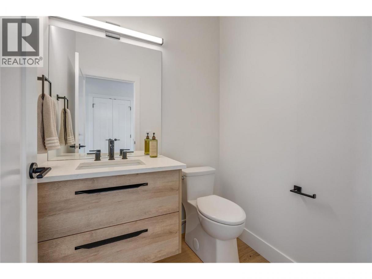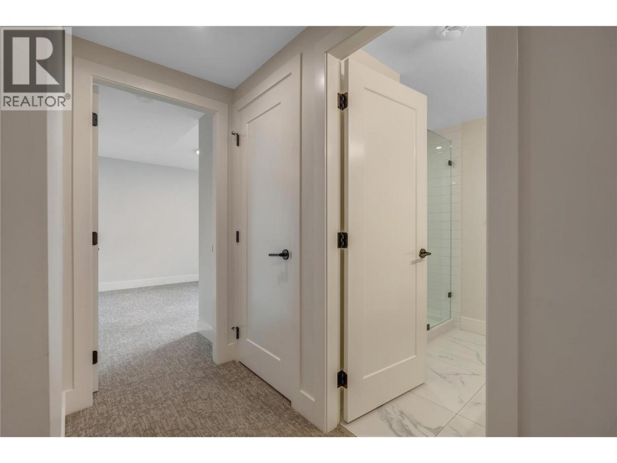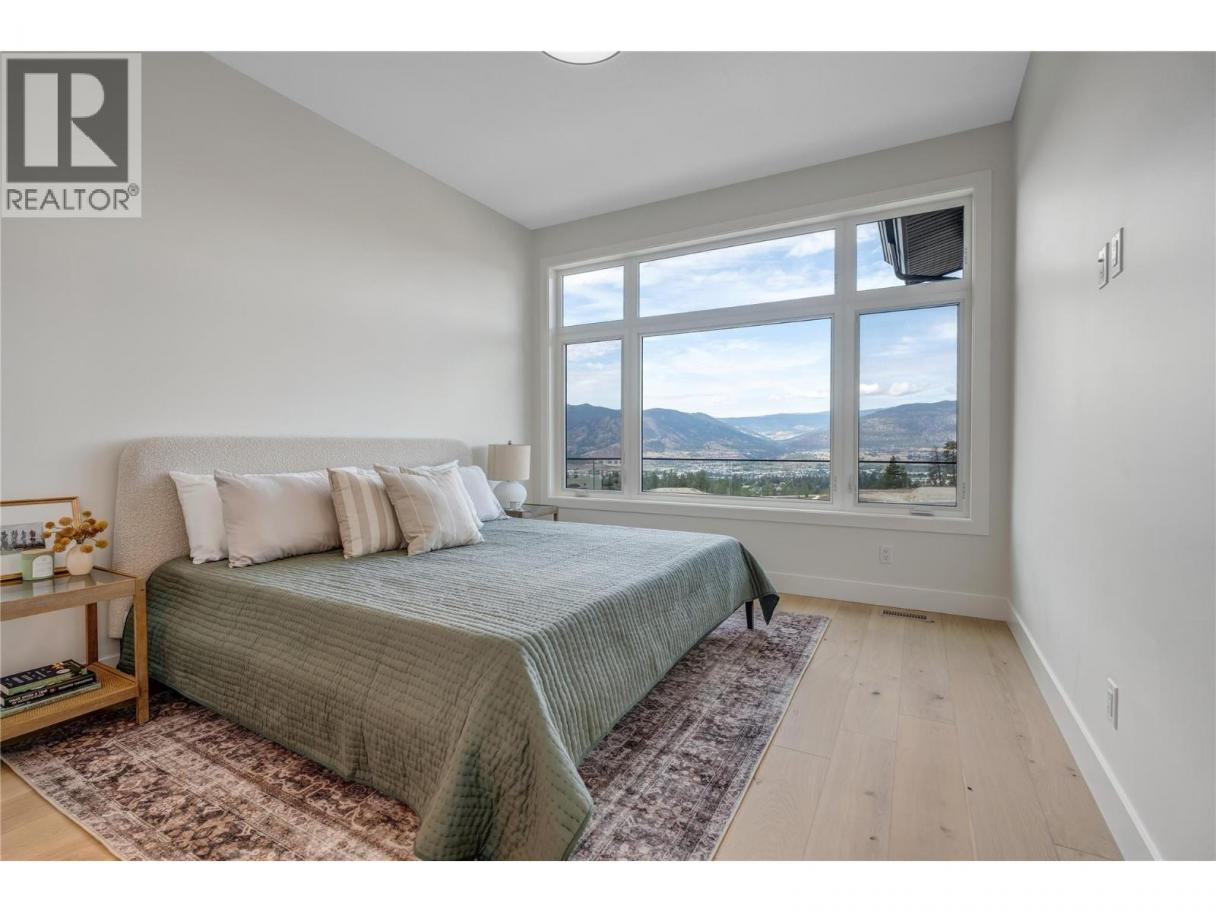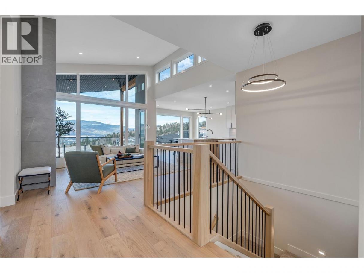 Luxurious family home with legal walk-out suite. Welcome to this stunning 2400+ square foot home in the highly sought-after The Ridge Penticton neighborhood. Blending modern design with functional living spaces, this home is perfect for families or those seeking rental income. The main house includes 3 bedrooms and 2 1/2 baths in a thoughtfully designed open-concept layout. The living area features beautiful white oak engineered hardwood flooring, while the ensuite bathroom features matte porcelain tile. The vaulted ceilings enhance the airy and spacious feel of the home. The kitchen is equipped with quartz countertops, custom cabinetry, and high-end Bosch appliances, including a gas range. For added convenience, the Samsung washer and dryer are located in a multifunctional mudroom/laundry room, which has private access from the 2-car garage. A fully carpeted staircase leads to the lower level, continuing into the hallway and one of the bedrooms. The legal walk-out basement suite offers 2 bedrooms and 1 bathroom, making it perfect for long or short-term rentals following the updated provincial legislation. The suite has laminate flooring in the main living area, a private entrance from the street with stair access, a spacious 200+ square foot covered patio and an in-suite laundry. Located in a peaceful neighborhood with access to local amenities, parks, and schools, this property also offers excellent rental potential with its legal suite. (id:6769)