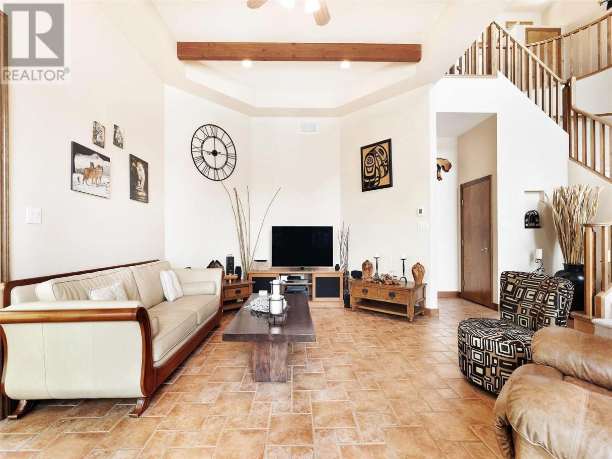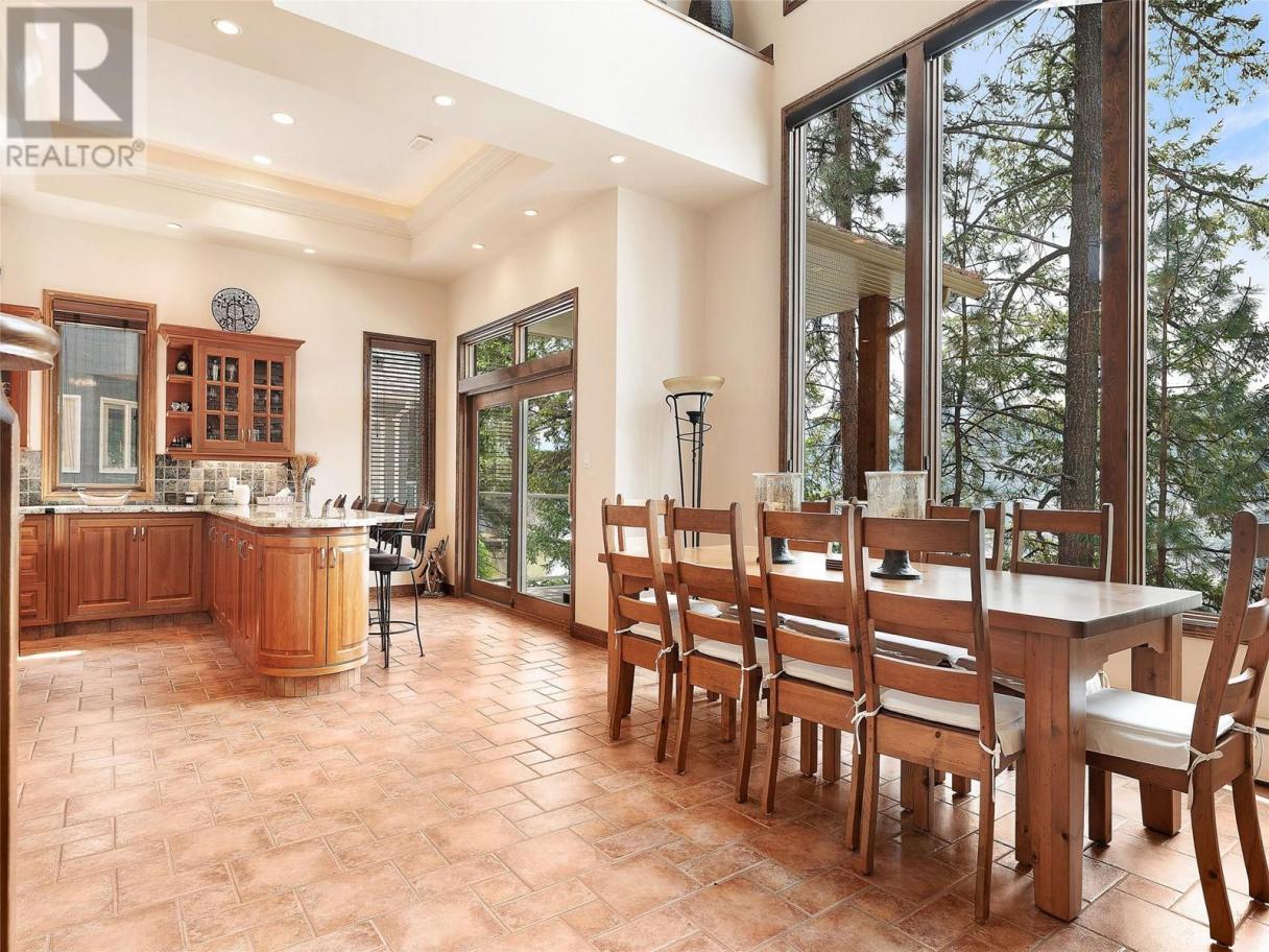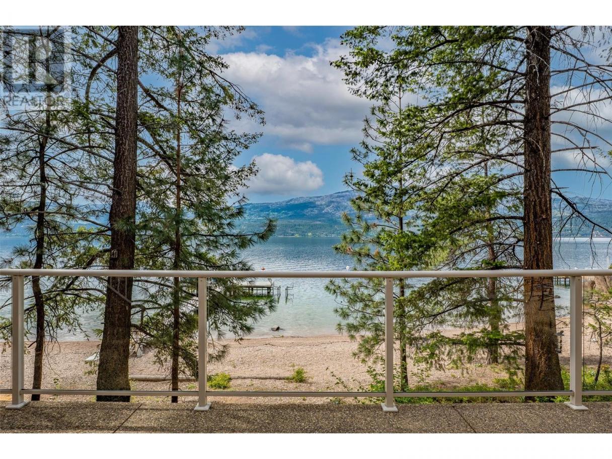 Custom Lakeshore Retreat on a Quiet Bay Nestled in a tranquil bay, this custom lakeshore home blends luxury, privacy, and natural beauty. Set on a coarse granite sand beach, it offers an exceptional waterfront lifestyle with added seclusion from adjacent undeveloped shoreline. The main floor is designed for open-concept living and entertaining, with soaring vaulted ceilings and a striking two-story layout. A grand rock wood-burning fireplace anchors the space and separates the main living area from the private master suite. Expansive windows frame breathtaking lake views that fills the home with natural light. The chef’s kitchen features granite countertops, a large custom island, high-end cabinetry, and a generous walk-in pantry. A spacious dining area seats ten comfortably. A dedicated wine cellar adds to the home’s appeal. At the rear, a large recreation area with coffered ceilings is accessible from three sides—perfect for gatherings or relaxing family time. The home is roughed in for a future elevator, with a designated chase starting in the garage. Multiple decks and a two-sided outdoor fireplace provide year-round enjoyment and stunning views. Set on a low-maintenance lot with native vegetation, this home is designed for easy living. Enjoy the panoramic lake views, natural surroundings, and direct access to a shared dock. Furniture negotiable. Tile looking metal roof A true lakeside retreat—crafted for comfort, style, and lasting memories. (id:6769)