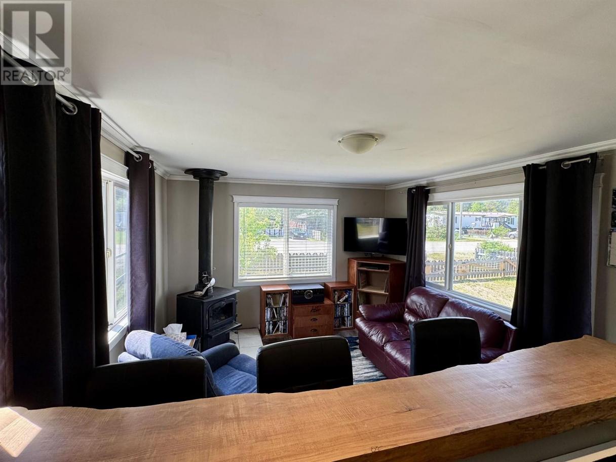 Looking for a low maintenance compact home? This one may fit the bill. Cozy 2 bedroom mobile is 720 sq ft but has everything you need. Great for a bachelor or a starter home. Many renovations and upgrades have been done over the years. Modern spacious kitchen is bright and cheery with a sit up bar with a super cool live edge bar top. Living room has lots of big bright windows letting in lots of sunshine and views. Good size yard is neat and tidy and is fully fenced. Great views all around and only a short walk to the downtown shopping area. (id:6769)