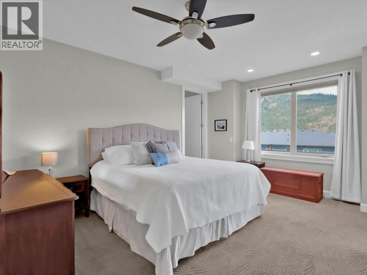 Welcome to lakeside living in the prestigious gated community of Crystal Waters. This exceptional 5,000 sq. ft. residence offers 5 bedrooms and 5 bathrooms, blending luxury, comfort, and an inviting ambiance throughout. The main level showcases an expansive open-concept design connecting the great room, kitchen, and dining area—perfectly flowing onto a large outdoor deck ideal for entertaining. The chef’s kitchen is a showpiece, featuring a massive island, Black Labradorite granite countertops, premium Thermador and KitchenAid stainless steel appliances, elegant two-tone cabinetry, and a spacious walk-in pantry. Completing the main floor is a stunning primary bedroom retreat with a luxurious 5-piece ensuite highlighted by travertine walls and floors, a quartz countertop, and his-and-hers closets. A full bathroom and generous laundry room provide convenient access to the oversized two-car garage with ceiling height designed for vehicle lifts. The upper level offers a second primary suite with a 5-piece ensuite and walk-in closet, a guest bedroom with walk-in closet, a shared bathroom, and a versatile rec/theatre room that opens onto a partially covered sundeck showcasing breathtaking lake views. Both sundecks feature custom stainless steel and glass railings. The fully finished lower level is ideal for hosting family and guests, with a full kitchen, laundry, two bedrooms, a 4-piece bathroom, and a family room that opens to a covered patio and backyard. A large storage room provides ample space for lake toys, bikes, and more. Residents enjoy access to a community boat launch, a private boat slip with lift, and nearly 1,000 feet of pristine lakeshore frontage. This home is truly loaded with features and offers a rare lakeside lifestyle. (id:6769)