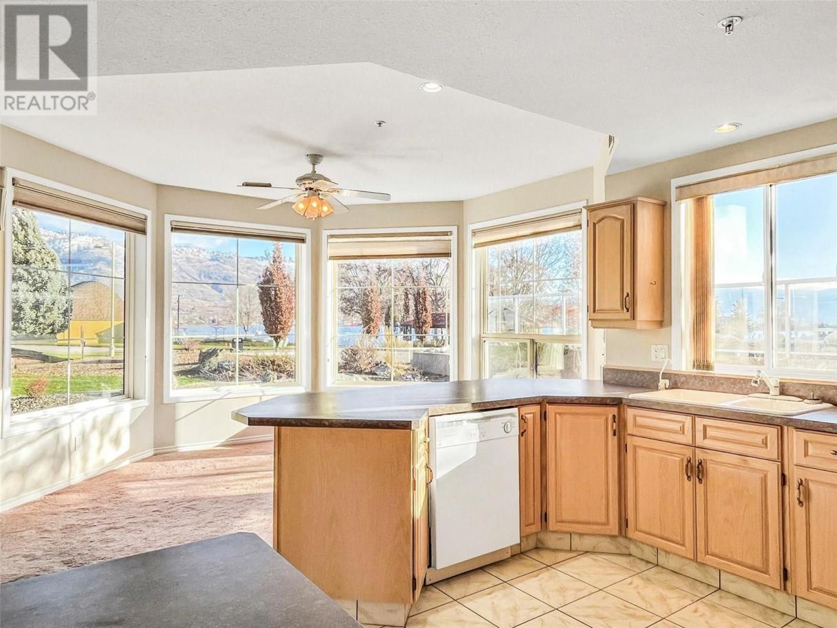 LOCATION, LOCATION, LOCATION!!! Best location in town!!! Great lake and mountain views from this gorgeous approx. 1,800sqft, ground level, corner suite in the prestigious White Sands complex located steps to Main Street, in the heart of downtown Osoyoos, walking distance everywhere, just steps to the lake & beach. 2 bedrooms + Den/office and 2 bathrooms, open floor plan, spacious kitchen and breakfast nook with bay windows, , large deck facing East, huge windows to enjoy the view of the lake, boats & watersports, morning sun and spectacular sunsets, 9 foot ceilings, spacious walk-in and wall-to-wall closets, in-suite laundry, central vacuum, central air heating and air conditioning with thermostat control, gas fireplace, 2 underground parking spaces and storage locker. Great, quiet complex features intercom access, games room, meeting room, workshop & guest suites. Great location, only steps to the lake and its sandy beach, walking distance to postal office, medical offices, grocery shops, restaurants, coffee shops and all amenities. Rentlas allowed, Age 55+, 1 small pet welcome. (id:6769)