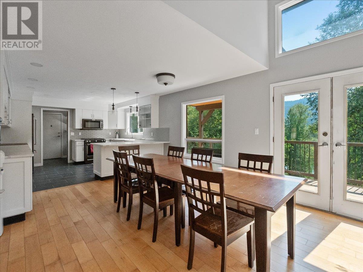 A little slice of paradise! Perfectly situated on the stunning Slocan River in the heart of Winlaw. This beautiful open-concept home is filled with natural light, featuring hardwood floors, updated kitchen designed with entertaining in mind that seamlessly flows into a well-thought-out layout. The spacious floor plan includes 3 bedrooms and 2 baths, highlighted by its master loft suite with a private balcony overlooking the river and breathtaking mountain views. Additionally the finished, self-contained basement suite with separate access offers endless possibilities—ideal for guests, income, or extended family living. Set on 5+ picturesque acres, the property offers outbuildings, lush gardens and surroundings, plus approx 300 feet of pristine river frontage. Enjoy crystal-clear waters and a white sandy river bottom, all framed by the valleys gorgeous mountain scenery. This private riverside retreat offers the perfect blend of peace and convenience (id:6769)