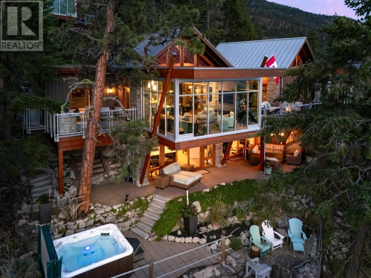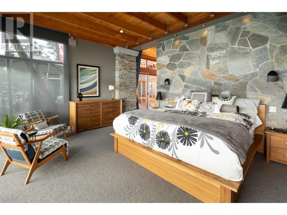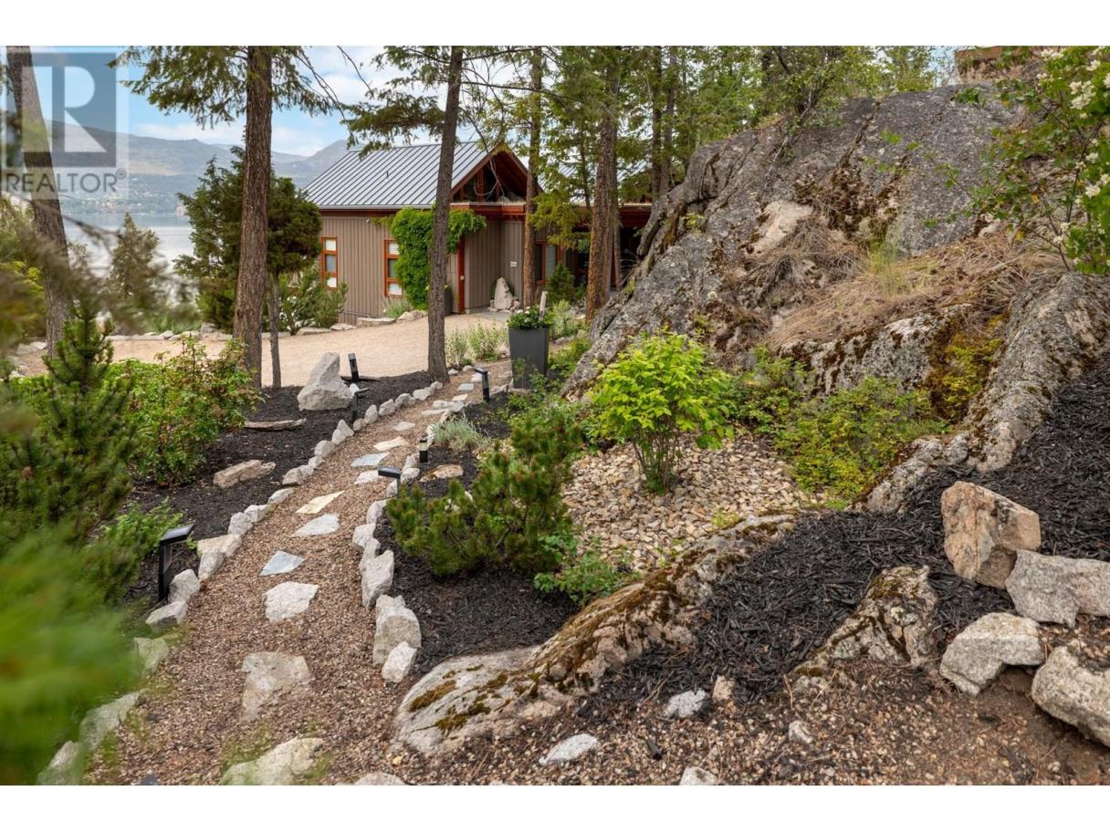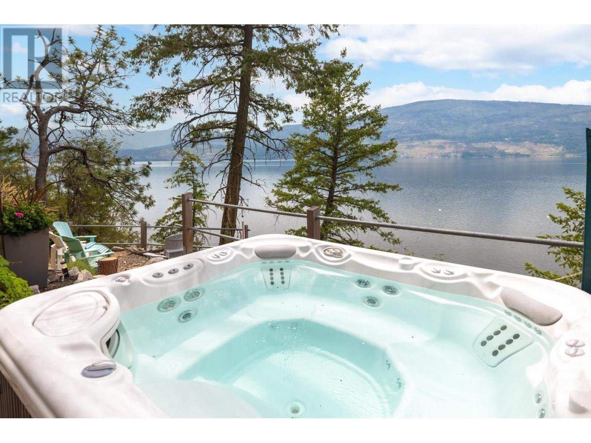 Perched above the shoreline in the exclusive Outback community, this one-of-a-kind cantilevered lakefront home is a West Coast-inspired masterpiece that blends bold architecture with the serenity of nature. Crafted into the rocky knoll, the 5 bedroom, 4 bathroom custom residence offers 3,423 sq.ft. of thoughtfully designed living space and over 1,200 sq.ft. of multilevel outdoor terraces, all with panoramic lake views. Vaulted timber ceilings, expansive windows, and organic materials create a seamless connection between indoors and out. The chef’s kitchen features brand-new Sub-zero appliances and a one-of-a-kind burl piece from California’s iconic Redwood forest, while the living room and primary suite are both framed by uninterrupted vista views of Okanagan Lake. Luxurious features include a lakeside hot tub, media room, multiple lounging decks, and a lower-level recreation room—perfect for entertaining or unwinding in privacy. 3 owned parking stalls as an added bonus. As part of The Outback’s resort-style community, enjoy access to the private marina, two sandy swimming bays, tennis courts, two pools with hot tubs, a fitness center, and a lakeside fire pit lounging area adjacent to the rare salmon spawning bay. Surrounded by protected parkland, this is a true retreat for those seeking immersive natural luxury. Enjoy direct access to scenic hiking and biking trails and take advantage of the close proximity to the neighboring resort community of Predator Ridge. (id:6769)