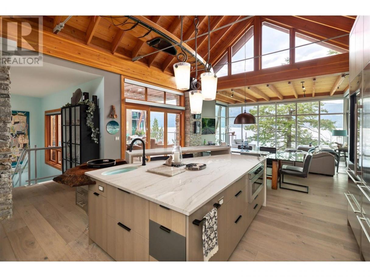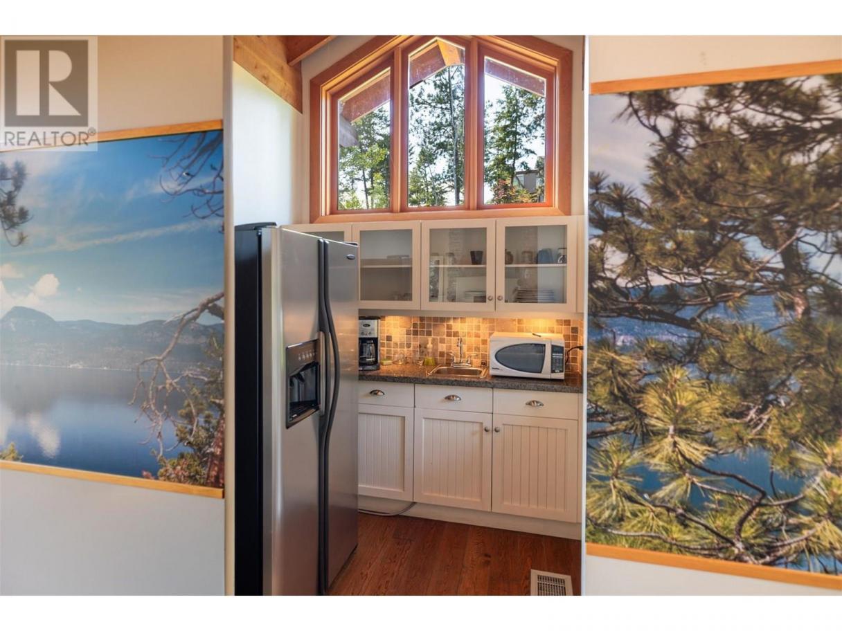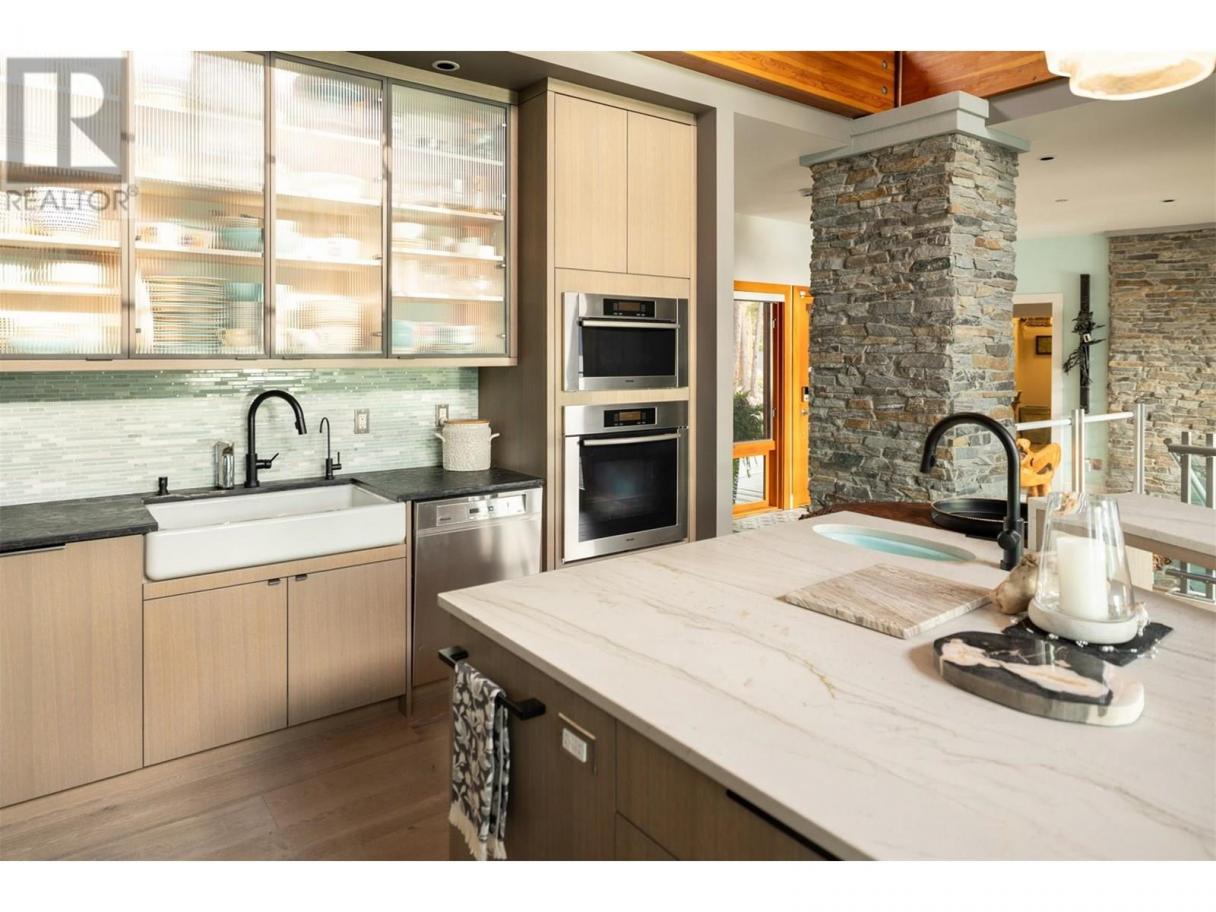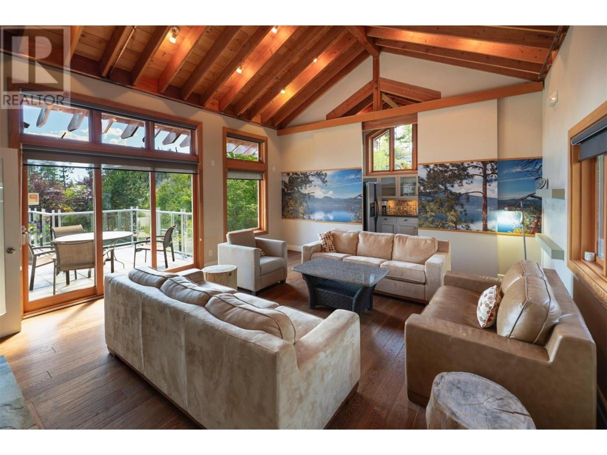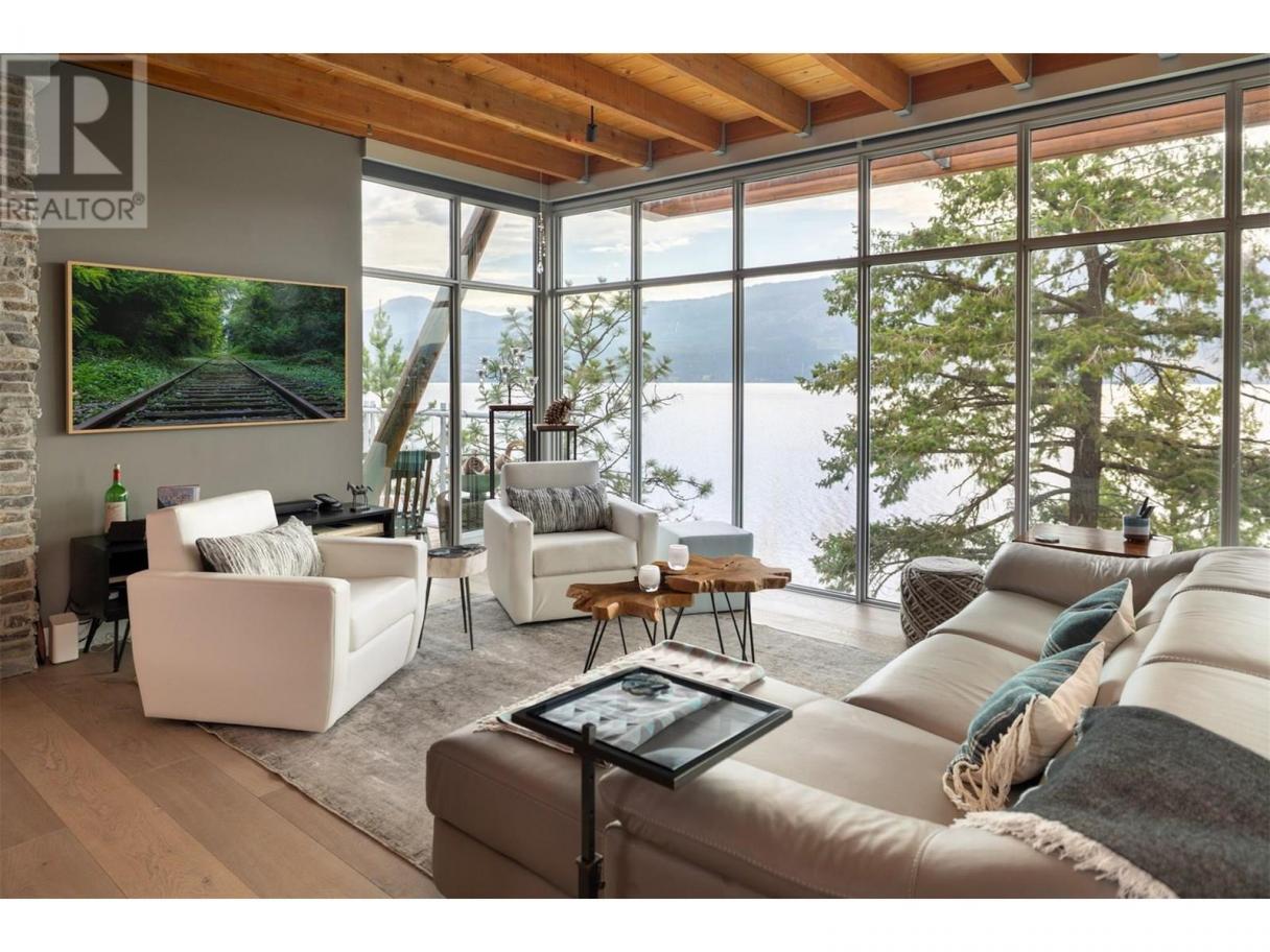Perched above the shoreline in the exclusive Outback community, this one-of-a-kind cantilevered lakefront home is a West Coast-inspired masterpiece that blends bold architecture with the serenity of nature. Crafted into the rocky knoll, the 5 bedroom, 4 bathroom custom residence offers 3,423 sq.ft. of thoughtfully designed living space and over 1,200 sq.ft. of multilevel outdoor terraces, all with panoramic lake views. Vaulted timber ceilings, expansive windows, and organic materials create a seamless connection between indoors and out. The chef’s kitchen features brand-new Sub-zero appliances and a one-of-a-kind burl piece from California’s iconic Redwood forest, while the living room and primary suite are both framed by uninterrupted vista views of Okanagan Lake. Luxurious features include a lakeside hot tub, media room, multiple lounging decks, and a lower-level recreation room—perfect for entertaining or unwinding in privacy. 3 owned parking stalls as an added bonus. As part of The Outback’s resort-style community, enjoy access to the private marina, two sandy swimming bays, tennis courts, two pools with hot tubs, a fitness center, and a lakeside fire pit lounging area adjacent to the rare salmon spawning bay. Surrounded by protected parkland, this is a true retreat for those seeking immersive natural luxury. Enjoy direct access to scenic hiking and biking trails and take advantage of the close proximity to the neighboring resort community of Predator Ridge. (id:6769)