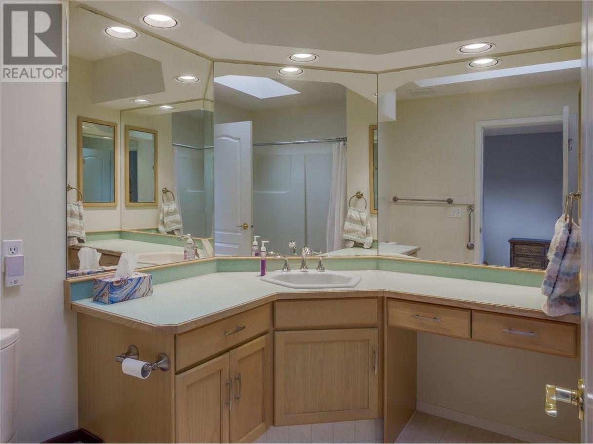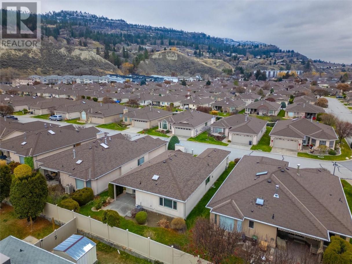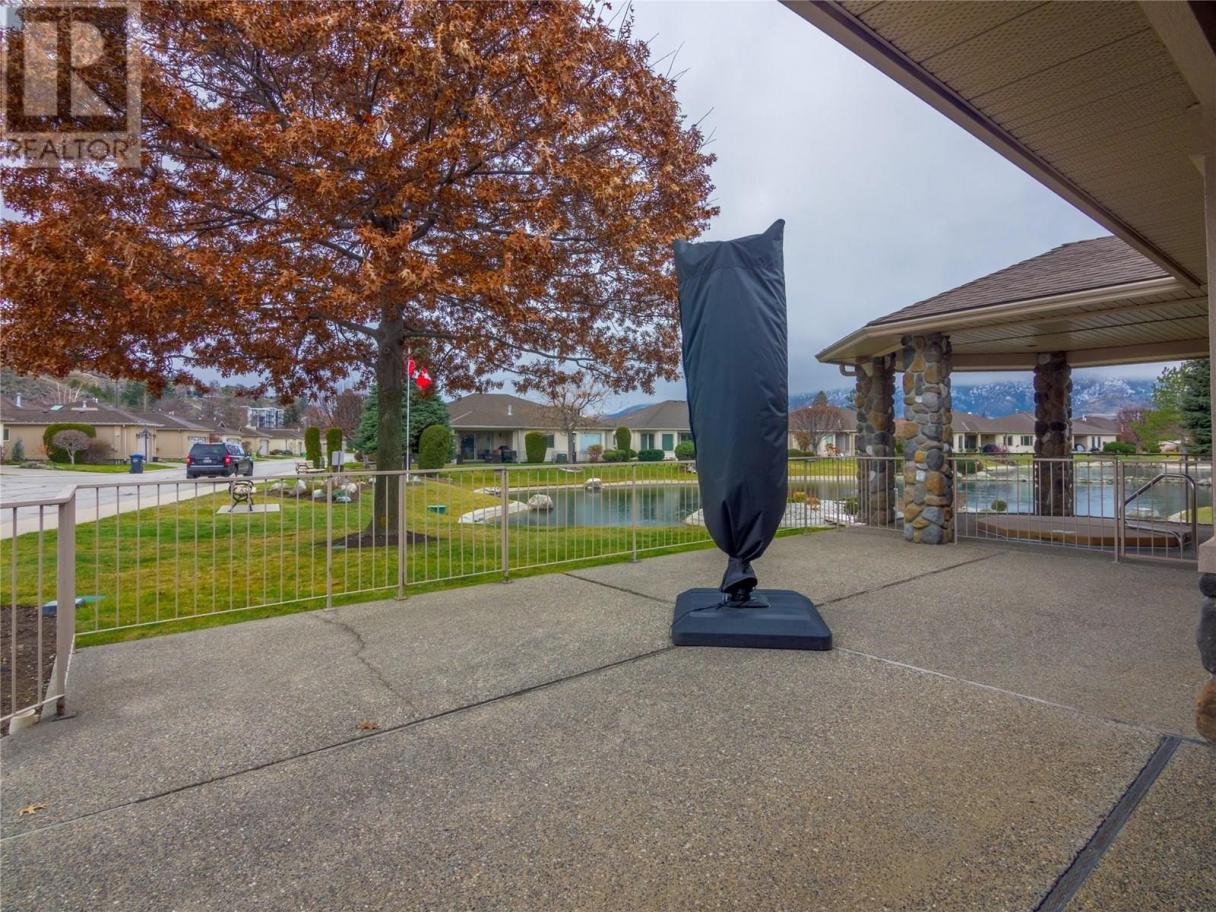Welcome to Sandbridge, a coveted gated community with stunning waterways and landscaping, beautiful club house with a pool, and a premium location near Skaha Lake and the seniors center. This lovely 1307sqft rancher style home is move in ready. As you enter the front foyer to your right is the large laundry room with extra storage space and garage access, a large closet and welcoming space. The well appointed living and dining room features easy care laminate floors, a gas fireplace, tons of windows and natural light and room for all your furniture. This home has had the kitchen redone and a window opened up between the spaces creating a more modern layout, more natural light and a great space for entertaining. There are beautiful shaker style cabinets in a warm wood with contrasting counters and stainless steel appliances. The kitchen has space for a table or island or more cabinets, and it opens to the very private back North facing patio with no homes looking back at it. There is a large guest bedroom and bathroom and a very spacious primary suite with walk in closet and large ensuite bathroom. The main areas have been freshly painted, and the poly b has been removed from the home, just move in and enjoy this lovely home in a friendly and well run complex. A short walk will take you to shops, trails, walkways, the beach and parks, a pub, and so much more. (id:6769)