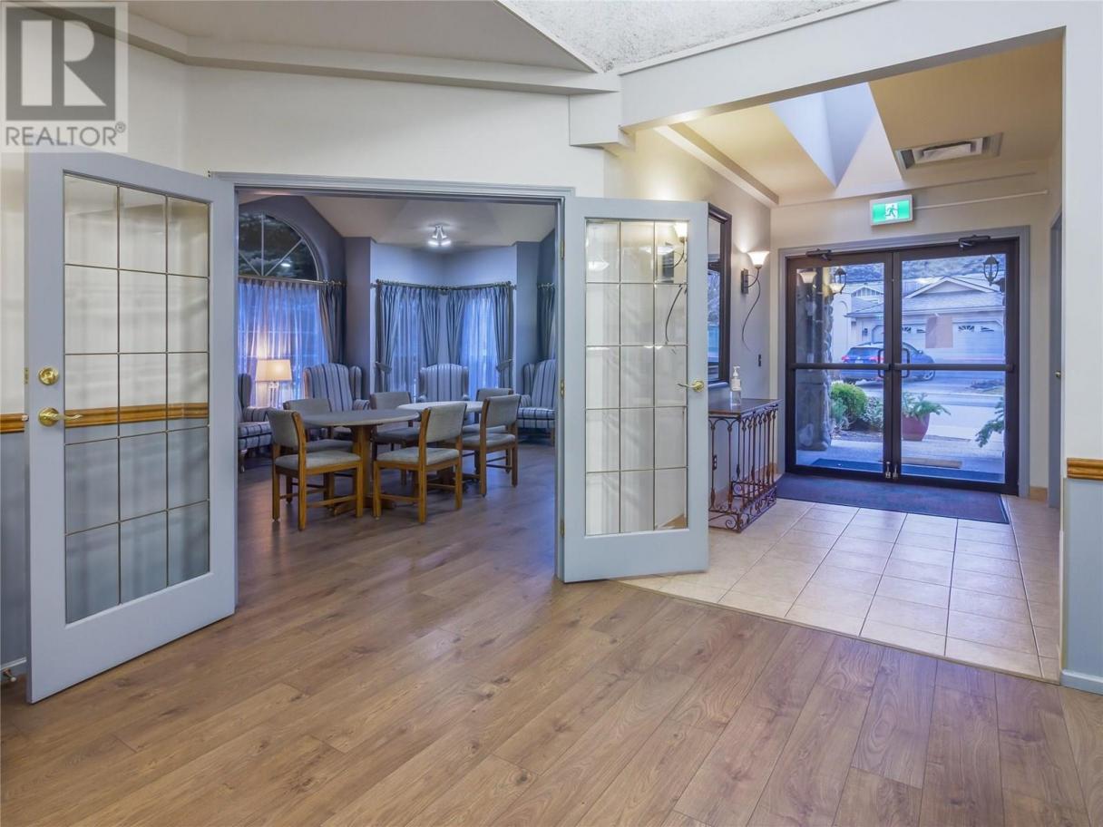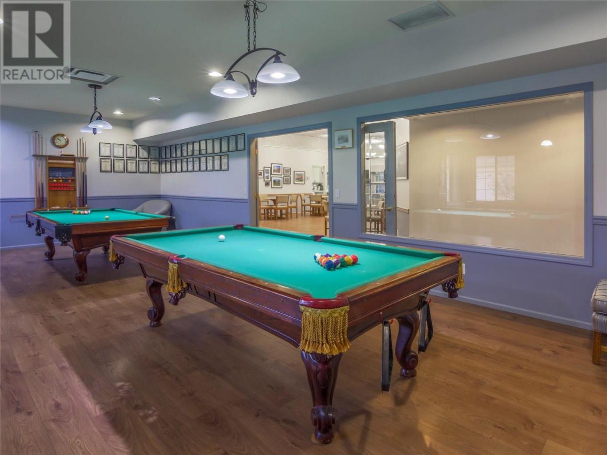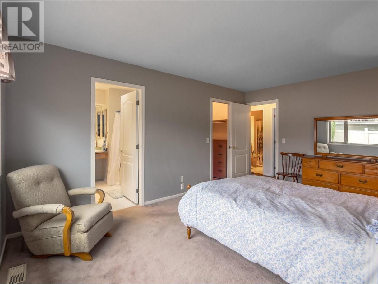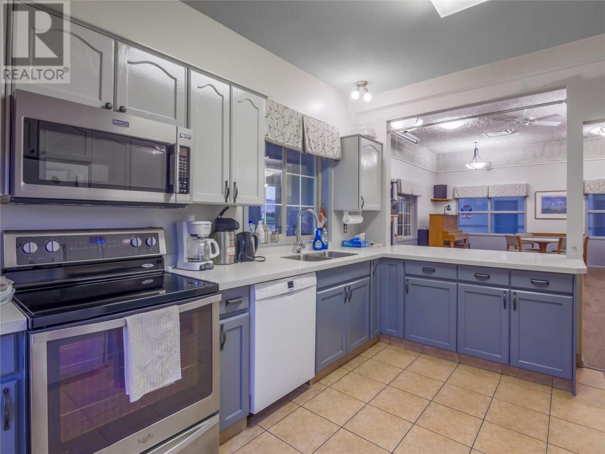 Welcome to Sandbridge, a coveted gated community with stunning waterways and landscaping, beautiful club house with a pool, and a premium location near Skaha Lake and the seniors center. This lovely 1307sqft rancher style home is move in ready. As you enter the front foyer to your right is the large laundry room with extra storage space and garage access, a large closet and welcoming space. The well appointed living and dining room features easy care laminate floors, a gas fireplace, tons of windows and natural light and room for all your furniture. This home has had the kitchen redone and a window opened up between the spaces creating a more modern layout, more natural light and a great space for entertaining. There are beautiful shaker style cabinets in a warm wood with contrasting counters and stainless steel appliances. The kitchen has space for a table or island or more cabinets, and it opens to the very private back North facing patio with no homes looking back at it. There is a large guest bedroom and bathroom and a very spacious primary suite with walk in closet and large ensuite bathroom. The main areas have been freshly painted, and the poly b has been removed from the home, just move in and enjoy this lovely home in a friendly and well run complex. A short walk will take you to shops, trails, walkways, the beach and parks, a pub, and so much more. (id:6769)