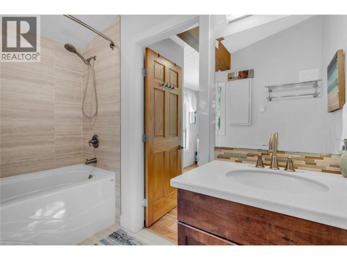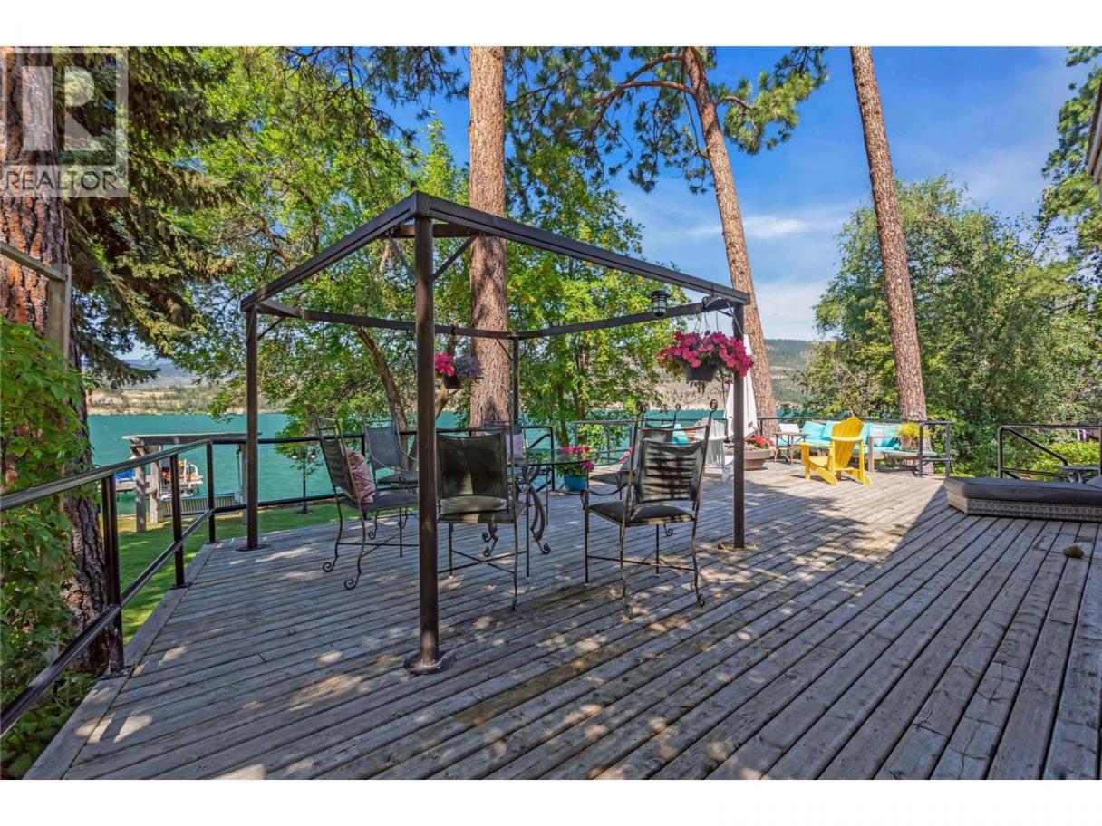 Lakefront Luxury! Relax in Okanagan paradise. This elegant home features crisp white finishes and rich, exposed wood beams, floors and cabinets creating a warm atmosphere that’s both refined and inviting. Step outside and experience true lakeside living. Your dock is directly on Wood Lake which offers easy passage into the stunning Kalamalka Lake. The beautiful yard is built for year-round enjoyment with tons of lake frontage, a spacious patio, a firepit for cool evenings, a private beach, garden beds, and even a charming stand-alone bar for entertaining guests. The swinging loveseat by the water? That’s the spot where sunsets become your nightly routine and memories are made. There's an additional bedroom or office next to the detached garage and tons of space for everyone to stay while entertaining. The home backs onto the Okanagan Rail Trail, a scenic trail that connects to Vernon. It's also just an hour from two world-class ski resorts. Beyond the lifestyle appeal, there’s serious potential here. The lot is large enough to accommodate an additional building set back from the existing home. Meaning you can build your dream home and still have somewhere to live (buyer to confirm with the District of Lake Country). Whether you’re looking for a private retreat or exploring options for future development, this property offers flexibility and long-term value. This is the kind of lakefront that rarely hits the market, and when it does, it doesn’t last long. (id:6769)