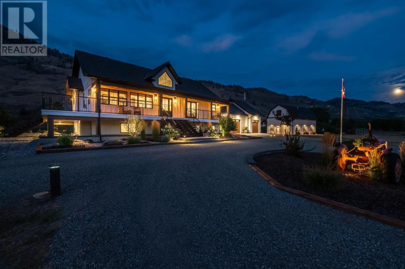Perched just on the edge of town on Osoyoos’s coveted East Bench, this Modern Farmhouse estate isn’t just a home — it’s your dream lifestyle in the making. Spanning nearly 4.5 acres, with panoramic views of Osoyoos Lake and the sun-drenched South Okanagan hillsides, every moment here feels like a postcard. Wake up to the soft glow of sunrise over the vineyards and unwind each evening with a glass of wine as the lake reflects the colours of the setting sun from your wrap around porch. Inside, nearly 4,000 sq ft of beautifully crafted living space awaits. The heart of the home is a designer chef’s kitchen with premium appliances, an oversized island, and a walk-in pantry — perfect for entertaining or everyday luxury. The main floor also features a warm and inviting living area with gas fireplace, a spacious dining room, and a serene primary suite built for ultimate relaxation. The lower level delivers space and flexibility with three additional bedrooms, a large family/games room, and a multi-purpose flex space. Outside, the opportunities are endless — whether you're dreaming of a pool, a private vineyard, or wide-open space to enjoy nature. For the hobbyist or entrepreneur, a brand-new 44x30 heated shop with RV-height doors and high-amperage power offers serious function. There's also an attached 3-car garage, plenty of extra parking, and a fully irrigated, deer-fenced raised garden complete with potting shed. Come see it for yourself — showings by appointment. (id:6769)