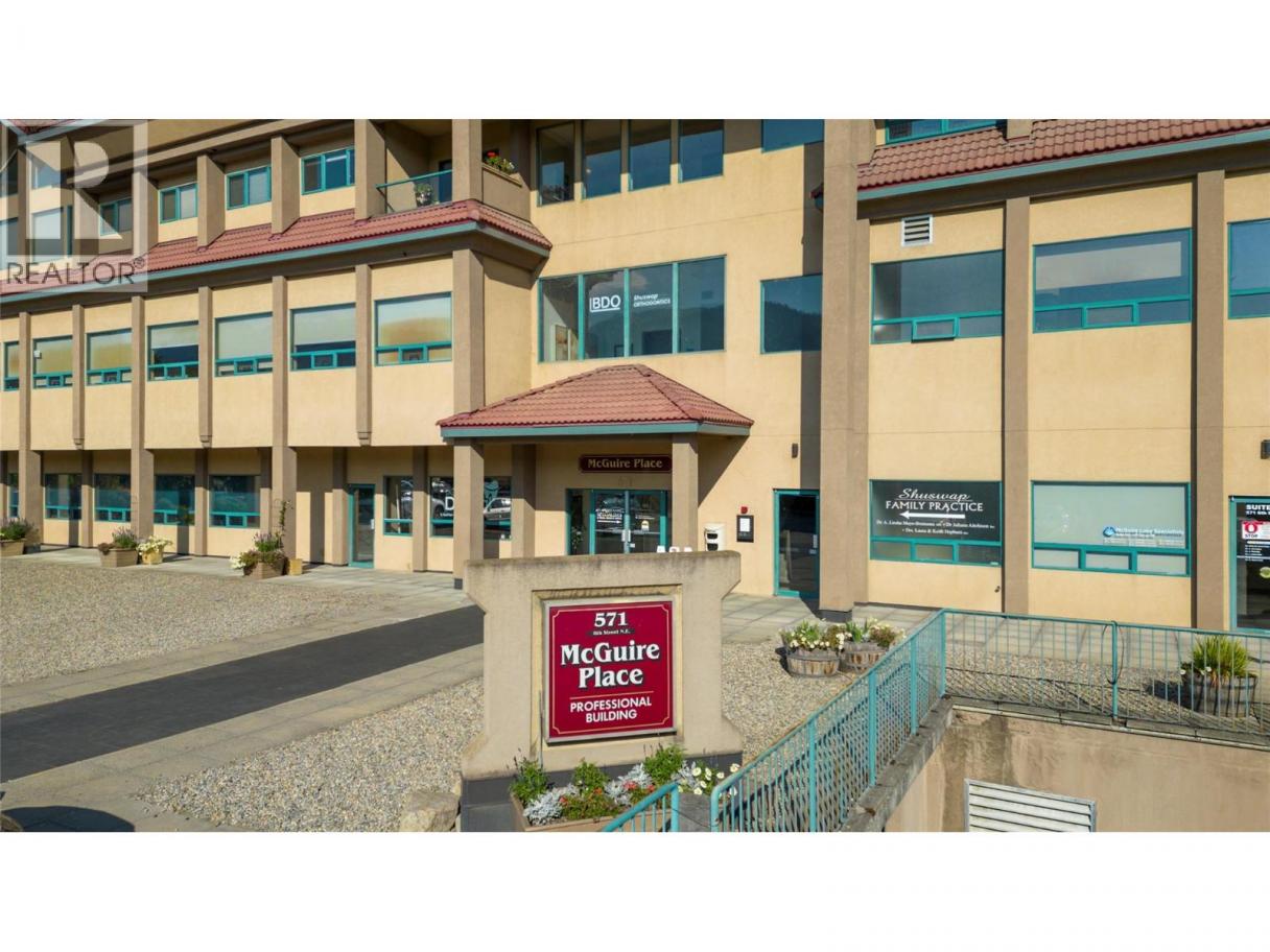 Located in the heart of downtown Salmon Arm, McGuire Place offers a rare opportunity to own a high-end commercial office with views of McGuire Lake. Perfectly designed for professionals, this corner unit is the epitome of elegance and functionality, featuring a welcoming reception area, office spaces, and a newly renovated kitchen. A gas fireplace adds warmth and charm, while the unit includes two heated underground parking stalls for year-round convenience. The building is well-maintained, equipped with a full elevator, visitor parking, shared washrooms, & a newly updated roof & boiler system. McGuire Place is ideally situated just steps away from the serene walking paths around McGuire Lake Park, plus the nearby Salmon Arm Wharf on Shuswap Lake. Whether you're taking a break during the workday or meeting clients, the view and peaceful surroundings are sure to inspire. Can be sold furnished, with immediate possession available. Don’t miss out on this opportunity to elevate your business in one of Salmon Arm’s most prestigious professional locations! (id:6769)