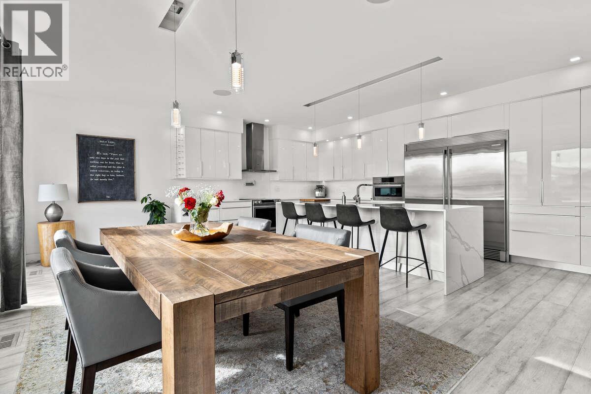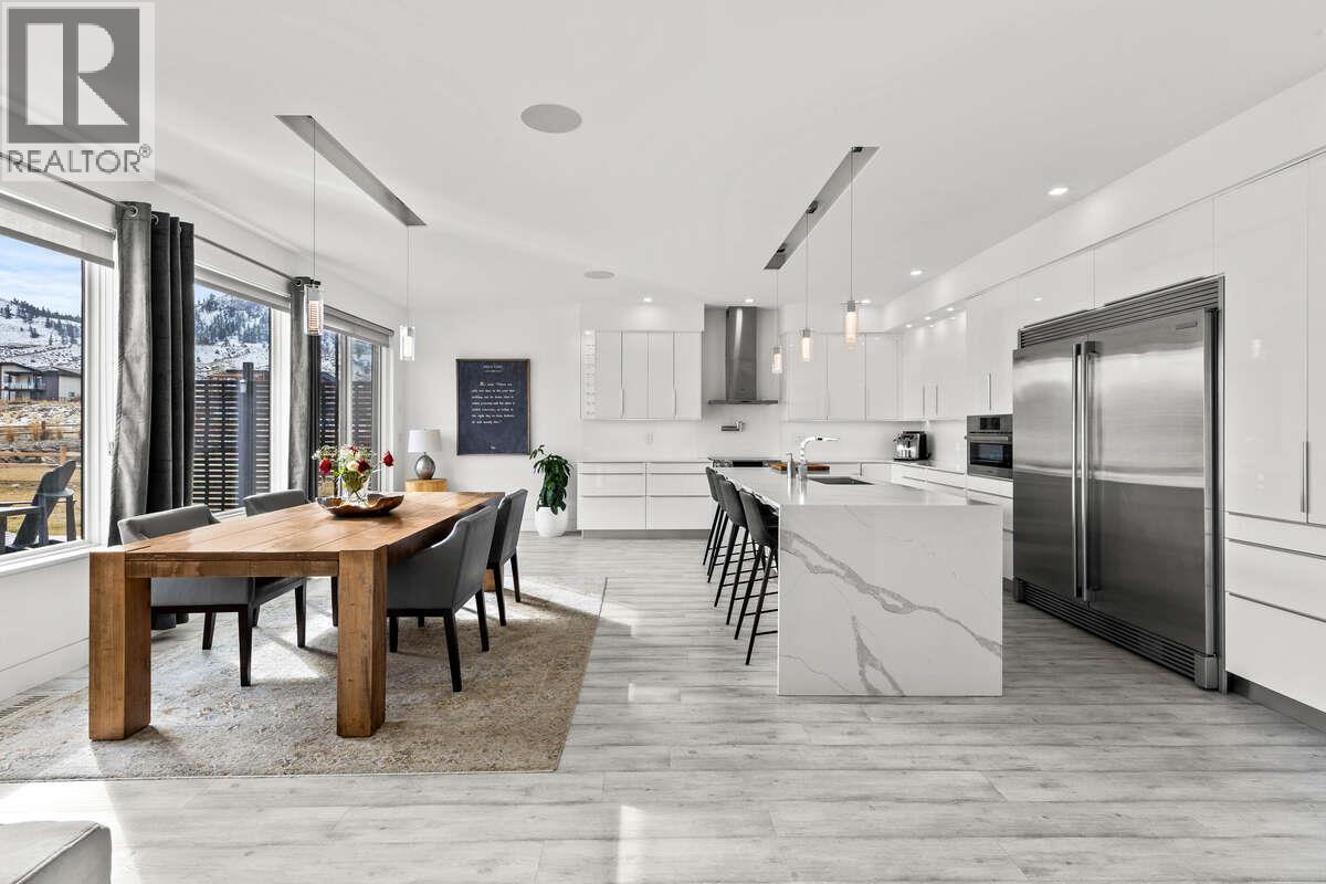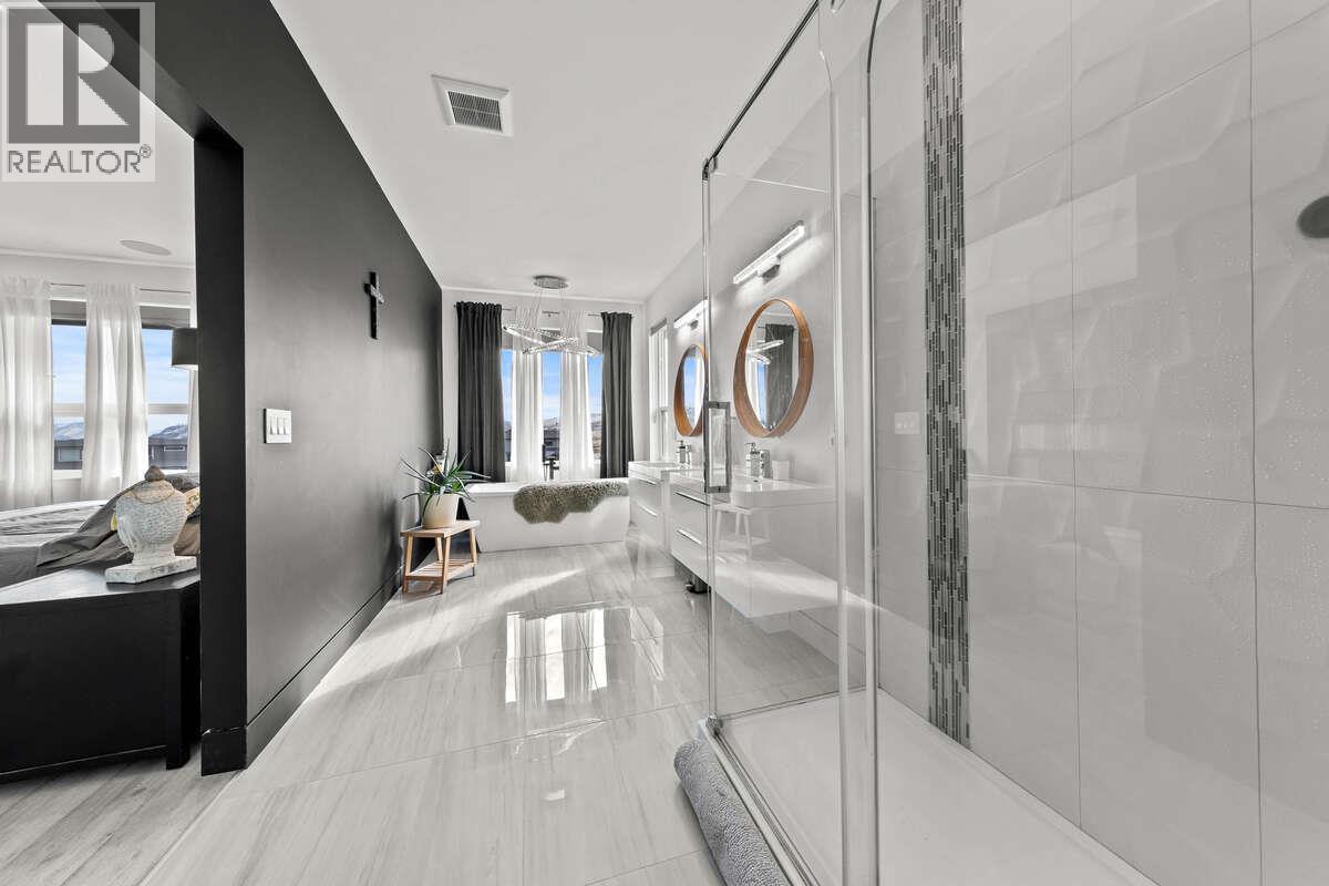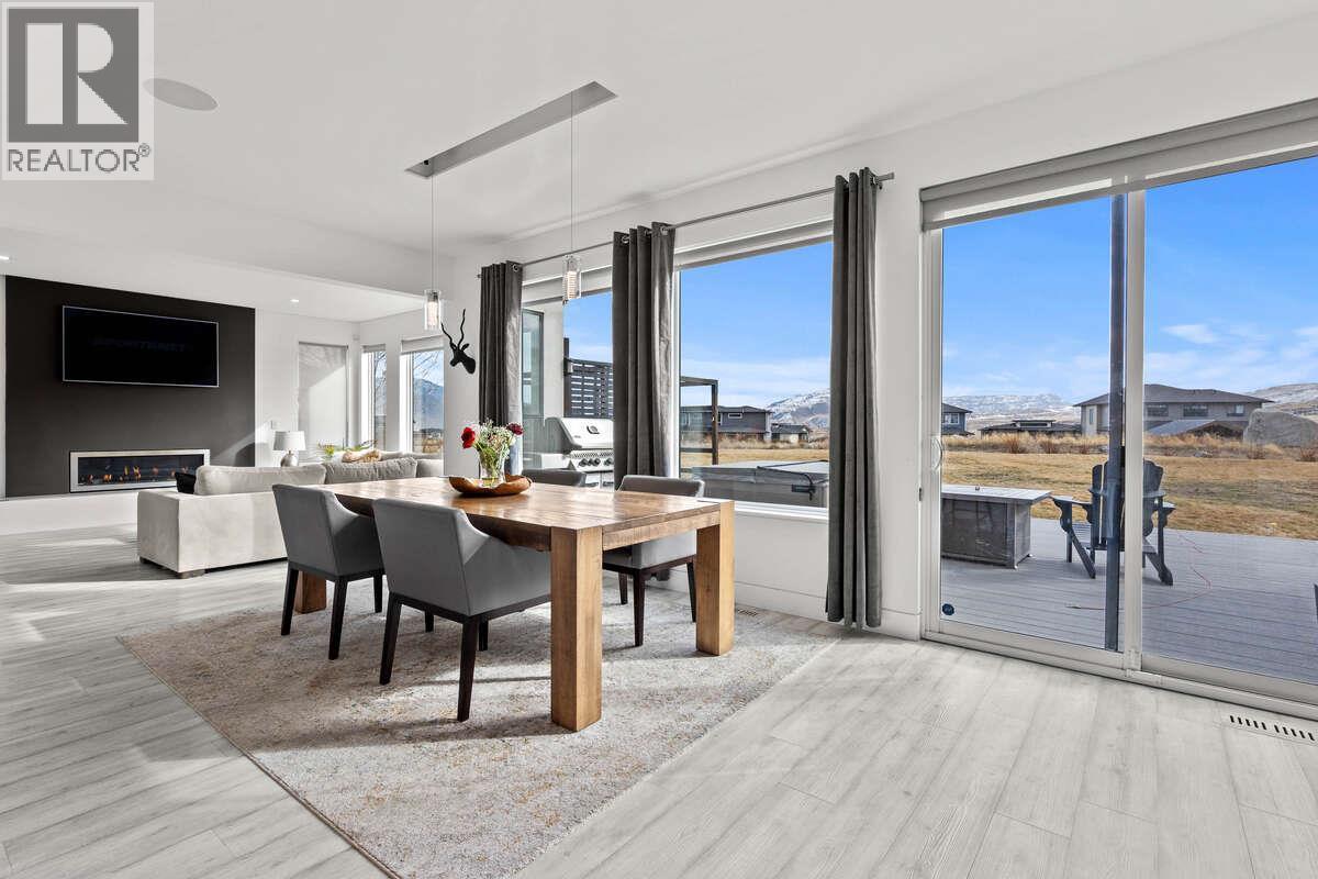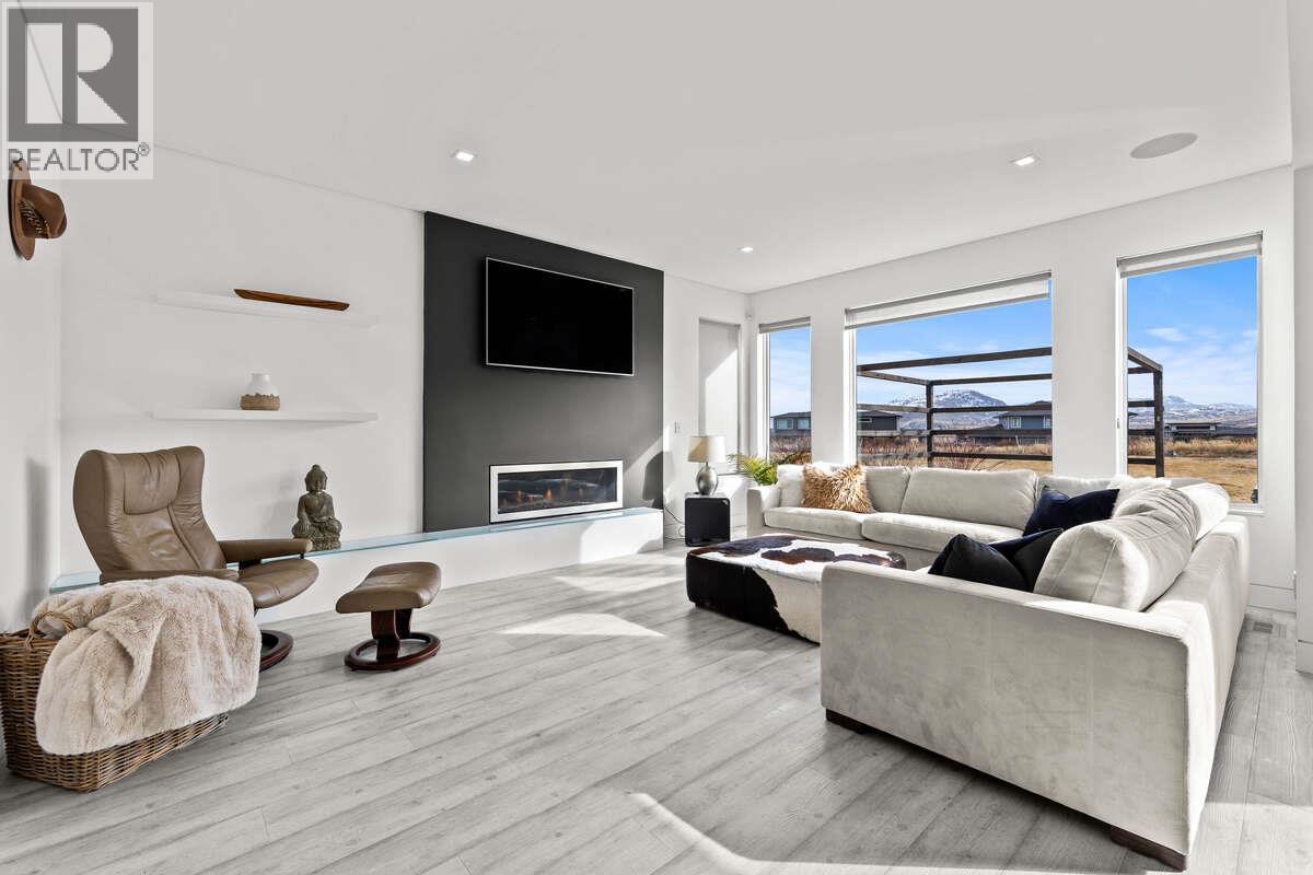 For more information, please click Brochure button. Experience modern elegance in this custom-built home by Absolute Home Builders, located in the prestigious Tobiano community. Spanning over 3,900 sq ft, this home offers premium upgrades, breathtaking views, & seamless indoor-outdoor living. The open-concept main floor is filled with natural light, featuring an expansive great room with a gas fireplace & floor-to-ceiling windows. The gourmet kitchen boasts waterfall countertops, a Bosch dishwasher, a double Electrolux fridge/freezer, a built-in convection oven, a pot filler, and under-counter lighting. Sliding doors lead to a spacious deck, a covered gazebo, a seven-person hot tub, & a private backyard oasis. Upstairs, the primary suite offers a cozy fireplace, walk-in closet, and spa-like ensuite with floating vanities, a soaker tub, and a walk-in shower. Two additional bedrooms, a full bathroom, and a convenient upstairs laundry room complete the floor. The lower level is designed for entertainment, featuring a temperature-controlled wine cooler, built-in bar, theatre room with surround sound, & a home gym with outdoor access. A bonus flex space, plus two bedrooms and a four-piece bathroom. Smart home features include built-in iPads, a six-zone speaker system, Hunter Douglas blinds, Lutron lighting, a security system, & central vacuum. 9/23/25 Recent Interior Update. Come have a look! (id:6769)