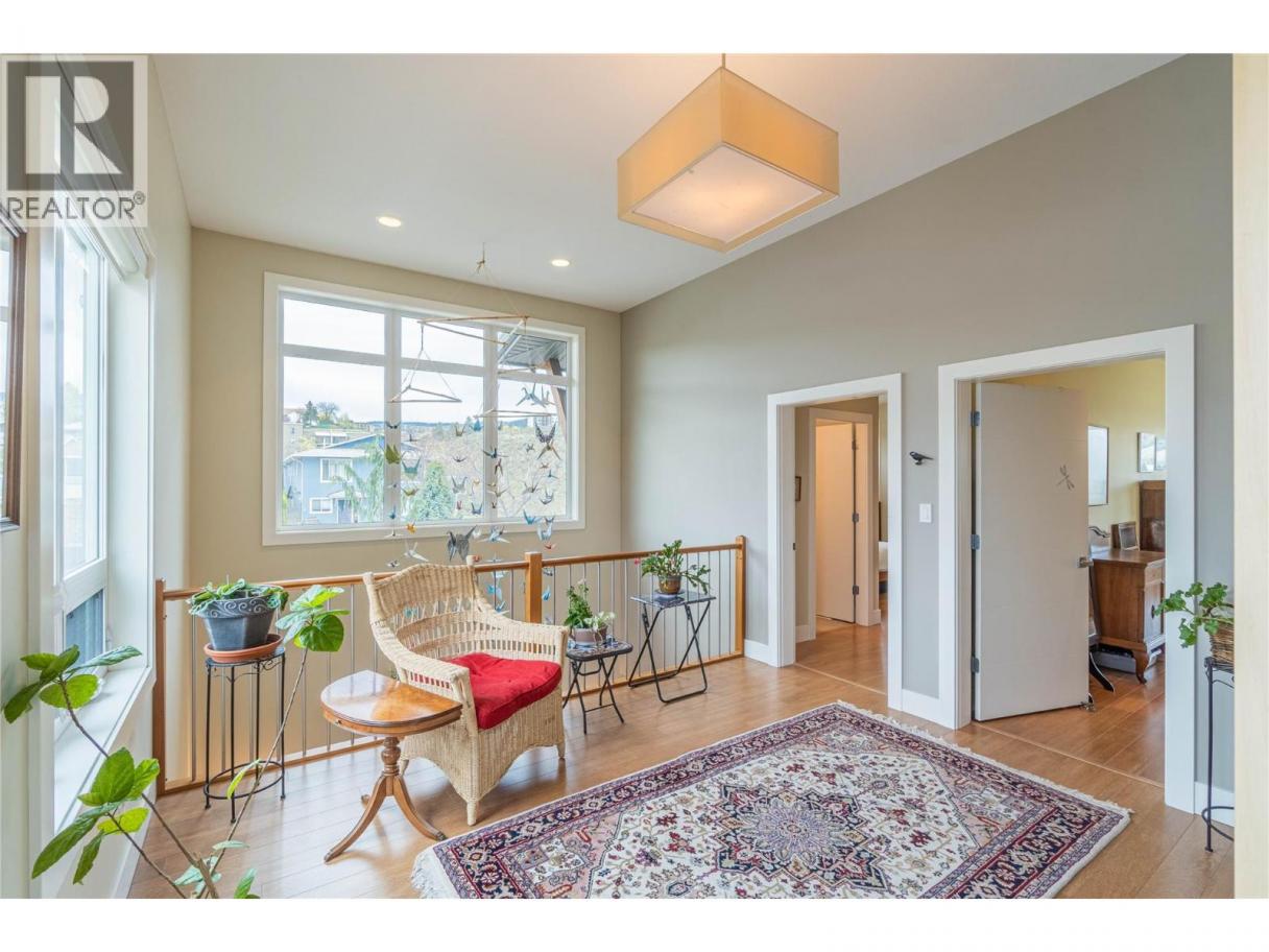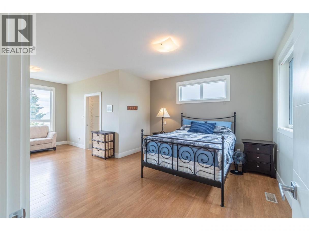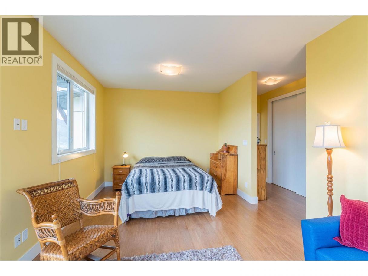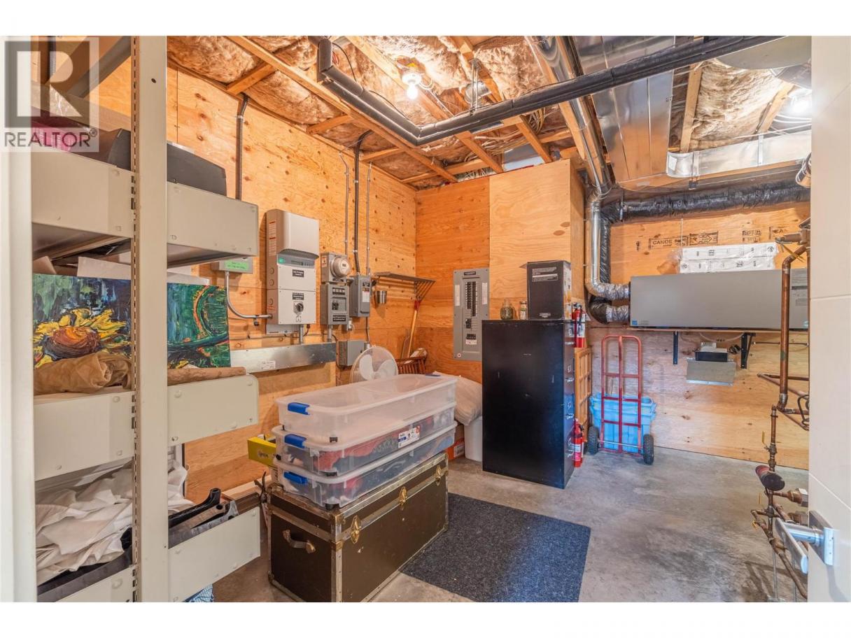 ONE OF A KIND! This is the perfect home for the large family or group living Main floor boasts a breathtaking open plan with huge windows to capture the stunning views. The large island kitchen boasts 2 dishwashers & stainless appliances plus a large walk in pantry for great storage. Wall of cabinets with clever microwave cabinet built in. The spacious living and dining room are great for the largest gatherings with panoramic views from every window. 2 large bedrooms with 4pc ensuites on the main plus 2pc guest bath and office area with outer door. Central shaft for future elevator provides great storage on each level till elevator is desired. Upper floor features 4 more deluxe bedrooms each with a 4pc ensuite and large closet. Upper laundry room, plus a dramatic library that overlooks the vaulted ceiling with feature origami crane mobile. Outer door to relaxation deck and external staircase. Basement level enjoys access to the fenced yard & gardens with UG sprinklers for easy care. 2 more bedrooms down with shared 4pc bath, large rec room and laundry room. This area designed for future suite if desired. Utility room has components for the solar heat recovery system, Central Air, HRV system and extra storage plus featured climate controlled cold room pantry. Property comes with 9 open parking spaces plus double garage. (id:6769)
