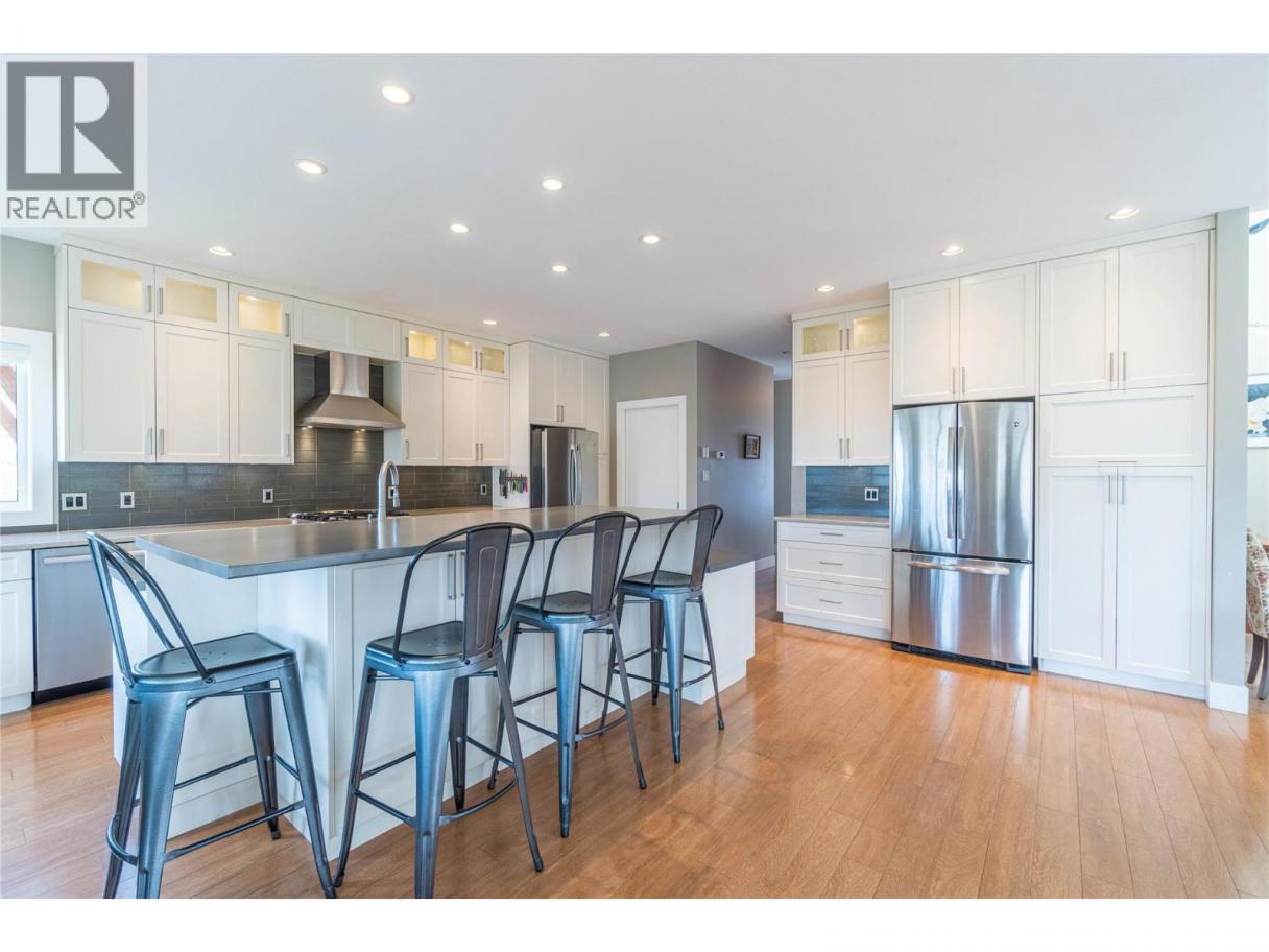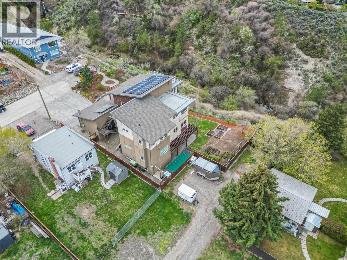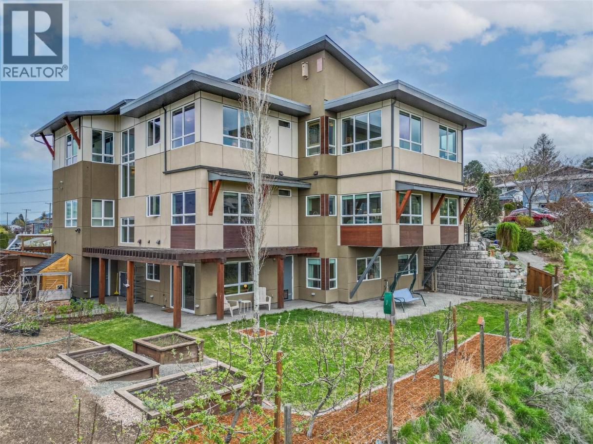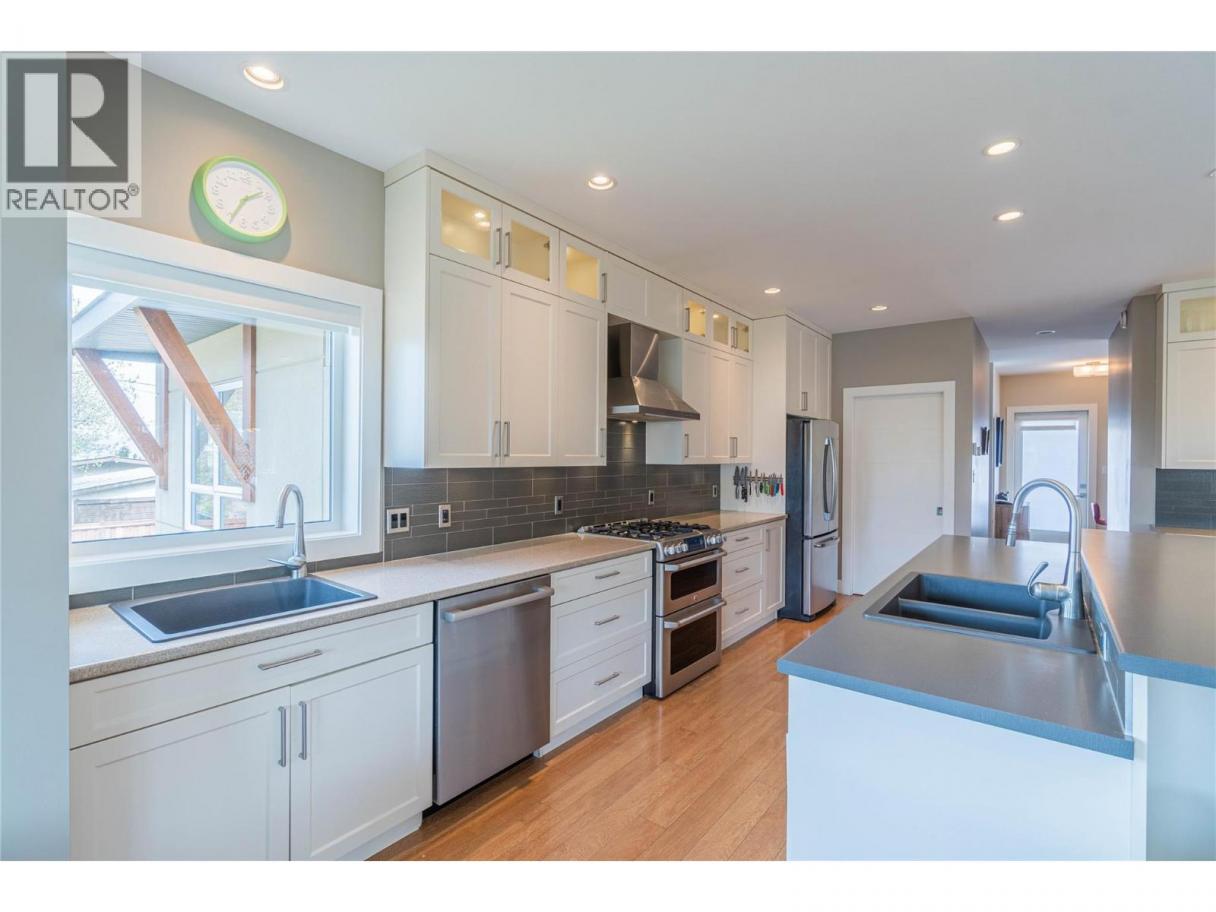 ONE OF A KIND! This is the perfect home for the large family or group living Main floor boasts a breathtaking open plan with huge windows to capture the stunning views. The large island kitchen boasts 2 dishwashers & stainless appliances plus a large walk in pantry for great storage. Wall of cabinets with clever microwave cabinet built in. The spacious living and dining room are great for the largest gatherings with panoramic views from every window. 2 large bedrooms with 4pc ensuites on the main plus 2pc guest bath and office area with outer door. Central shaft for future elevator provides great storage on each level till elevator is desired. Upper floor features 4 more deluxe bedrooms each with a 4pc ensuite and large closet. Upper laundry room, plus a dramatic library that overlooks the vaulted ceiling with feature origami crane mobile. Outer door to relaxation deck and external staircase. Basement level enjoys access to the fenced yard & gardens with UG sprinklers for easy care. 2 more bedrooms down with shared 4pc bath, large rec room and laundry room. This area designed for future suite if desired. Utility room has components for the solar heat recovery system, Central Air, HRV system and extra storage plus featured climate controlled cold room pantry. Property comes with 9 open parking spaces plus double garage. (id:6769)