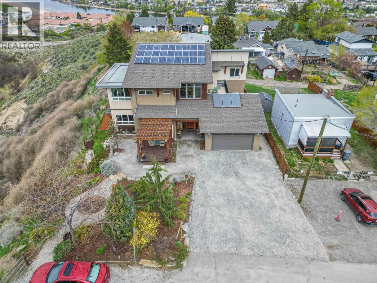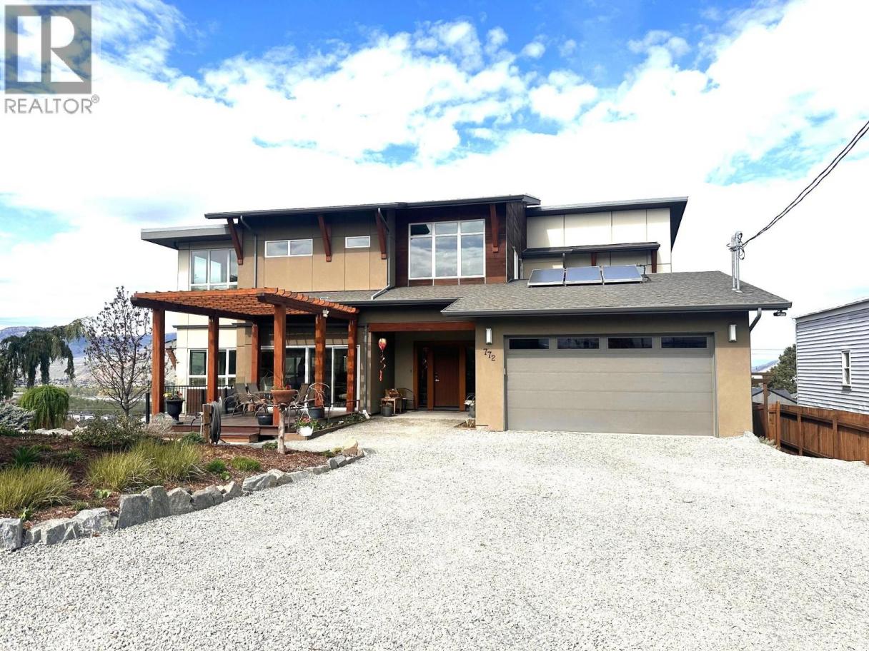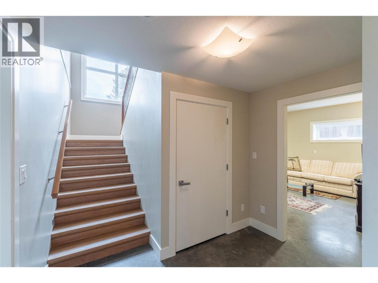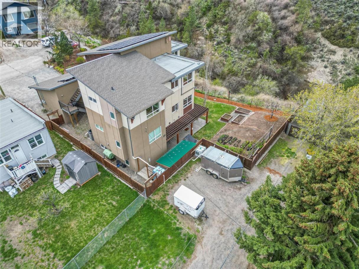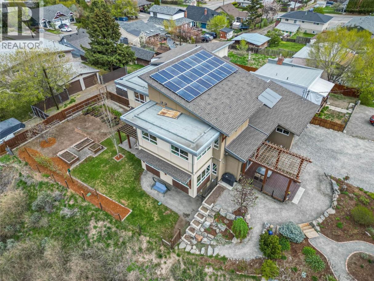 ONE OF A KIND! This is the perfect home for the large family or group living Main floor boasts a breathtaking open plan with huge windows to capture the stunning views. The large island kitchen boasts 2 dishwashers & stainless appliances plus a large walk in pantry for great storage. Wall of cabinets with clever microwave cabinet built in. The spacious living and dining room are great for the largest gatherings with panoramic views from every window. 2 large bedrooms with 4pc ensuites on the main plus 2pc guest bath and office area with outer door. Central shaft for future elevator provides great storage on each level till elevator is desired. Upper floor features 4 more deluxe bedrooms each with a 4pc ensuite and large closet. Upper laundry room, plus a dramatic library that overlooks the vaulted ceiling with feature origami crane mobile. Outer door to relaxation deck and external staircase. Basement level enjoys access to the fenced yard & gardens with UG sprinklers for easy care. 2 more bedrooms down with shared 4pc bath, large rec room and laundry room. This area designed for future suite if desired. Utility room has components for the solar heat recovery system, Central Air, HRV system and extra storage plus featured climate controlled cold room pantry. Property comes with 9 open parking spaces plus double garage. (id:6769)