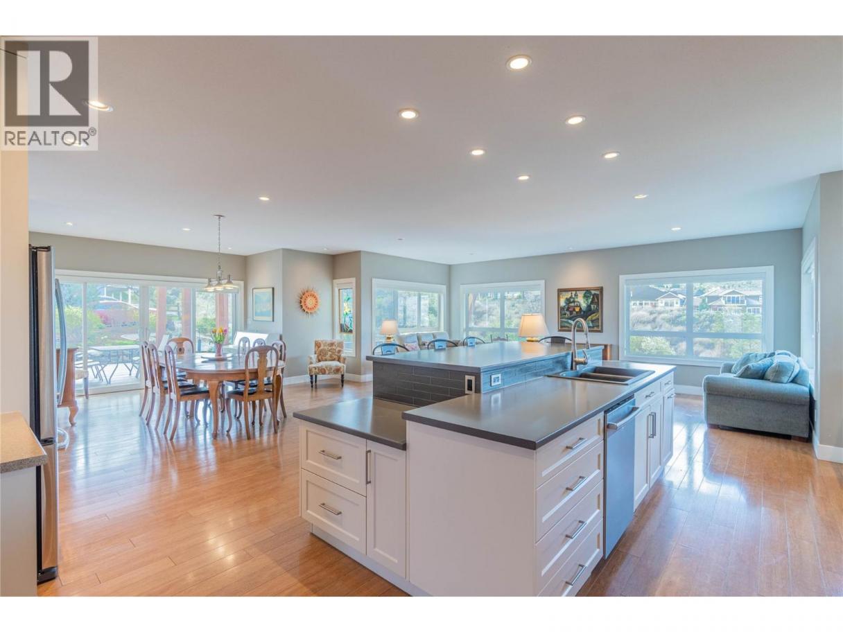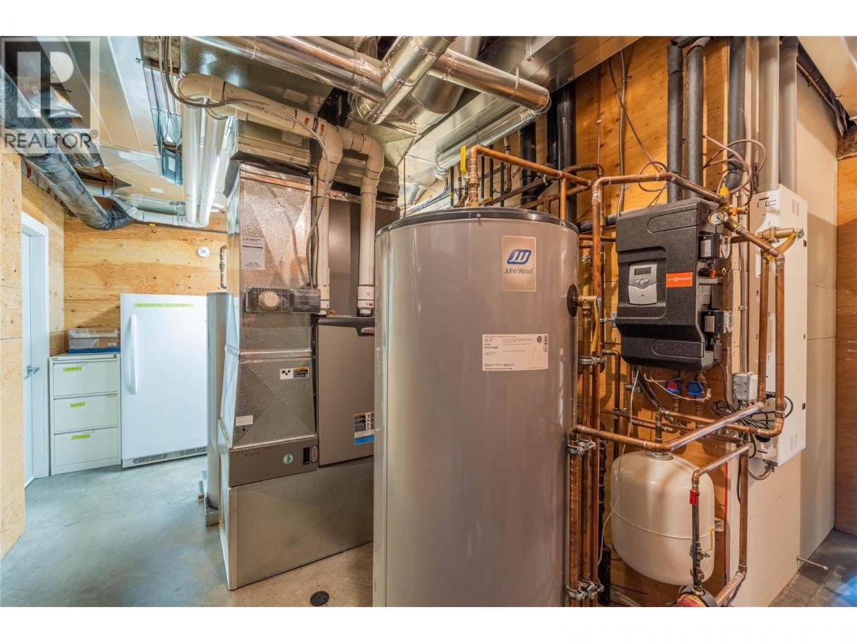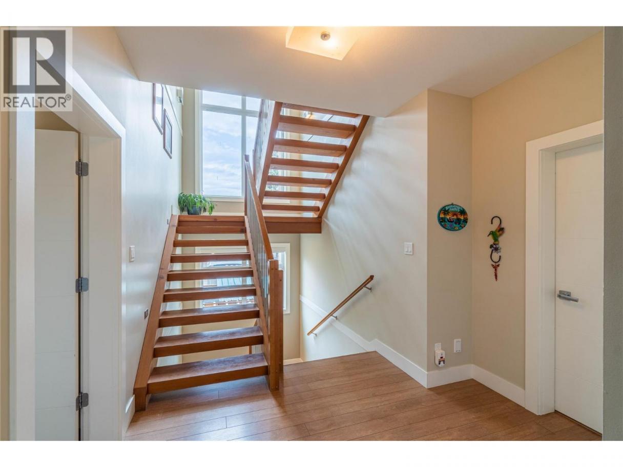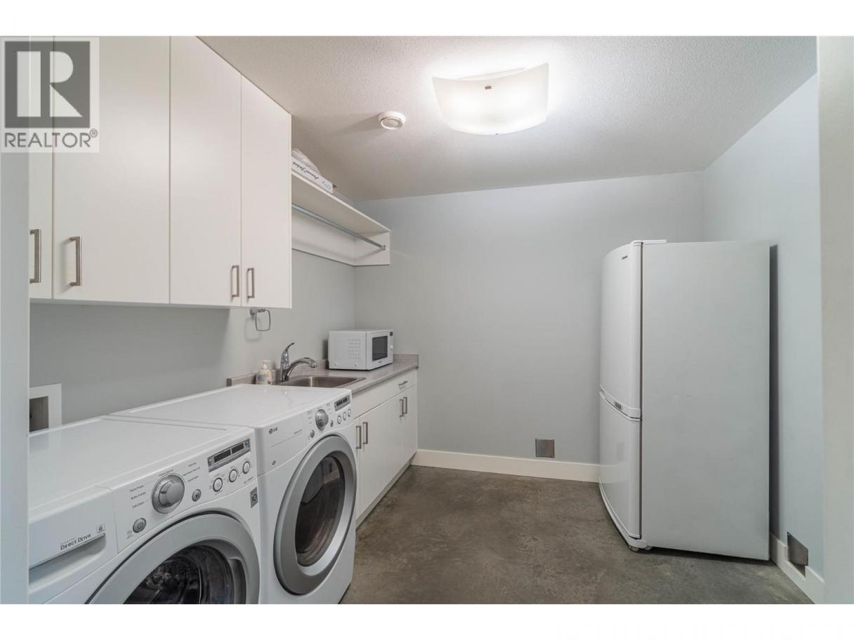 ONE OF A KIND! This is the perfect home for the large family or group living Main floor boasts a breathtaking open plan with huge windows to capture the stunning views. The large island kitchen boasts 2 dishwashers & stainless appliances plus a large walk in pantry for great storage. Wall of cabinets with clever microwave cabinet built in. The spacious living and dining room are great for the largest gatherings with panoramic views from every window. 2 large bedrooms with 4pc ensuites on the main plus 2pc guest bath and office area with outer door. Central shaft for future elevator provides great storage on each level till elevator is desired. Upper floor features 4 more deluxe bedrooms each with a 4pc ensuite and large closet. Upper laundry room, plus a dramatic library that overlooks the vaulted ceiling with feature origami crane mobile. Outer door to relaxation deck and external staircase. Basement level enjoys access to the fenced yard & gardens with UG sprinklers for easy care. 2 more bedrooms down with shared 4pc bath, large rec room and laundry room. This area designed for future suite if desired. Utility room has components for the solar heat recovery system, Central Air, HRV system and extra storage plus featured climate controlled cold room pantry. Property comes with 9 open parking spaces plus double garage. (id:6769)