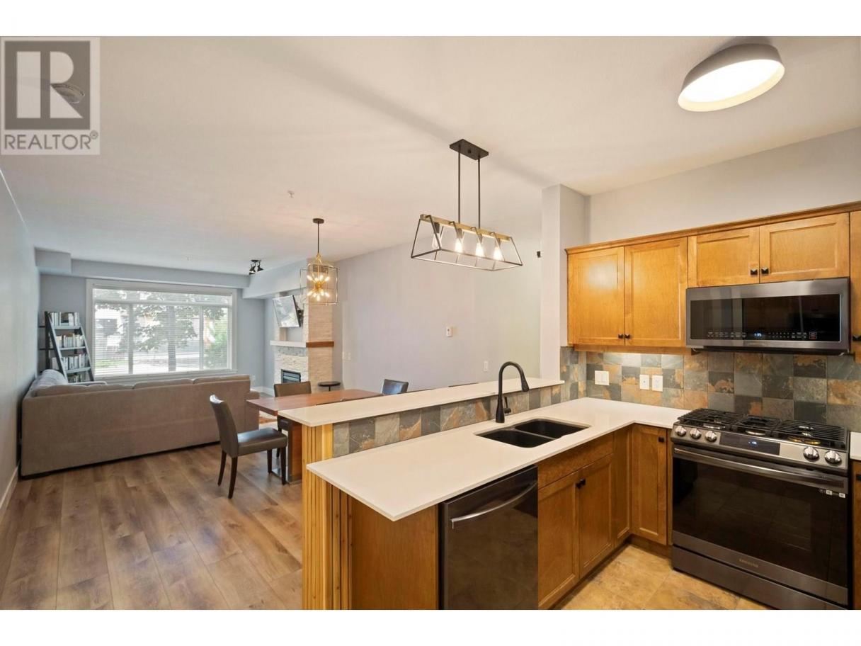Come one come all! This beautifully updated pet friendly ground floor condo offers over 1100 sq. ft. of spacious living space, featuring 2 bedrooms and 2 bathrooms—perfect for comfortable living or a smart investment opportunity.Step inside to an open-concept layout that seamlessly connects the living, dining, and kitchen areas. Enjoy peaceful evenings by the gas fireplace, and the convenience of in-suite laundry. The kitchen is ready for you to host & cook up your amazing meals with ease, having a formal dining area, beautiful bar counter space & lots cupboard space to choose from.The covered patio welcomes you & includes a gas BBQ hookup for easy outdoor cooking or to just relax & unwind at the end or at the start of your day. Additional perks include a storage locker on the same floor, bike storage, and one secure underground parking spot.The Clubhouse features a full kitchen, fitness room, and guest suite—ideal for entertaining or hosting family or visitors. Located close to Okanagan & Kalamalka lake, multiple easy access scenic walking & hiking trails right out your front door, close to the Kelowna Airport, UBCO campus, local restaurants & amenities, boat launches & more! (id:6769)