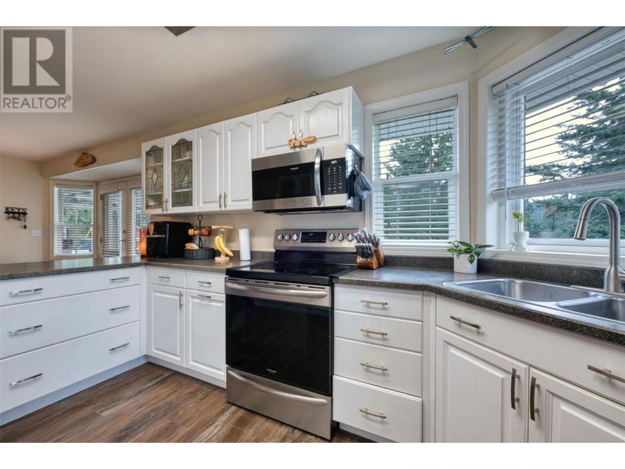 OPPORTUNITY KNOCKS! Beautiful Home and Shop. BRING THE FAMILY this 4-bedroom home with a SUITE in a desirable neighbourhood just 5 MINUTES outside Lumby on 7.6 acres. PAVED ROADS lead you into a circular paved drive which provides access to your large private acreage with gorgeous mountain views, fenced farm area, barn, shed, and 24x32 detached garage/workshop with oversize tall door. Special features of this home include the underfloor Electric heat, 4 ton Heat Pump system 2 years old (Carrier) skylight in main bath, upstairs laundry hook-ups, and double-door in-law suite access. The lower level offers level entry, large living area with wood stove, office or den area, bathroom and laundry plus a one bedroom suite. Upstairs has 3 bedrooms including a master with walk-in closet, ensuite with soaker tub and treed views. The living room and kitchen both feature mountain views through the bay windows. Large dining room opens onto a large enclosed screened and glass sunroom. Some upgrades are newer light fixtures and fans, new paint for all the interior walls, newer Fridge, Stove , Dishwasher, Microwave, Water Softener system, new flooring throughout the house. The kitchen has been remodelled with updated cabinets. The covered carport has new concrete pad which gives easy access to this upper level. New outside steps and landing. Loads of parking available for guests and toys. Don't miss out. Call the REALTOR® for more information or your private showing. (id:6769)