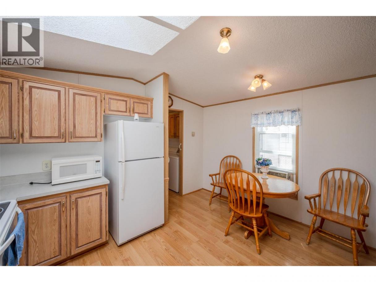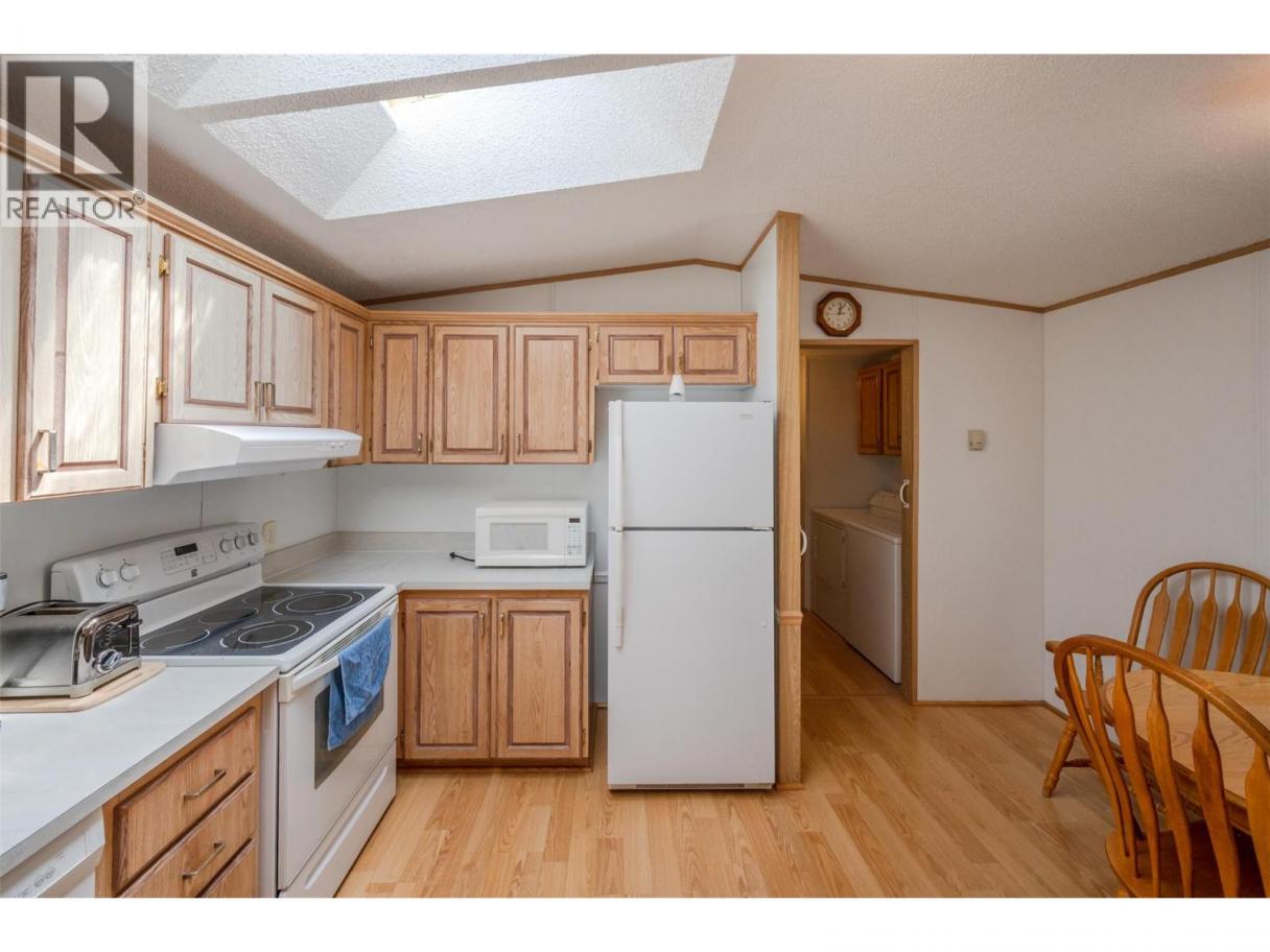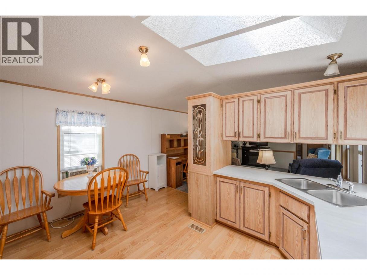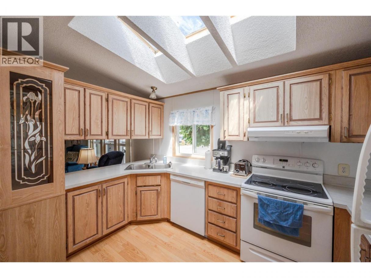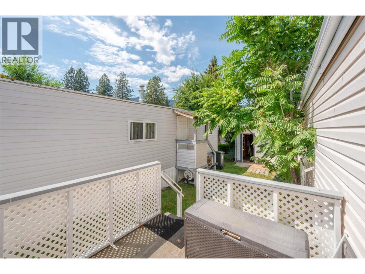This home well-appointed 2 bedroom, 2 bathroom home offers a great view on a corner lot and is priced to sell. Features of this home include a bright kitchen with skylights, vaulted ceilings, a bedroom at each end of the home with a private ensuite attached to the primary bedroom, and an attached storage area. Outside you can enjoy the large covered deck with views of Peach Cliff or putter in the 8x8 shed, perfect for your projects. You even have your own peach tree! This unit is located in Peach Cliff MHP, which is a 55+ park that does allow pets upon approval. Book your viewing today. (id:6769)