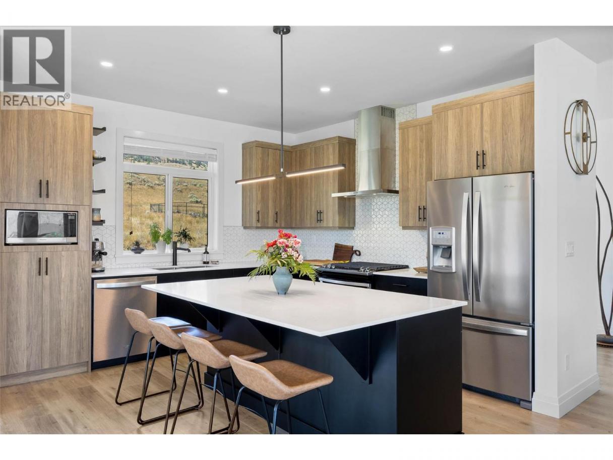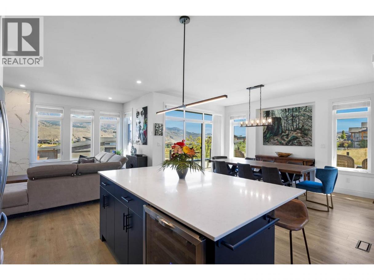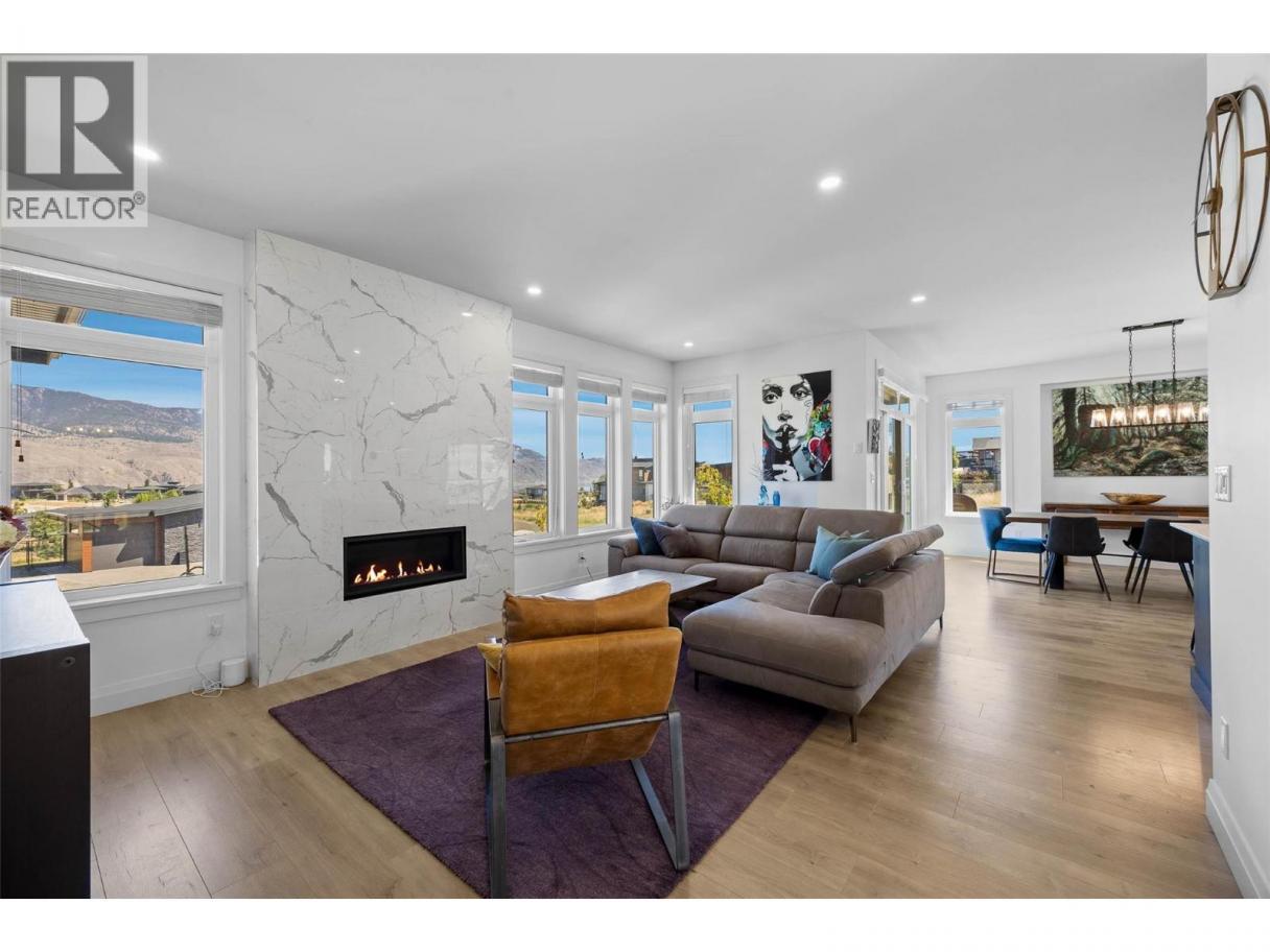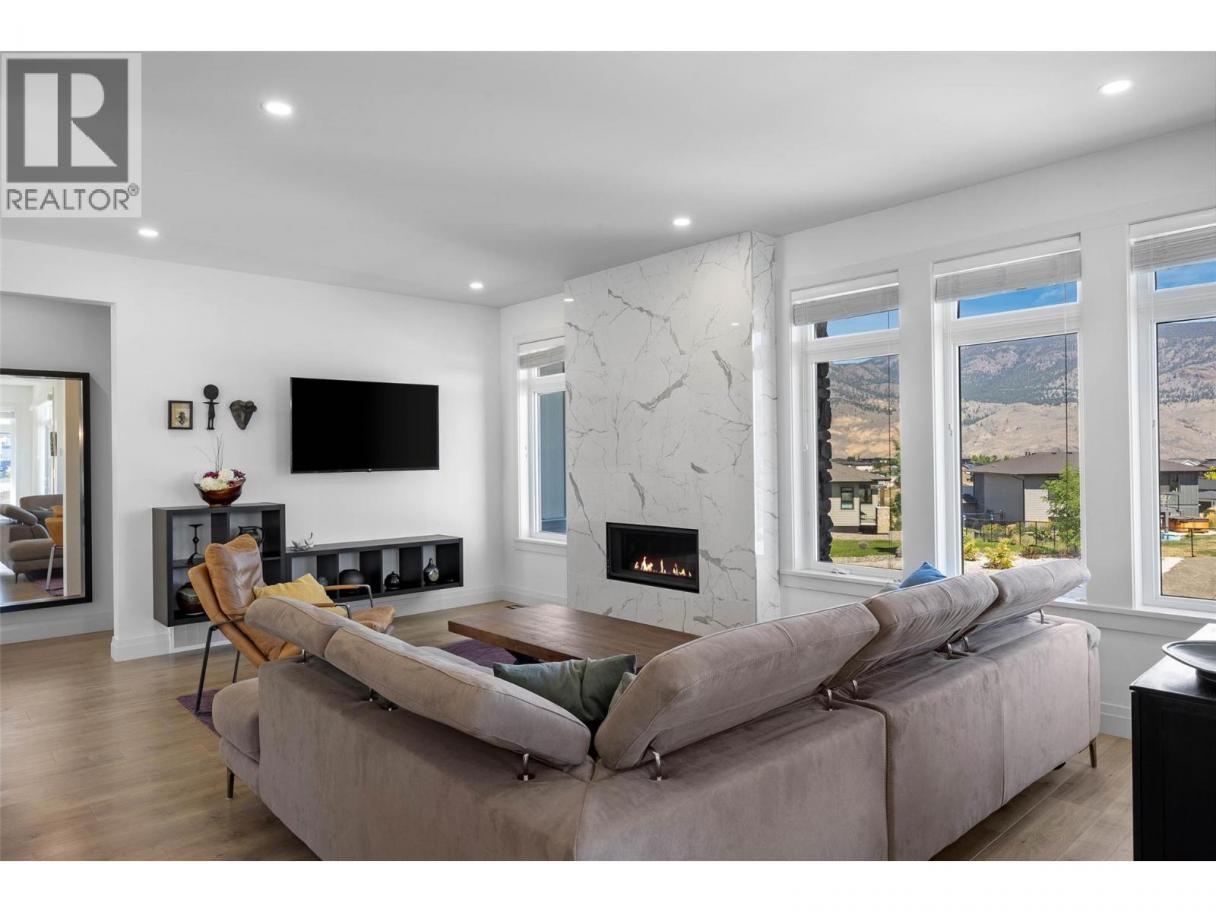 Stunning Luxury Home in Tobiano Resort Community!! Built in 2020, this beautiful basement-entry home offers an exceptional floor plan with 3+2 bedrooms plus a den and 3 bathrooms. Enjoy spacious, light-filled living areas with modern design elements and exceptional craftsmanship throughout. The open-concept gourmet kitchen features high-end appliances, sleek quartz countertops, and stylish finishes, flowing seamlessly into the dining area and great room. A contemporary linear gas fireplace and expansive windows frame breathtaking views, while the covered wrap-around patio extends your living space outdoors. The finished basement includes a large family room, two additional bedrooms, and a versatile artist’s den or home office - perfect for guests or creative pursuits. Situated on a 0.37-acre lot with beautiful landscaping with irrigation and drip lines for hanging baskets. This home showcases beautiful Hardie board siding with cultured stone accents, a spacious double garage, and a long, flat driveway. The private, level backyard is ready for your grand ideas! Located just 5 minutes to Tobiano Golf and Bruker Marina and only 20 minutes to Kamloops. This home is surrounded by nature and world-class recreation, offering an unmatched lifestyle. Experience refined resort living with unparalleled views in every direction - a must-see home! (id:6769)
