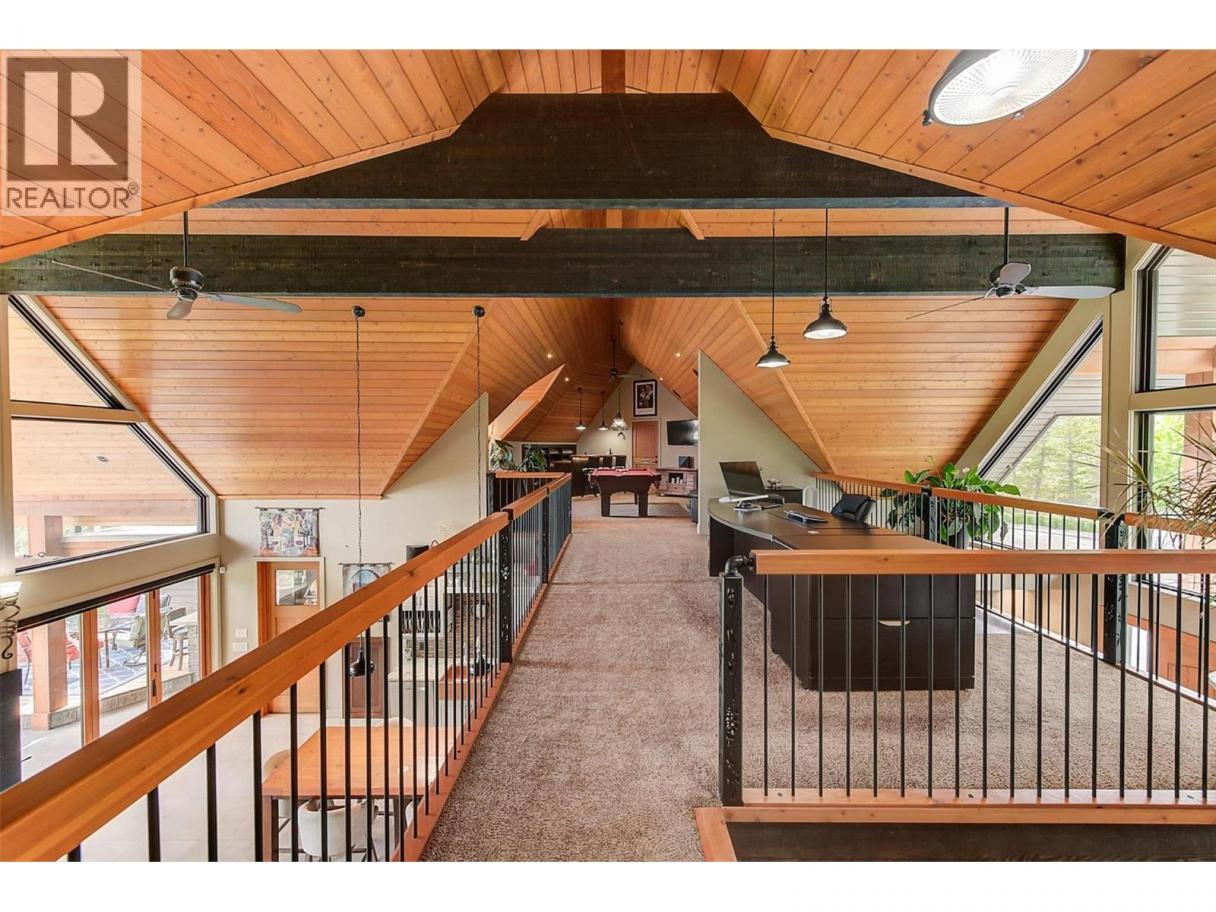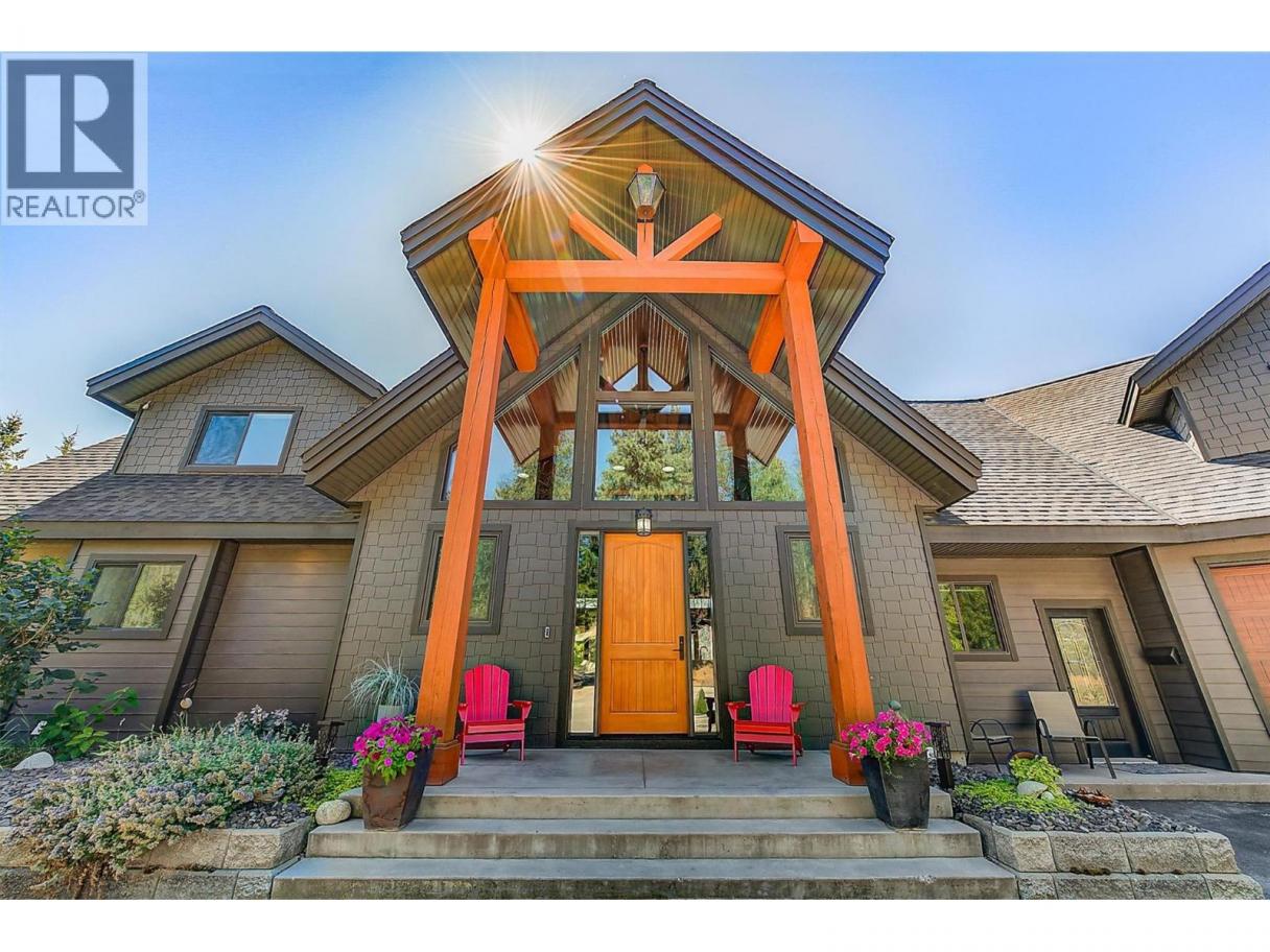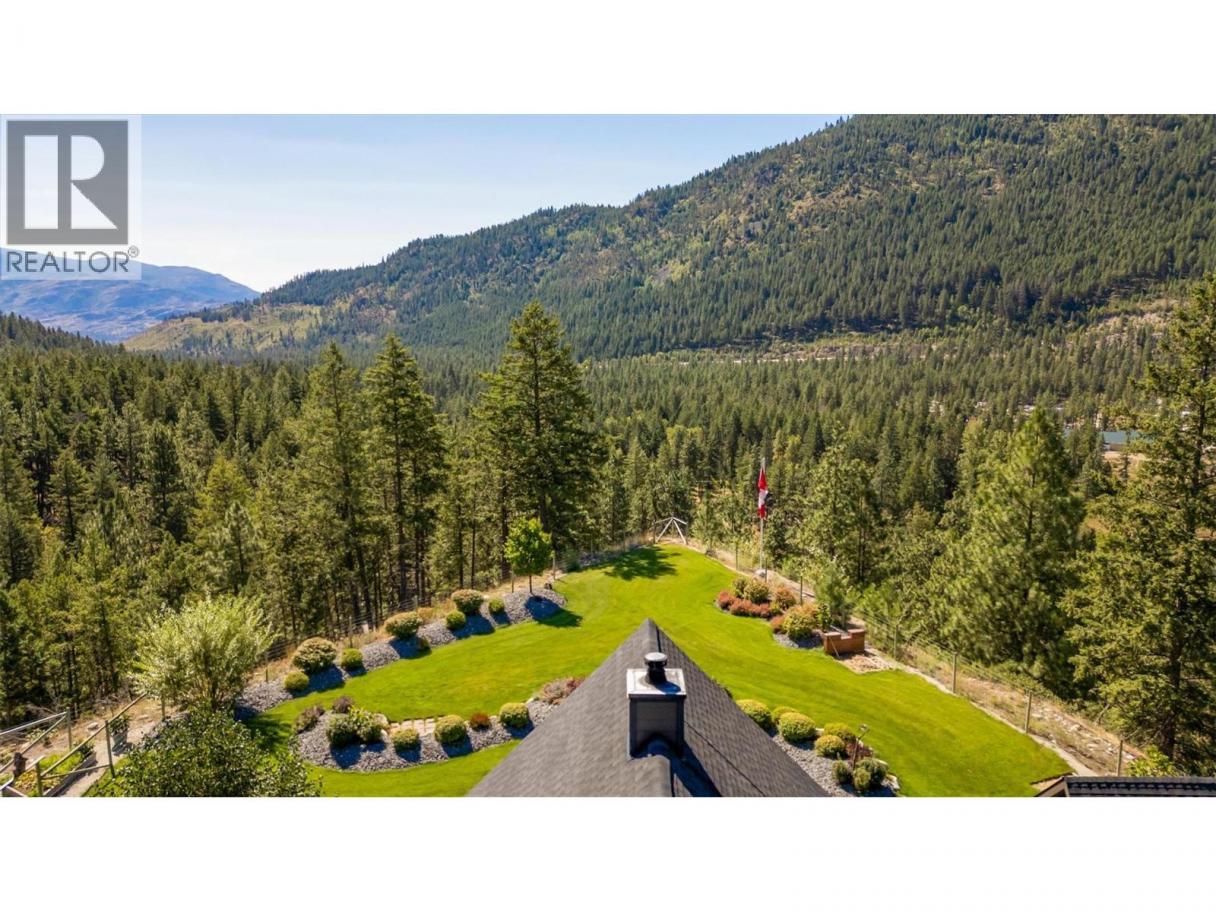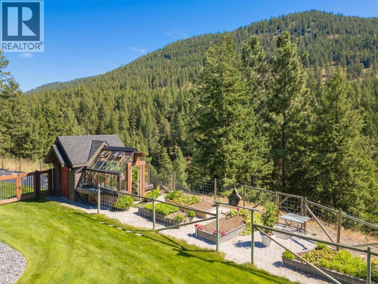 Presenting this exquisite estate property in Peachland. Offering a 6.22 gated acreage, this property is majestic, manicured and has been exceptionally designed to create a park like setting, and offer the ultimate in privacy. This chalet style build has been designed with exceptional craftsmanship and custom finishing's throughout to include wood lined ceilings, a brand new chef-life kitchen with butler’s pantry, timber beams, wood burning fireplace and summer kitchen. Upon entering the main house, the 25ft cathedral ceilings with bifold doors integrates the indoor/outdoor ultimate living. Open concept main living area with the Primary Suite on the main floor with a luxurious ensuite facing the mountains and glass garden green house. On the upper level you’ll find 2 generous sized bedrooms and lofted area that overlooks the great room below. The bar/games room includes a private deck for entertaining at sunset. This 2nd level also connects the most charming 2 bed legal suite situated over the 4 car garage, complete with separate entrance, and private yard with gazebo. Or integrate to a 5 bed home. This estate presents an incredible opportunity with the upper property hosting a solar paneled commercial space, featuring a board room/office and 3 bay workshop with an abundance of space for all equipment, including a new RV parking pad with service, water and sani-dump. Minutes to downtown Peachland and West Kelowna. Virtual Tour, Drone and Video provided to capture it all. (id:6769)