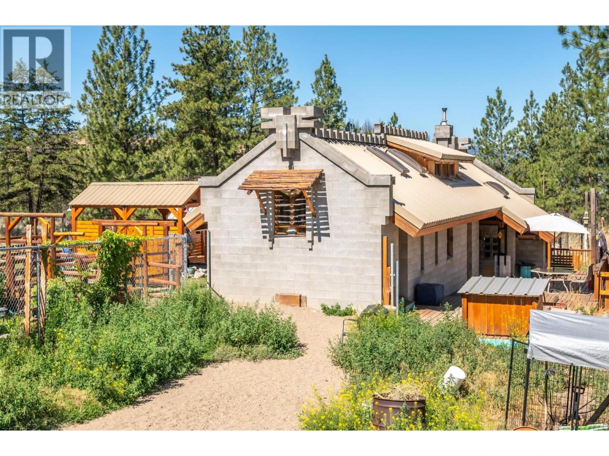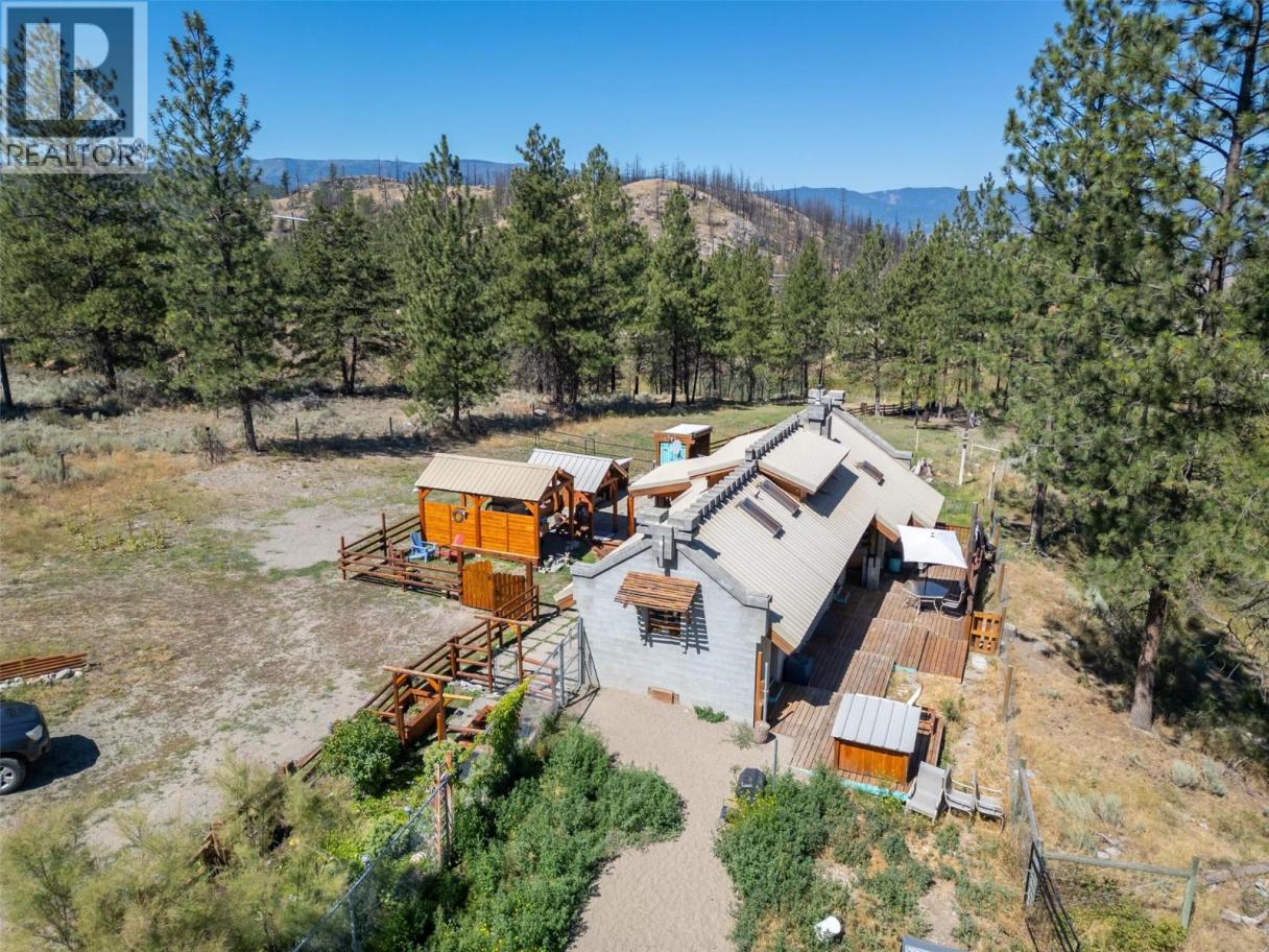Welcome to Night Owl! This bespoke residence designed by renowned architect Henry Yorke Mann is nestled amidst 10+ acres of pristine, rolling ranchland, 15 minutes from Oliver. An architectural marvel, this home embodies HYM's ethos, maximizing the use of natural materials, while creating buildings respectful of, and in harmony with their environment. Designed specifically for it's site, and fashioned from insulated concrete block, with a metal-clad roof, this home is heating and cooling efficient by-design, and offers heightened peace of mind regarding fire safety. Unassuming from a distance, but awe-inspiring up close, visitors will marvel at the interplay of materials, custom windows and doorways, intricacy of the wood joinery, and the masterfully artistic approach to the concrete block detailing evident throughout. Features include soaring, vaulted wood-clad ceilings, HYM's signature fireplace focal point, thoughtful separation of public and private spaces, abundant storage, and access from 5 doorways to various outdoor decks and patios providing 270 degree views of rolling hills and meadows, and the beautiful mountain vistas beyond. Numerous thoughtful improvements by the current owner include 3 barns, a large fully-serviced kennel with adjacent holding pen, tractor shelter, hay storage, and gated entry to the primary entrance, with an adjacent log gazebo and expansive patio. The property has also been fully fenced. Dimensions approximate. Buyer to verify if important. (id:6769)
