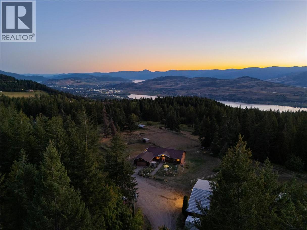 A once-in-a-lifetime estate with sweeping lake and mountain views, this 62-acre property captures the very best of Okanagan living. Perfectly suited for horses or ranching, it features a 96’ x 63’ barn with 10 stalls, tack room, office area, fully wired workshop, abundant storage, and a brand-new roof. The acreage has been thoughtfully cleared with wide trails weaving to the edge of the property, offering endless opportunities for horseback riding, off-roading, or peaceful walks through nature. Out of the ALR and with subdivision potential, the land itself is as versatile as it is beautiful. The custom-built home provides room for the entire family with 4 bedrooms and Office (or 5th Bedroom), 3 bathrooms, a double garage, and a host of upgrades including a new kitchen with appliances, new flooring, remodelled bathrooms, updated internal doors, trim, gutters (2025), hot tub pump, and well pump (2022). Additional comforts include built-in vacuum, heat pump with air, fireplace, and a top-floor remodel completed in 2021. Outdoors, the front English Garden creates a stunning welcome while the new deck pergola is perfect for soaking in the serene surroundings. Offering the ultimate balance of privacy, recreation, and potential, this remarkable estate is more than a home—it’s a lifestyle. (id:6769)