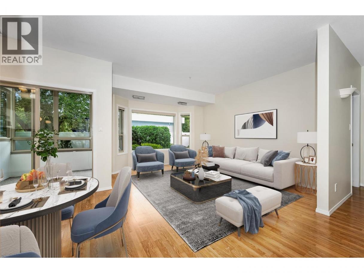 Great Downtown Location! Popular Adult Community Complex This lovely 2-bedroom, 2-bathroom corner unit is located on the main floor, just steps from underground parking access and a beautiful private courtyard featuring a BBQ area and gazebo. The unit is move-in ready! Recent updates include fresh paint and new carpet in the bedrooms. Additional features: Convenient in-suite laundry. Kitchen and laundry appliances included, private furnace with air-conditioning for individual comfort, mainly laminate flooring, enclosed patio. Sorry, no pets allowed. Don't miss this opportunity to live in a quiet, well-maintained adult community in the heart of downtown! (id:6769)