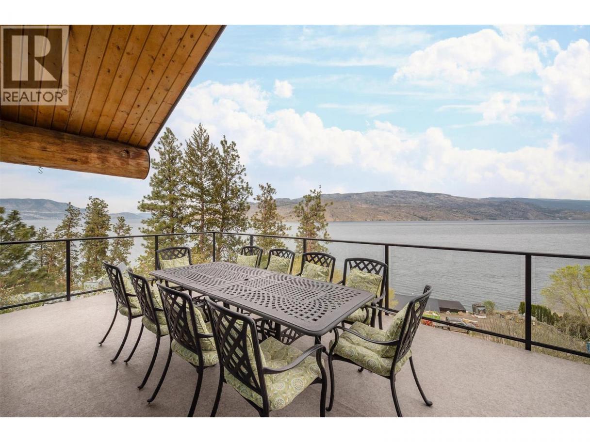 This Peachland waterfront retreat is perfectly perched along the sun-kissed west shores of Okanagan Lake and is located outside the speculation tax zone! Enjoy 80ft of private shoreline featuring a massive dock w/3-ton boat lift, dual Sea-Doo lift, beachside storage hut & lots of space to lounge in the sunshine. Enjoy boating to downtown Peachland (10min away) or cruising across to the Hotel Eldorado for lunch in under 30 minutes! It's truly the best of the best when it comes to Okanagan living! Designed to take in the breathtaking lake views, this walk-out rancher is crafted with natural materials blending rustic charm with effortless modern comfort. The open-concept main level opens to a wrap-around deck...perfect for dining alfresco & sunset cocktails. Inside, living & dining spaces flow into the kitchen creating the perfect setting for gathering with family & friends. Downstairs, the walk-out level is built for entertainment, the spacious family/games room opens directly to a partially covered patio and lake-view hot tub, an ideal spot for star-gazing after a day on the water. Complete with radiant in-floor heat, for year-round comfort and wall-to-wall windows this lower level hosts 2 primary suites, 2 additional guest bdrms, a den and laundry facilities...plenty of space for everyone to relax, reconnect and make lasting memories. The property also includes an oversized double garage & RV parking. A picture perfect Okanagan retreat—this is lakeside living at its finest. (id:6769)