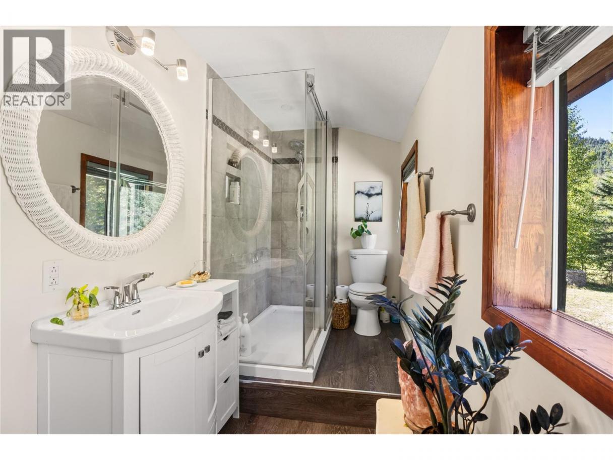 Discover affordable, sustainable living on this 4.91-acre property in the Twin Lakes area. Set up for off-grid living with solar power and propane, this home offers independence without sacrificing comfort. Inside, natural wood accents and an open floor plan create a warm and welcoming atmosphere. Large windows bring in plenty of natural light and frame views of the surrounding landscape, while a wood stove adds cozy efficiency. The kitchen is equipped with modern appliances, ample counter space, and generous storage. The home has seen numerous updates, including a new kitchen, refreshed exterior stain, updated bedrooms and bathrooms, new flooring, paint, and a carport. Upstairs, the spacious primary suite features a walk-in closet, 3-piece ensuite with walk-in shower, and access to a private covered deck — a quiet retreat overlooking the property. Outdoors, you’ll find multiple covered decks, garden areas, and peaceful relaxation spots along the creek. With plenty of room for hobby farming, gardening, or simply enjoying the outdoors, this property combines privacy, functionality, and the unique benefits of off-grid living. (id:6769)