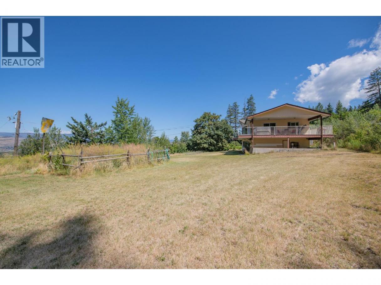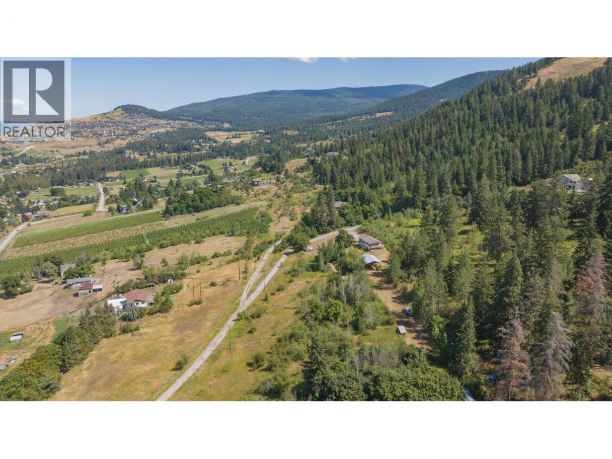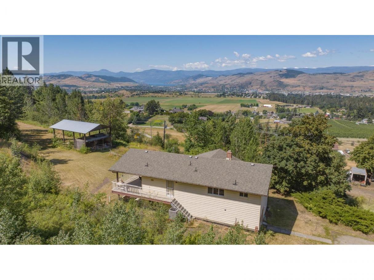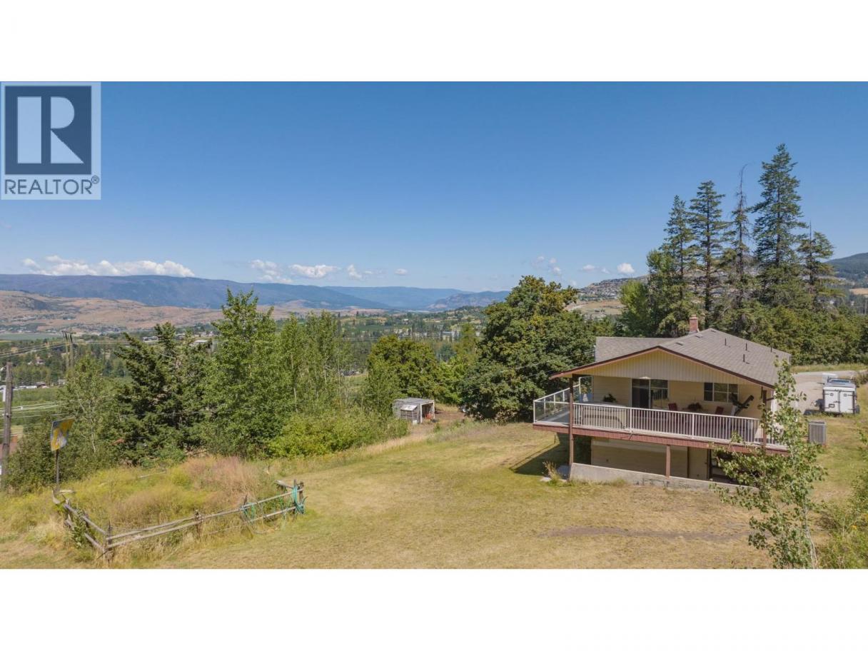 Stunning acreage with sweeping views of the Vernon Valley and Okanagan Lake, ideally perched in the sought-after North BX. Tucked away on a quiet, dead-end road, this private 8-acre property offers a mix of rolling hills, open clearings, and mature trees. The home is a daylight, grade-level entry design. Upstairs, the kitchen provides ample storage and flows seamlessly into the dining and living areas. From the dining room, step onto the covered wraparound deck and take in the gorgeous lake views. The living room features a wood ceiling with beam accents and large picture windows that perfectly frame the scenery. The primary bedroom offers direct access to the view-side patio, along with a walk-through closet and ensuite. A second bedroom and full bathroom complete the main level. Downstairs, you’ll find an expansive family room with large windows, abundant storage, and excellent suite potential—ready for your ideas. Zoned for a duplex or secondary residence, the property also includes a pole barn for storage. With plenty of space to explore, you’ll find both private treed areas and open spots ideal for building a secondary home.T his is a rare opportunity to own a peaceful acreage in a prime North BX location with endless possibilities. (id:6769)