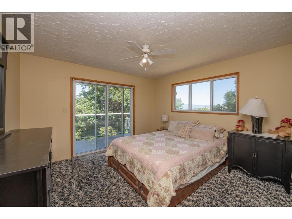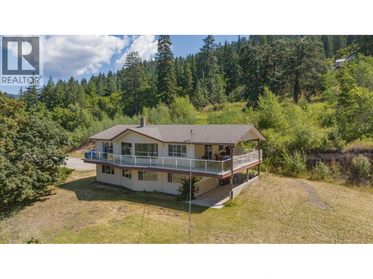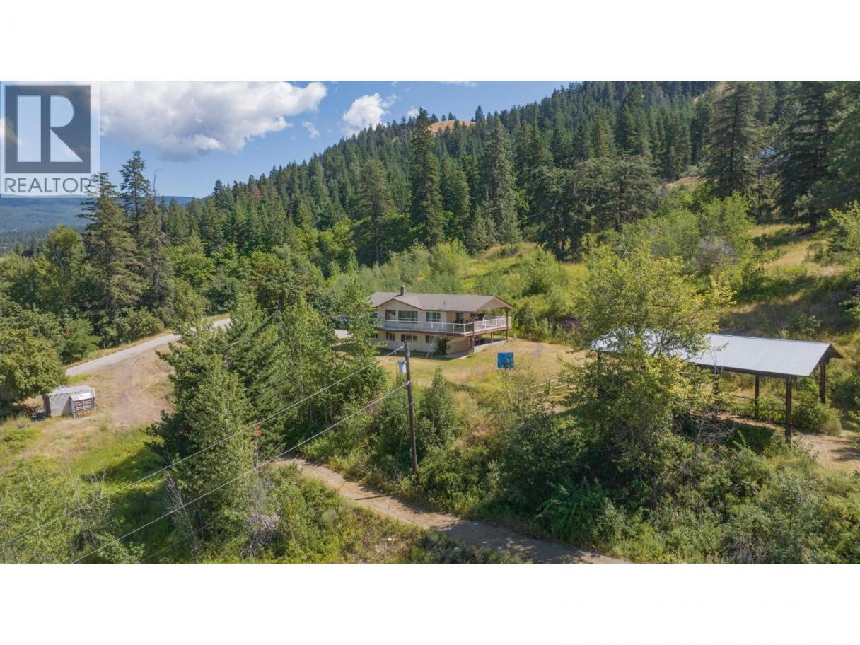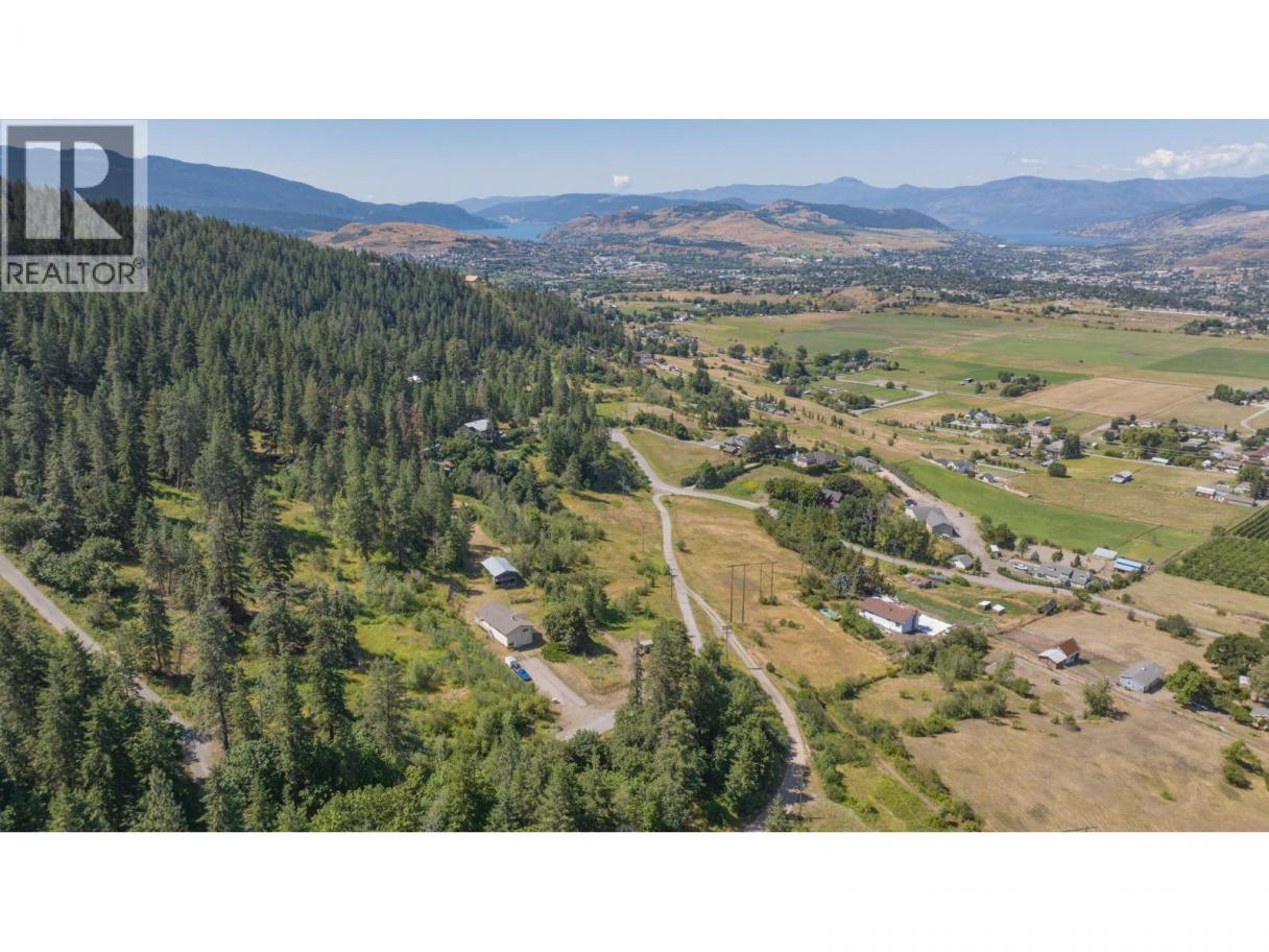 Stunning acreage with sweeping views of the Vernon Valley and Okanagan Lake, ideally perched in the sought-after North BX. Tucked away on a quiet, dead-end road, this private 8-acre property offers a mix of rolling hills, open clearings, and mature trees. The home is a daylight, grade-level entry design. Upstairs, the kitchen provides ample storage and flows seamlessly into the dining and living areas. From the dining room, step onto the covered wraparound deck and take in the gorgeous lake views. The living room features a wood ceiling with beam accents and large picture windows that perfectly frame the scenery. The primary bedroom offers direct access to the view-side patio, along with a walk-through closet and ensuite. A second bedroom and full bathroom complete the main level. Downstairs, you’ll find an expansive family room with large windows, abundant storage, and excellent suite potential—ready for your ideas. Zoned for a duplex or secondary residence, the property also includes a pole barn for storage. With plenty of space to explore, you’ll find both private treed areas and open spots ideal for building a secondary home.T his is a rare opportunity to own a peaceful acreage in a prime North BX location with endless possibilities. (id:6769)