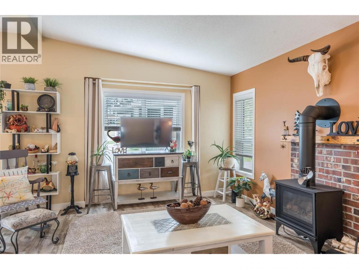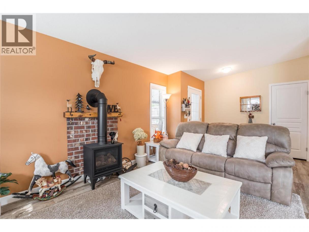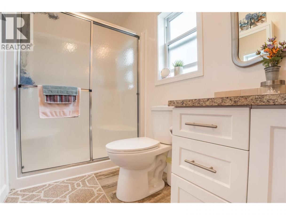 Welcome to one of the newer homes in the desirable Summokan Park – a quiet, well-maintained 55+ community in beautiful Summerland. This thoughtfully designed 2-bedroom, 2-bathroom unit offers a bright and spacious floor plan that’s sure to impress. Step into the open-concept living area, where natural light fills the space from the living room through to the dining area and kitchen. The spacious living room features a cozy gas stove for added warmth and ambiance. The kitchen offers ample cabinetry and prep space, plus there’s a separate laundry room with additional pantry storage. The large primary suite comfortably fits a king-sized bed and includes a walk-in closet and a private ensuite with a walk-in shower. The second bedroom is perfect for guests or can easily be used as a home office. Enjoy outdoor living on the covered, tiered deck—a great space for relaxing or entertaining. The generous yard includes room for raised garden beds and a 12' x 8' storage shed for all your tools and extras. Some furnishings may be included with the right offer. Pad rent $685 per month. No rentals, & two pets upon park approval ( max 15 inches at shoulder). (id:6769)