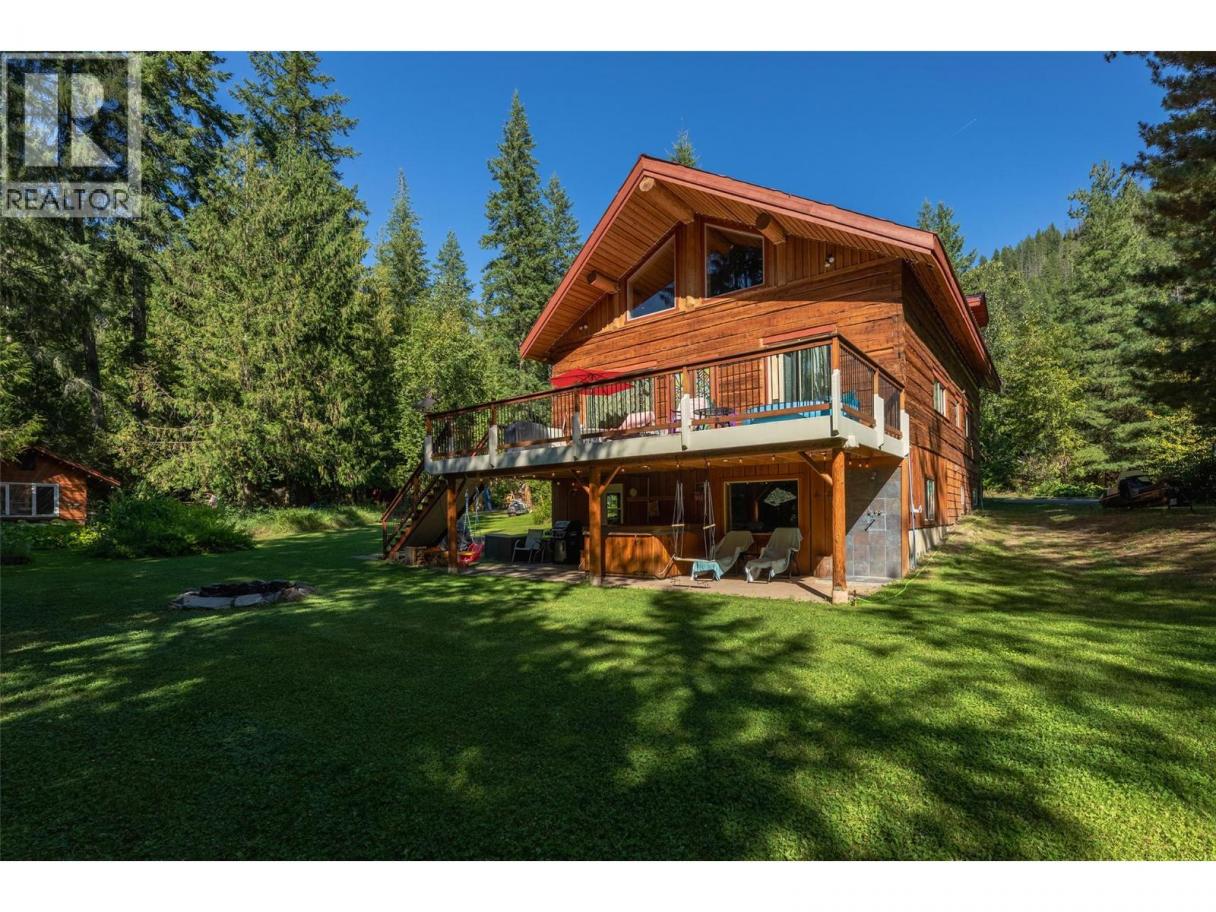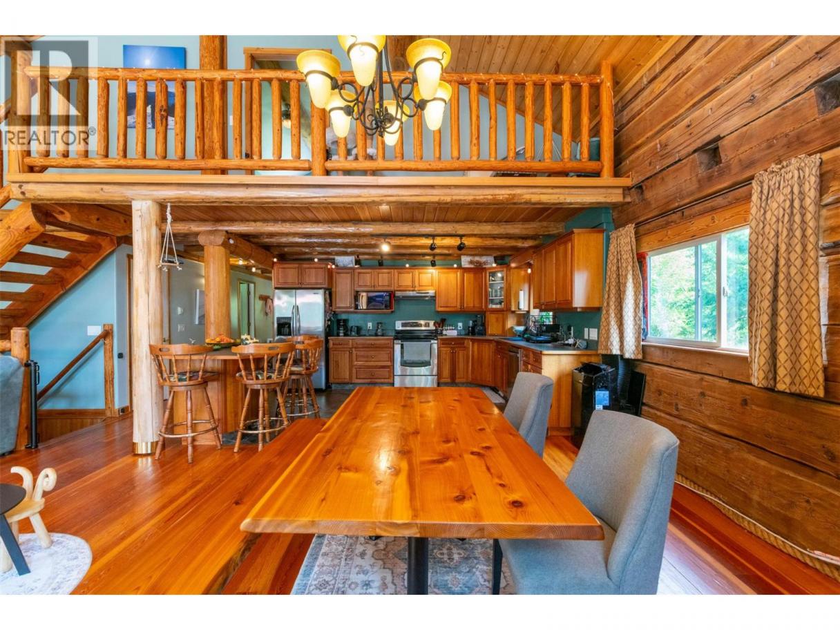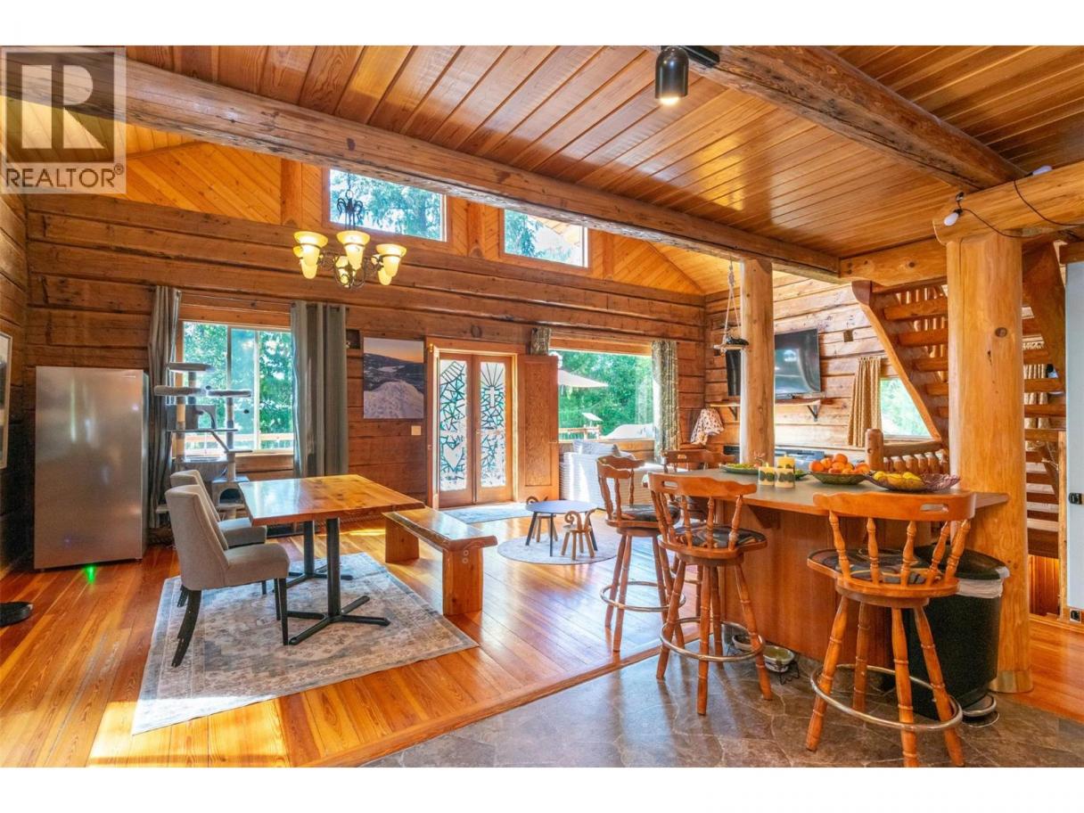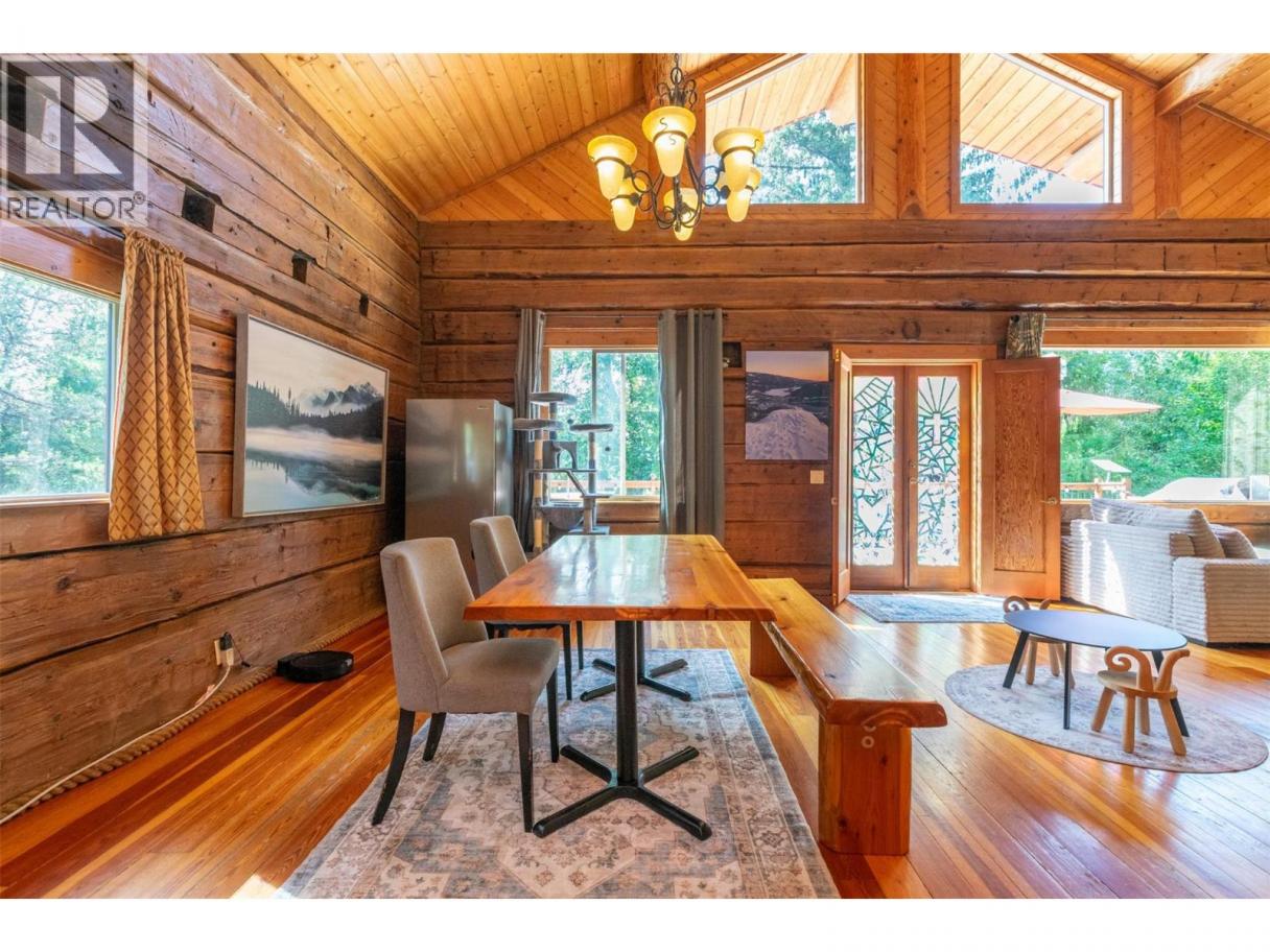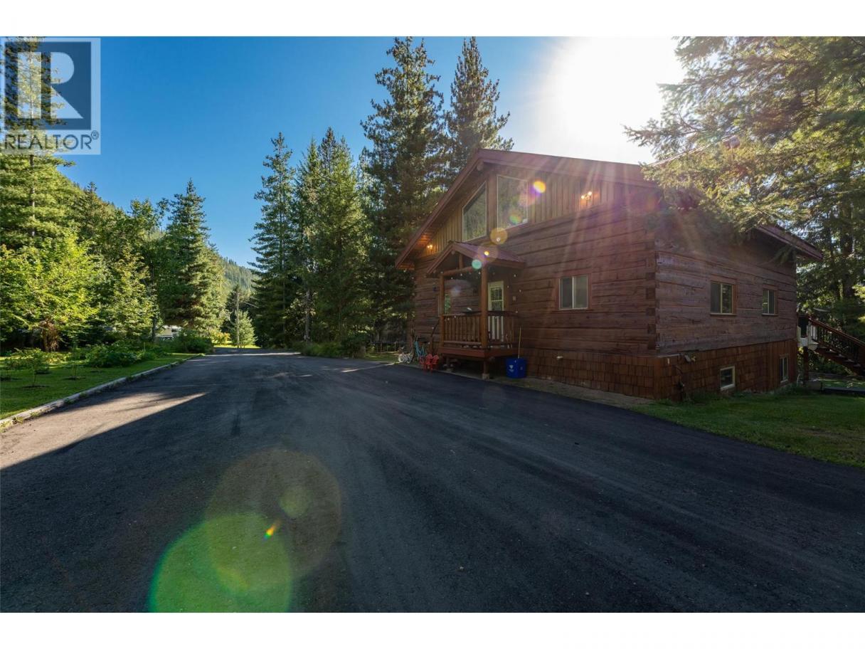 Rare Offering in Sicamous! Tucked away on 1.48 private acres, this custom Finlander hand-axed barn home is full of character and charm. With 4 bedrooms and 3 bathrooms, including a full suite downstairs that provides excellent short-term rental opportunities to help offset your mortgage, this home offers both comfort and income potential. Located only 5 minutes from downtown Sicamous, the boat launch, and the public beach, the property also features 70 feet of river frontage on Owl Creek, pastoral mountain views, and direct access to crown land right behind you. Outdoor living is at its best here with a large sundeck, hot tub with outdoor shower, fire pit, gardens, fruit trees, and a fully paved RV spot. A walk-out basement adds flexibility for family or guests, making this property a true Shuswap gem that blends privacy, lifestyle, and natural beauty. (id:6769)