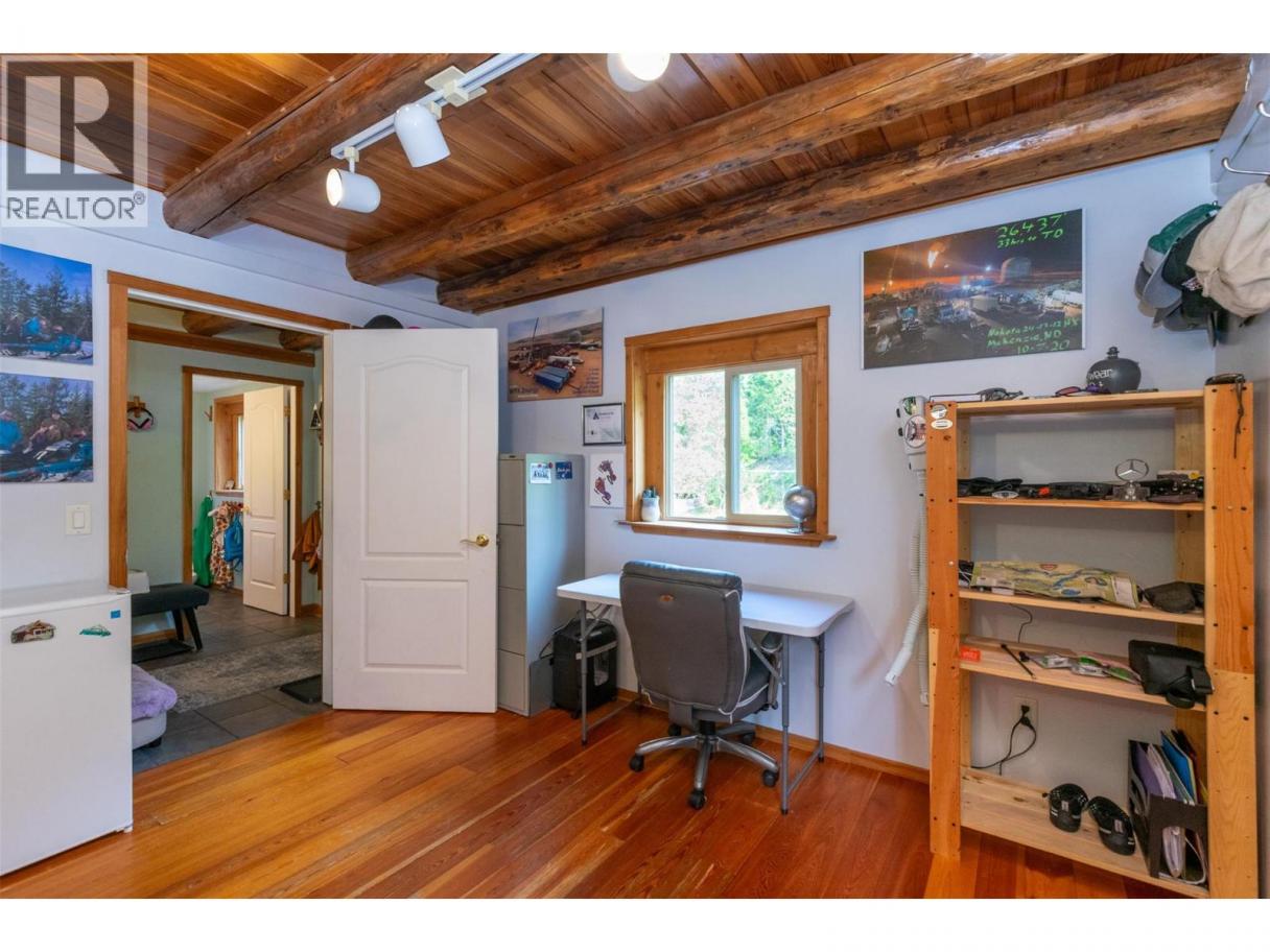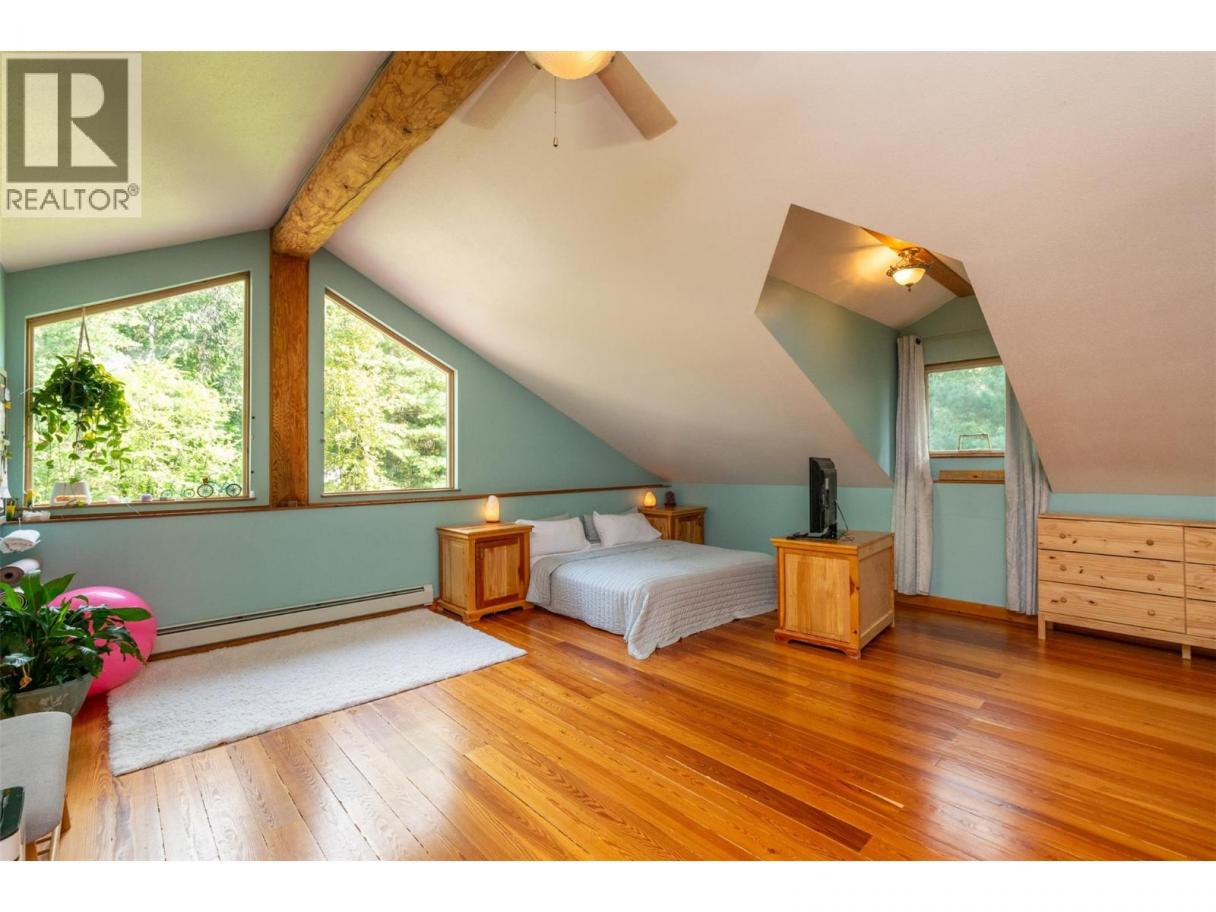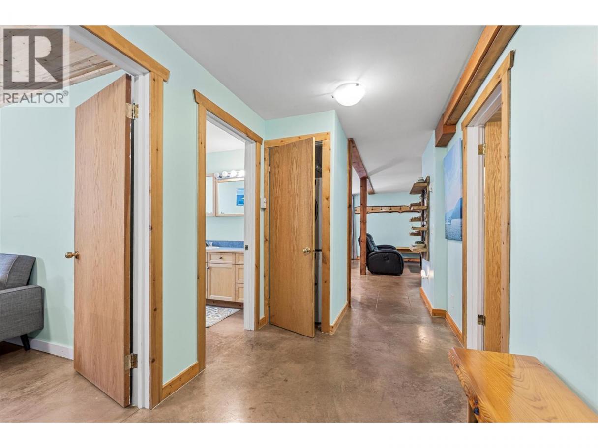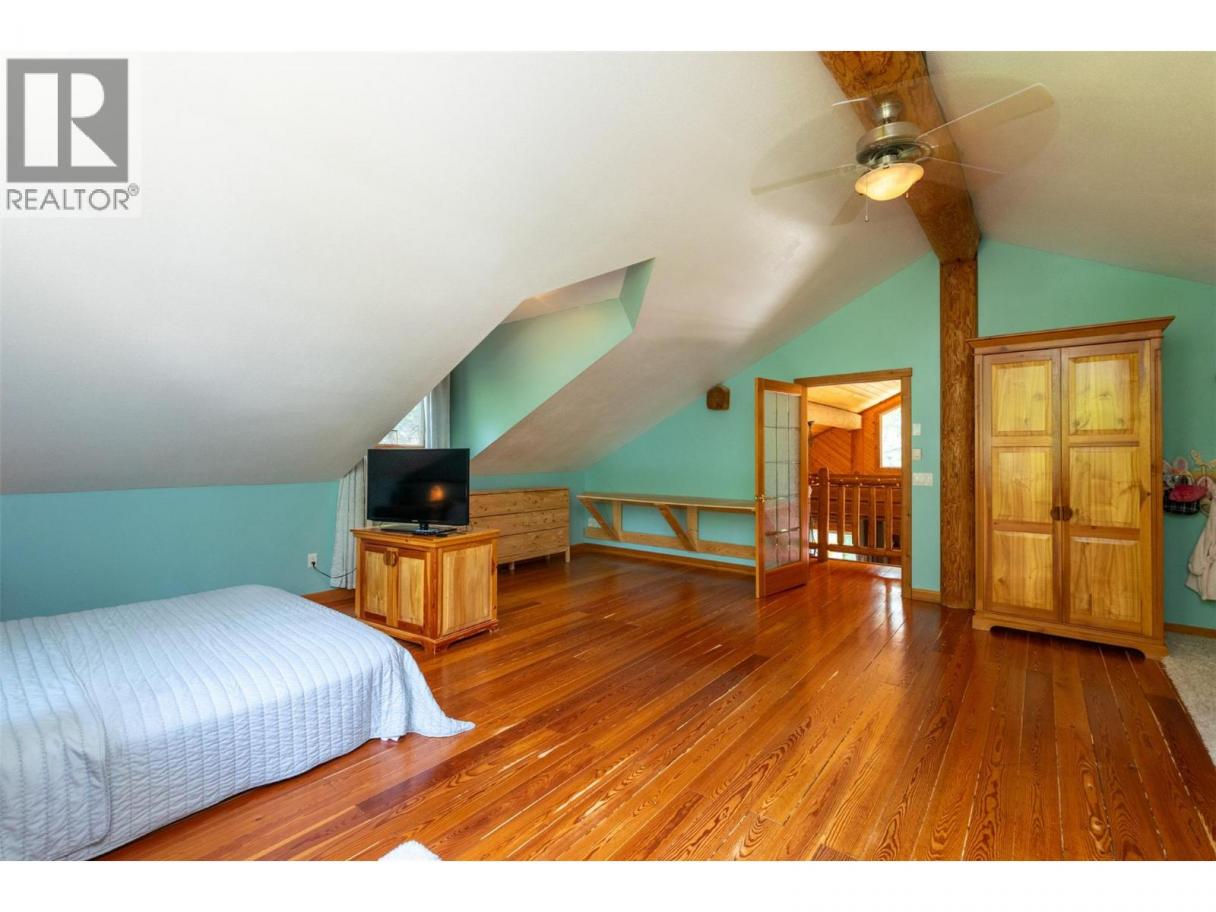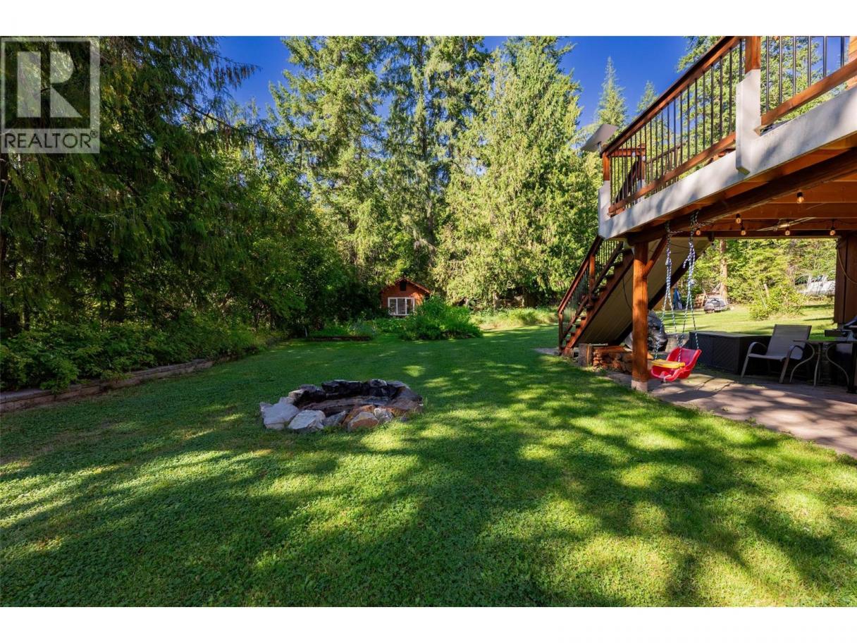 Rare Offering in Sicamous! Tucked away on 1.48 private acres, this custom Finlander hand-axed barn home is full of character and charm. With 4 bedrooms and 3 bathrooms, including a full suite downstairs that provides excellent short-term rental opportunities to help offset your mortgage, this home offers both comfort and income potential. Located only 5 minutes from downtown Sicamous, the boat launch, and the public beach, the property also features 70 feet of river frontage on Owl Creek, pastoral mountain views, and direct access to crown land right behind you. Outdoor living is at its best here with a large sundeck, hot tub with outdoor shower, fire pit, gardens, fruit trees, and a fully paved RV spot. A walk-out basement adds flexibility for family or guests, making this property a true Shuswap gem that blends privacy, lifestyle, and natural beauty. (id:6769)