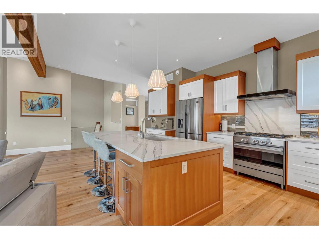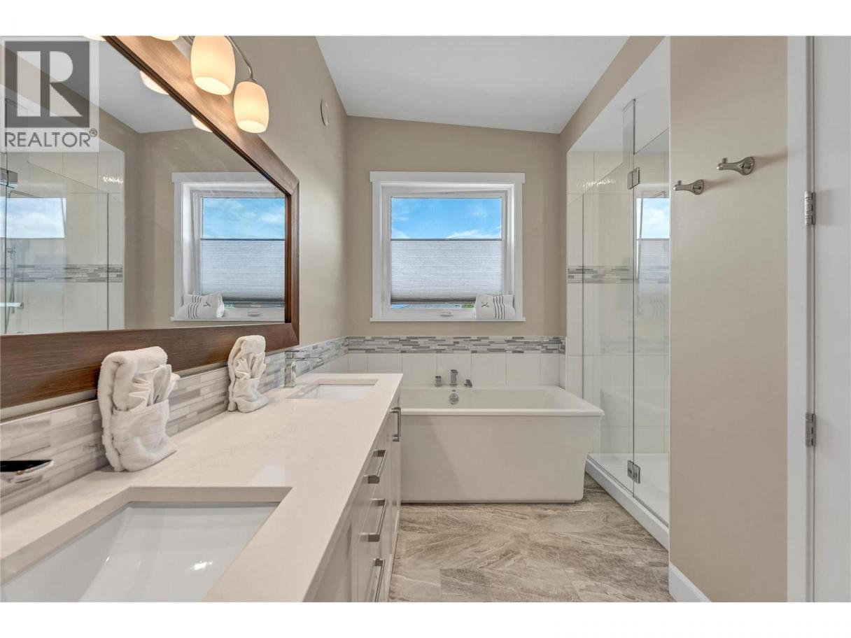 Perched high above the sparkling waters of Skaha Lake, this stunning 4-bedroom, 4.5-bathroom masterpiece offers over 3,000 sq ft of refined living space, built in 2018 with meticulous attention to detail. Designed to capture the essence of luxury Okanagan living, every angle of this home showcases unobstructed, sweeping west and south-facing views that will leave you breathless. A soaring entryway welcomes you, setting the tone for the open-concept design and contemporary sophistication that flows throughout. The main living area is an entertainer’s dream, featuring a wall of floor-to-ceiling windows and Euroline doors that flood the space with natural light while seamlessly blending indoor and outdoor living. Step out onto the expansive main balcony – the ultimate vantage point to watch the sun sink behind the hills and paint the lake with evening colours. The chef-inspired kitchen is as beautiful as it is functional, featuring high-end appliances, sleek cabinetry, and an oversized island perfect for hosting. Each of the bedrooms offers a private sanctuary, complete with its own ensuite bathroom for ultimate comfort and privacy. The primary suite is a true retreat – complete with its own private balcony, a lavish 5-piece ensuite featuring a deep soaker tub and a large shower. The home’s versatile design offers the potential for a self-contained main floor suite, ideal for guests, extended family, or as an income opportunity (id:6769)