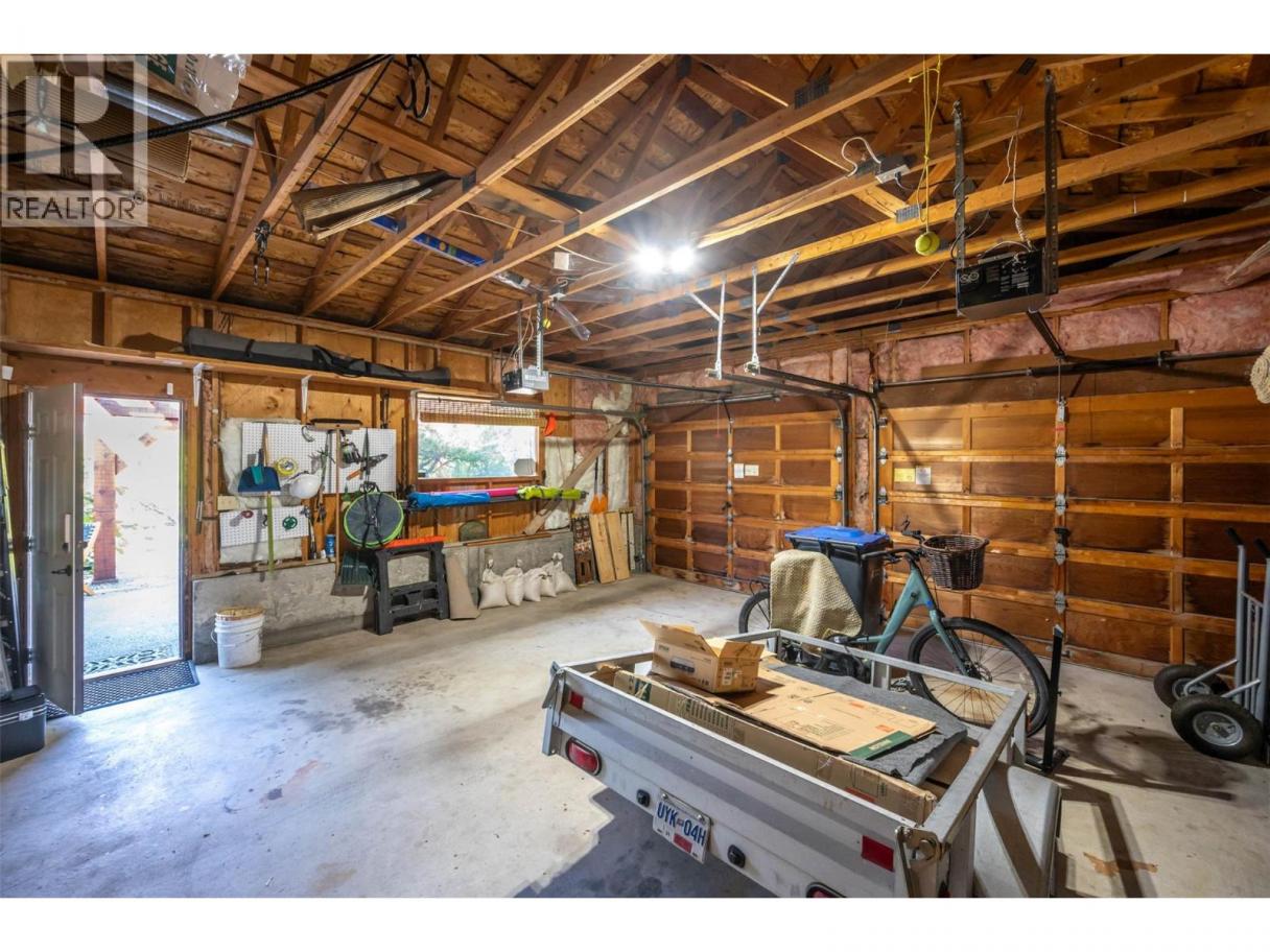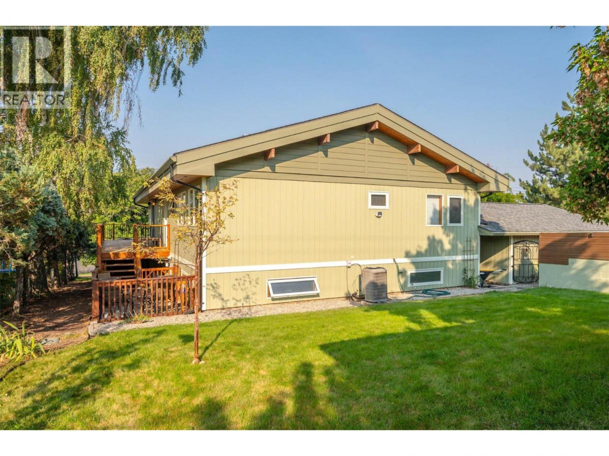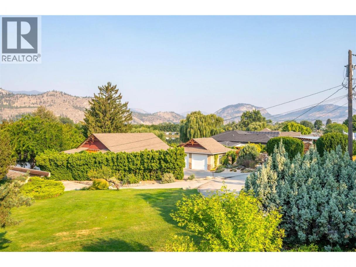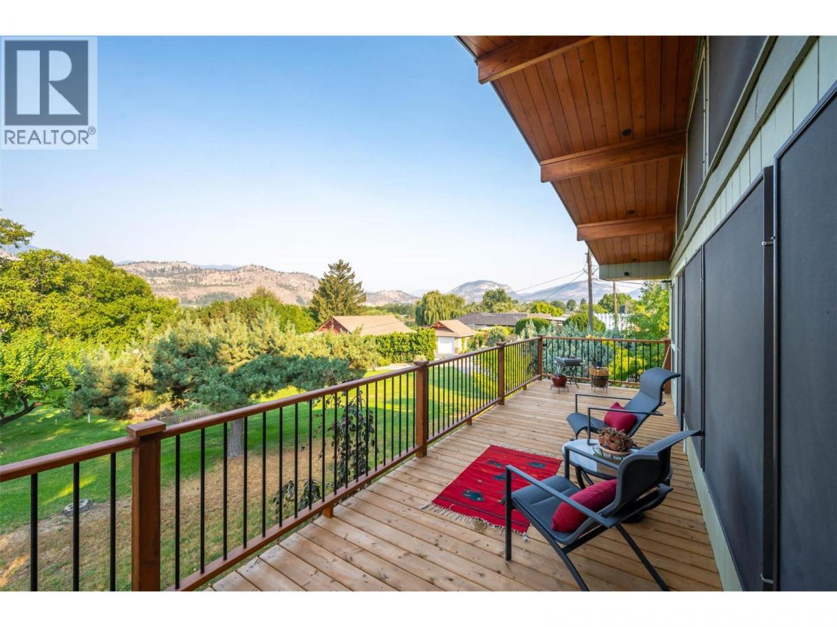 Lovely custom-built character home on a quiet cul-de-sac just east of Oliver, offering 3,112 sq ft of living space on a 0.208-acre lot with lake views. This thoughtfully designed residence features soaring vaulted ceilings with exposed beams, a wall of windows that flood the interior with natural light, and both open and covered decks to enjoy the scenery. The main level showcases hardwood flooring, updated light fixtures, and an updated sundeck, while the lower level includes an in-law suite—ideal for extended family, guests, or potential use as an Airbnb. With 4 bedrooms, 4 bathrooms, and 2 kitchens, there is room and flexibility for everyone. Recent upgrades include a new furnace, air conditioning, hot water tank, water softener, completed eavestroughing with downspouts, UV-protected window screens, and a radon mitigation system. The main living area features an updated high-efficiency fireplace insert, while the suite includes its own wood stove for added comfort. Outdoors, enjoy a fully enclosed garden/play area, a large custom post-and-beam arbour, and a garden/tool shed—perfect for the hobbyist or gardener. The double semi-detached garage provides secure parking and storage, with a spacious driveway for extra vehicles. Just minutes from town amenities yet tucked away for privacy, this is a one-of-a-kind home that blends character, comfort, and modern updates—all ready for its next chapter. (id:6769)