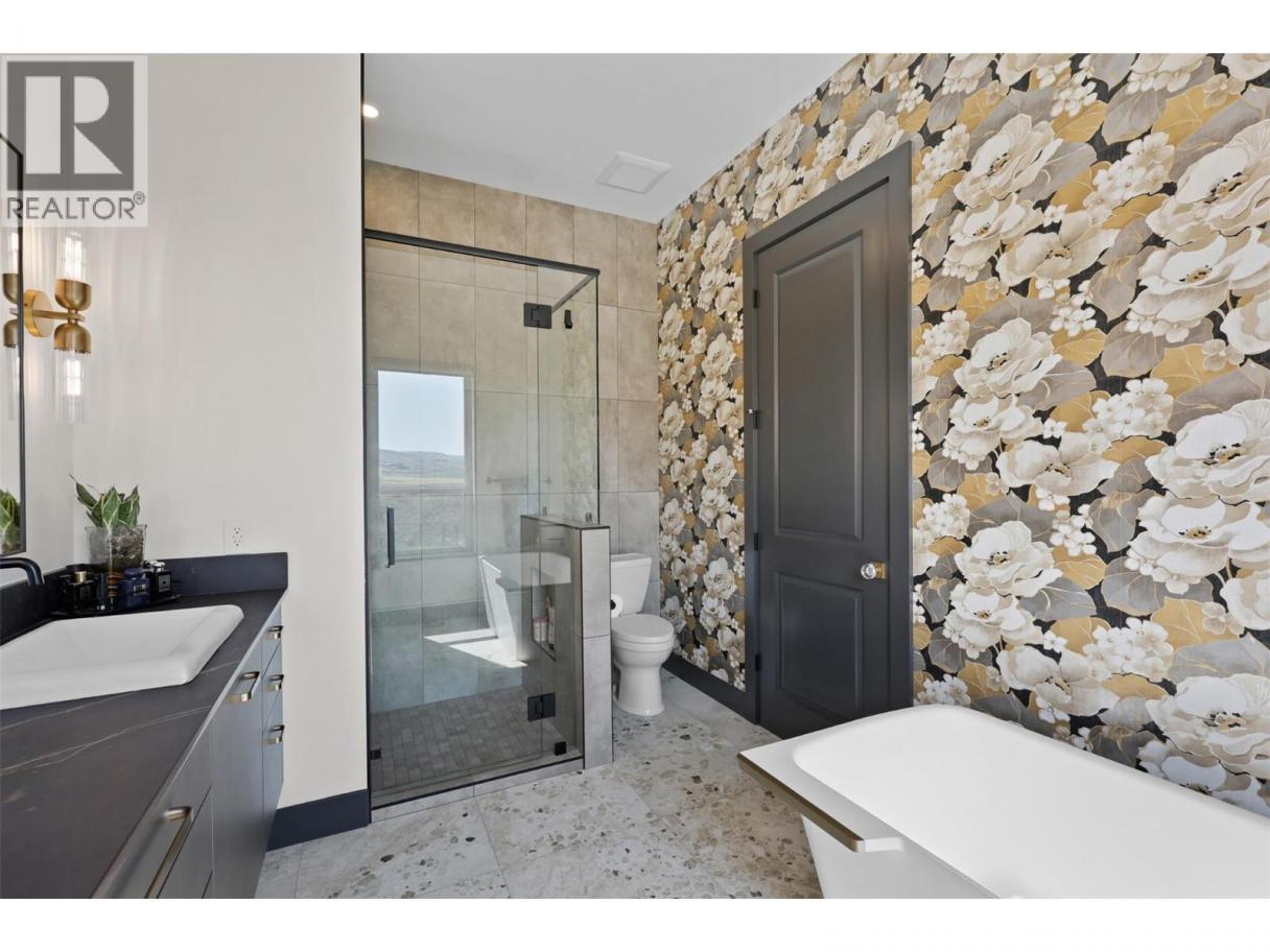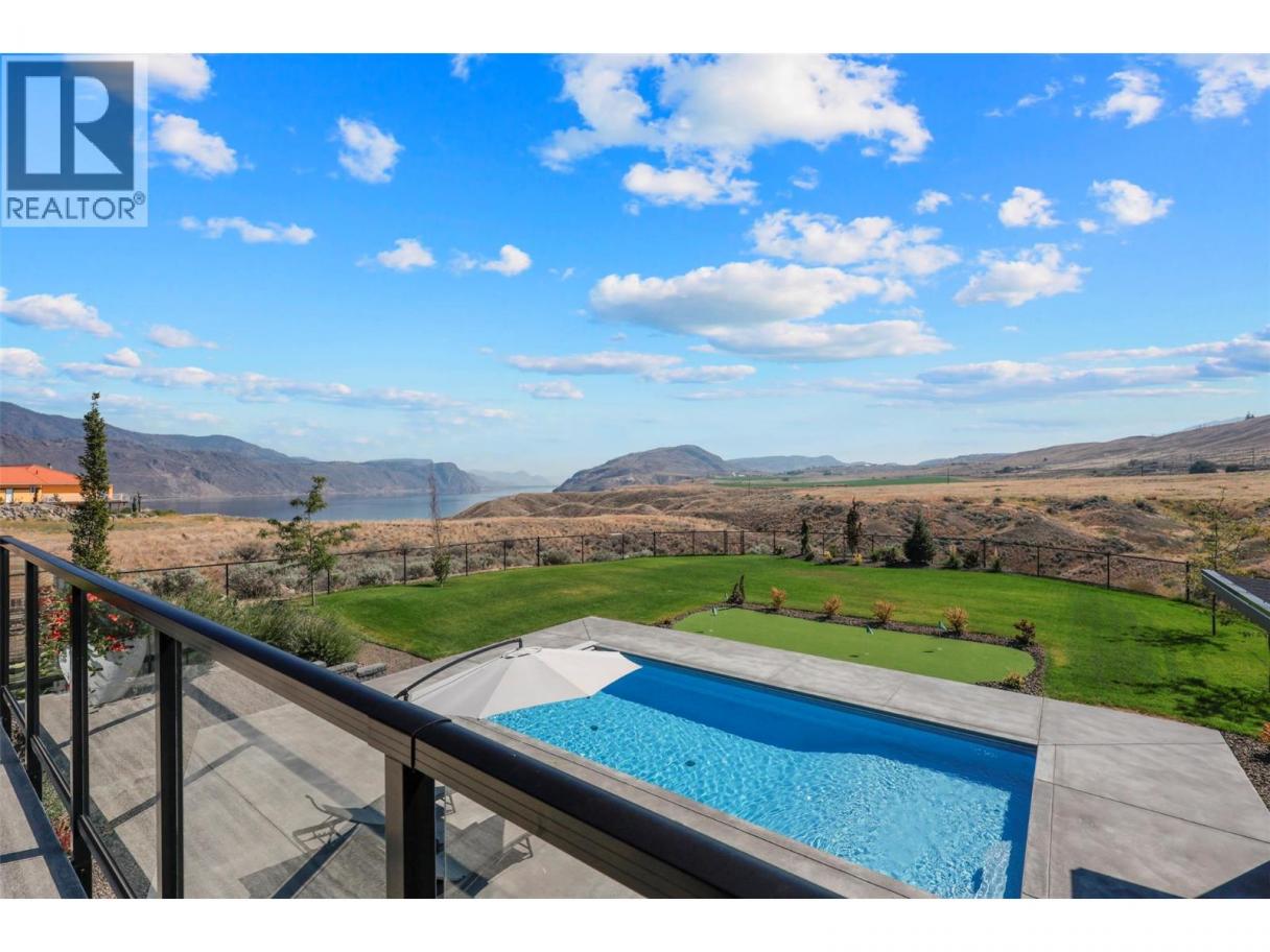Welcome to 115 Lake Point Court, a masterfully crafted rancher perfectly situated on a 32,900+ sq.ft. estate lot in the sought-after community of Tobiano. Designed with an uncompromising attention to detail, this residence showcases soaring 10ft ceilings on the main level, engineered hardwood floors, custom cabinetry with built-in appliances, and quartz countertops throughout. The expansive great room is anchored by a stunning fireplace feature and framed by walls of windows capturing panoramic mountain views, while the chef-inspired kitchen with walk-in pantry blends beauty with function. The private primary suite offers a spa-like retreat with stone soaker tub, walk-in shower, dual vanities, and a custom walk-in closet. A second bedroom, elegant powder room, and a well-appointed mudroom/laundry complete the main floor. The fully finished walk-out basement is designed for entertaining with a large rec room and games room with wet bar, three additional bedrooms, two full bathrooms, and versatile space to be used as a den or extra storage. Step outside to a resort-inspired backyard featuring a 32x16 saltwater pool with automatic cover, pool shed with pump room, covered patio, and a fully fenced, professionally landscaped yard. Just steps from Kamloops Lake and the award-winning Tobiano Golf Course, this exceptional home offers the perfect blend of refined luxury, modern comfort, and the unparalleled lifestyle that Tobiano is known for. (id:6769)