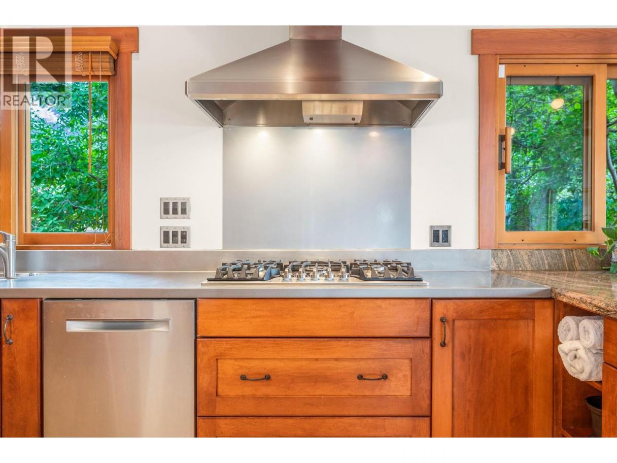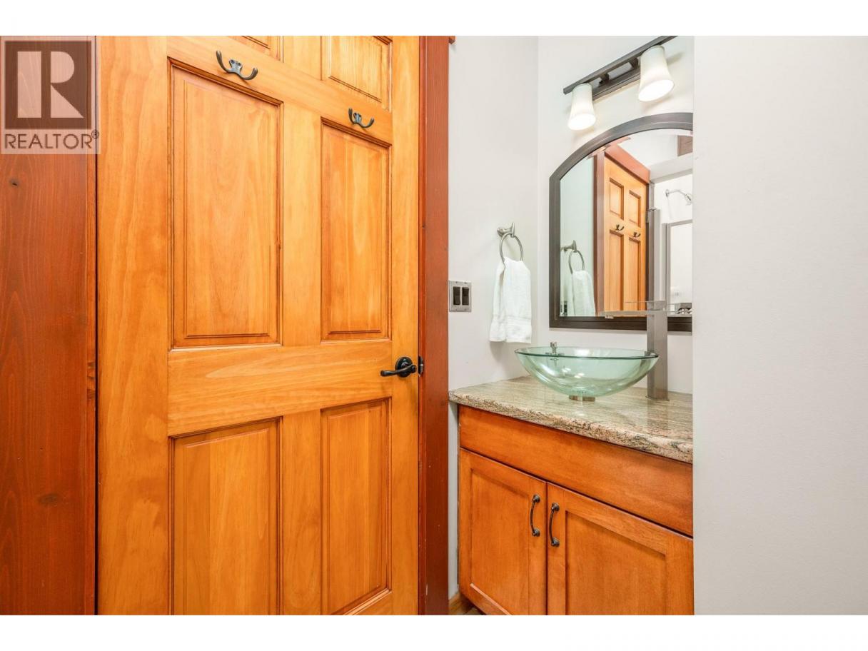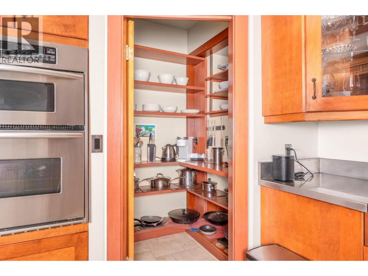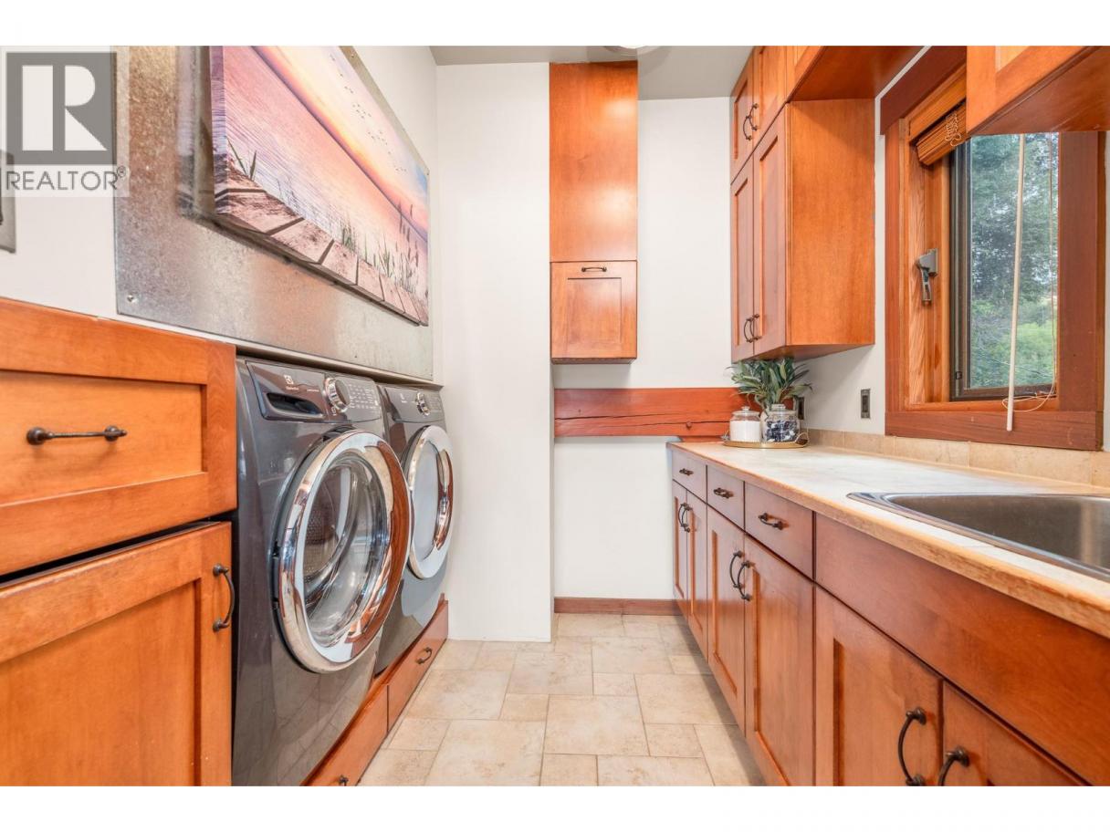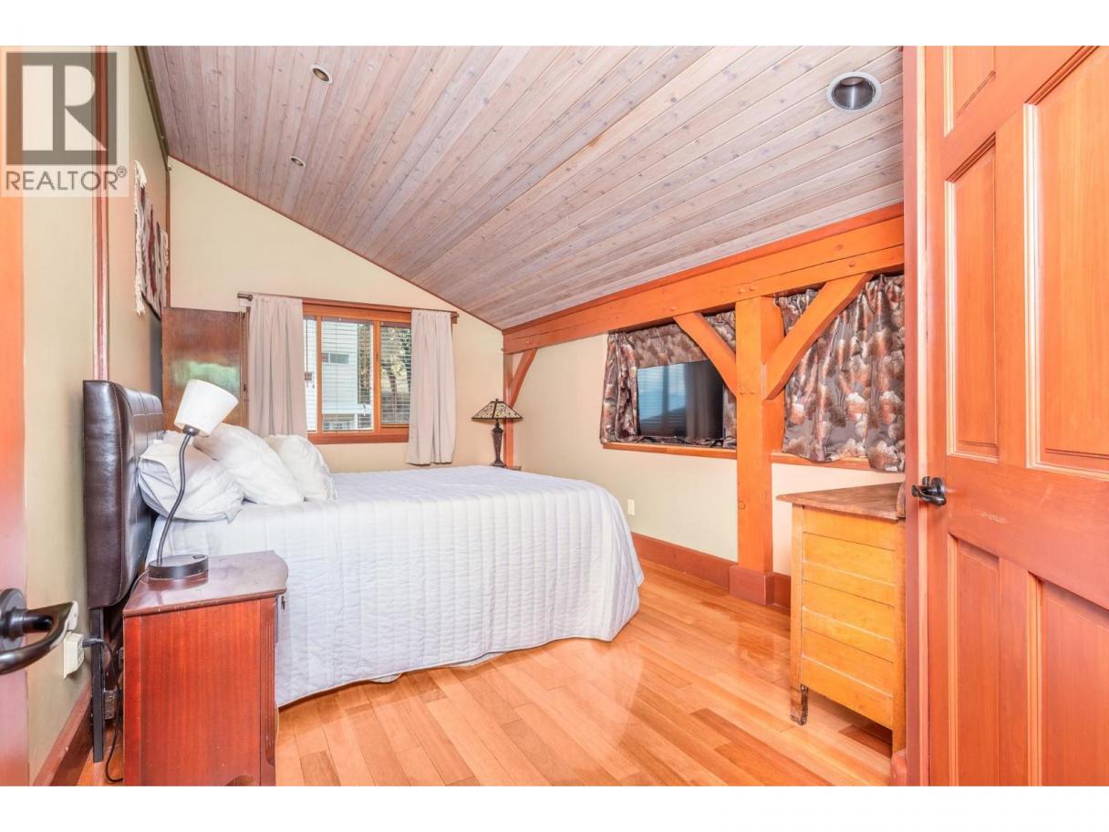 Experience Okanagan lakeside living in this exquisite custom timber frame chalet with European-inspired craftsmanship located on bare land strata. Striking exposed beams, intricate metal art accents, and 2 carved wood doors create a warm, timeless atmosphere. A private walkway leads to a newly constructed large, shared dock with boat moorage, perfect for summer adventures, water sports, or sunset cruises with friends and family. Inside, hardwood and tile floors flow throughout for durability and style. The chef’s kitchen is a showpiece with stainless steel counters, a granite peninsula, and a powered walk-in pantry that keeps appliances neatly tucked away. Laundry is conveniently located off the kitchen with extra storage. The top-floor primary suite is a true sanctuary with panoramic lake views, private deck, walk-in closet, spa-inspired ensuite, and enough room for a generous sitting area. The second bedroom below offers spacious accommodations and its own private ensuite ideal for family or guests. The walk-out lower-level features a private entry; excellent potential for a self-contained studio suite or an additional bedroom. Outside, ample parking for up to 6 vehicles via garage, two carports, and driveway parking. Three storage sheds, and abundant space for lake toys makes lakeside living effortless. 10 mins to city center and steps to Kin Beach, this is a rare property combining artisan detail, exceptional design, and the true Okanagan lifestyle in a coveted location. (id:6769)
