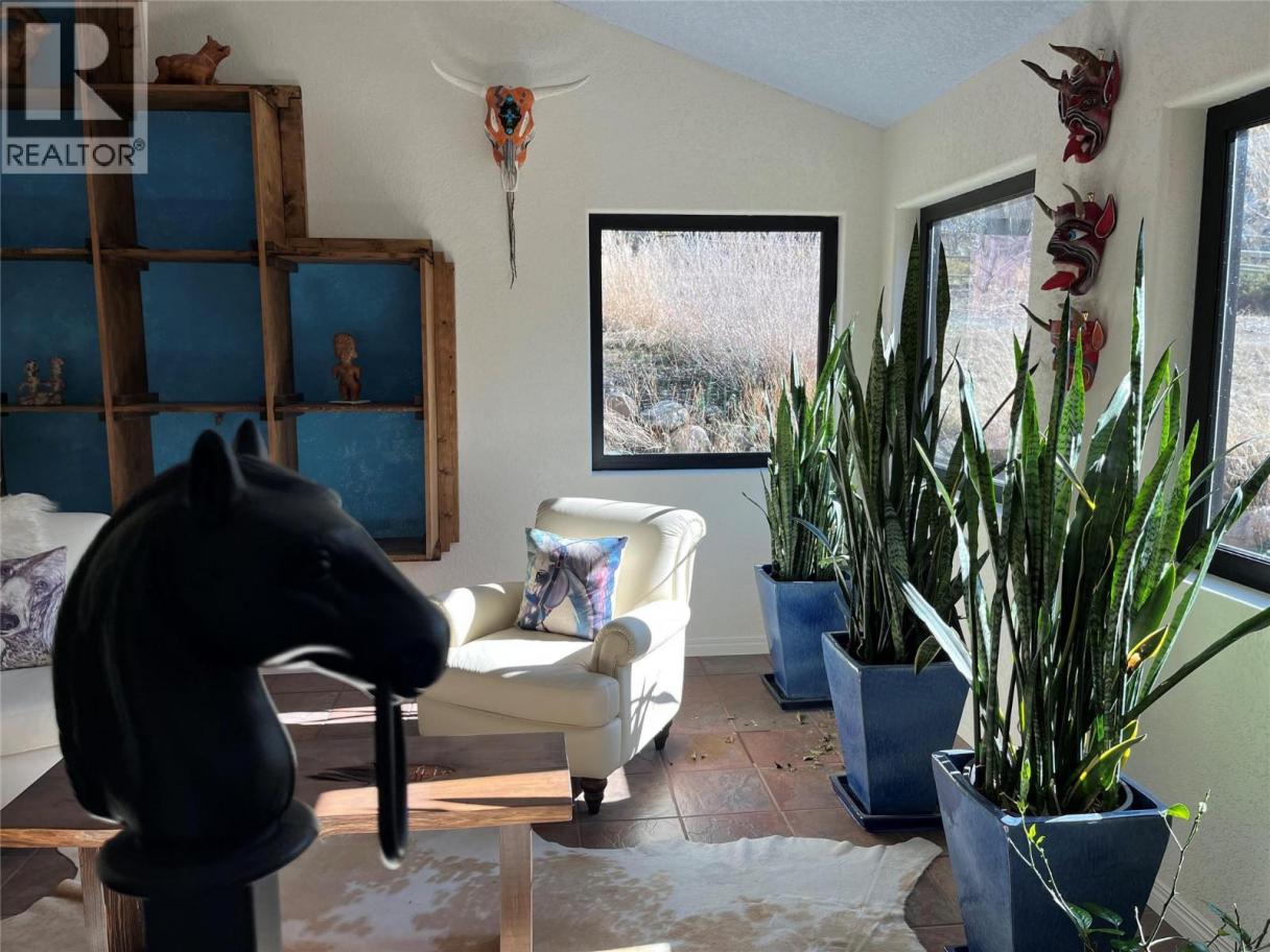 Flat fenced and cross fenced 6.3 acres with city water plus drilled well. Massive 40' x 48' heated and air conditioned shop with 14' high doors. Also 40' x 48' modern barn with 3-6 paddocks, heated tack room, separate corrals, riding arena and outside lean to. Very little of pre-existing home left as new 4700 sq ft home built and finished off in very high quality in past 3 years. 3 bedrooms, plus office, 10ft high ceilings, ultra modern kitchen - 'Cafe' brand oven and fridge, heated tile floors, back up electric furnace, massive master bedroom with ensuite. Copper tub w/wash basins. Massive open rec room decorated in high quality and Mexican decor. Large covered sundeck, bird avery, greenhouse and more. Too many high end quality features to mention. Only 15 mins from downtown, basically a 2-3 year old home, massive heated air conditioned shop and very functional and modern barn. Great property for horse enthusiasts or large trucks. Everything is “Done up Right” on the improvements and dwellings on this property. (id:6769)