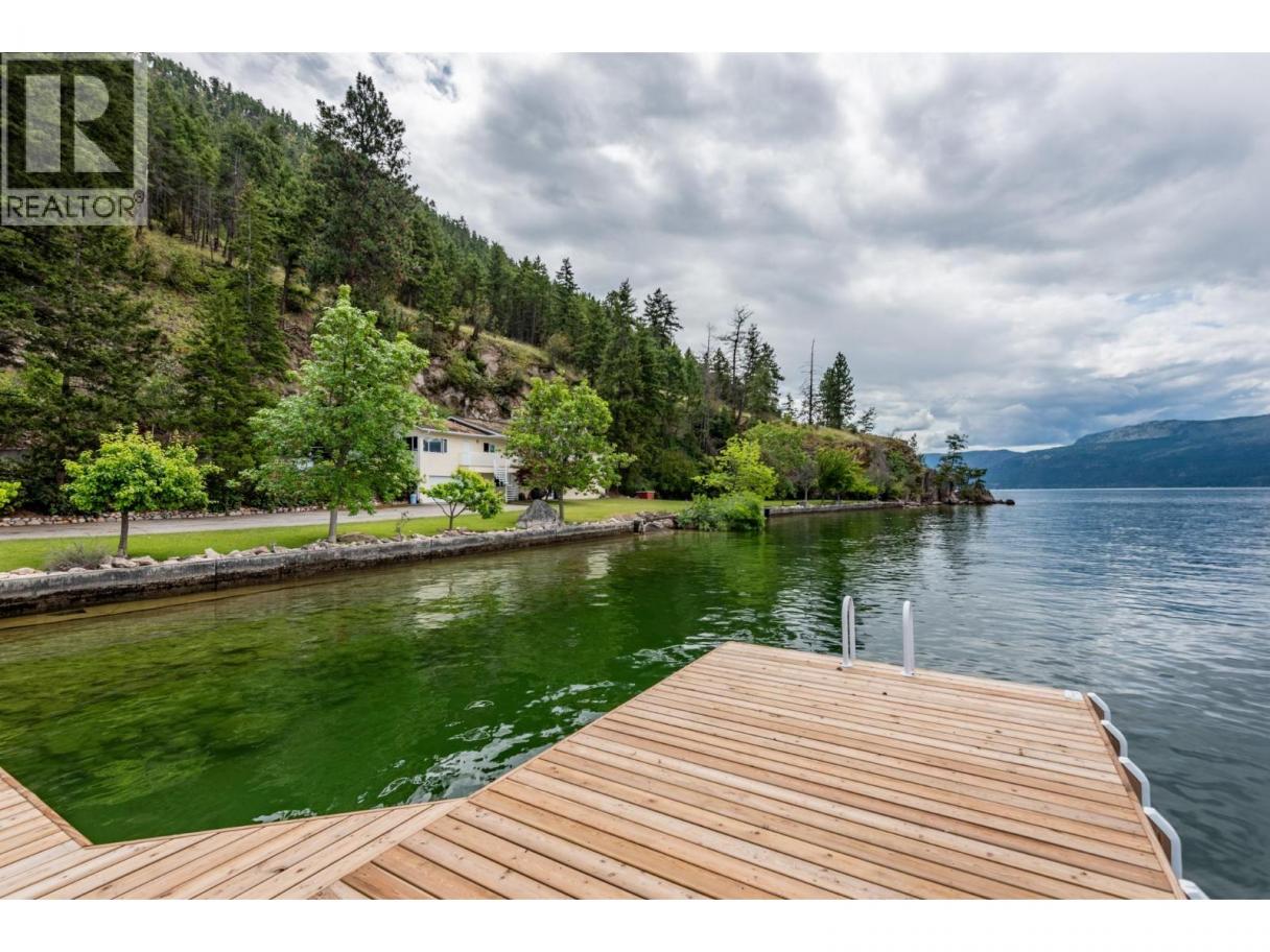 Presenting this amazing end-of-the-road 5 bed, 4 bath Lakefront Estate home located in the prestigious, gated Eastside Estates community. If privacy and location are what you are looking for, the property boasts 399 feet of pristine Okanagan lake frontage on 10.625 acres. Surrounded by Ponderosa Pines, beaches leading to crystal clear water, and stunning views of Terrace Mountain this property is your perfect oasis. Enjoy summer days on the newly constructed private pier and end the day watching the sunset from the covered balcony. The upper floor consists of three bedrooms and three baths while the large basement is fully finished including two bedrooms, a full bath, recreation room, laundry, flex room off of the garage, and a mechanical room. The kitchen features teak cabinetry and mainly marble flooring throughout. Located along picturesque Eastside Rd about 20 mins from downtown Vernon but very close to Ellison Park, Wineries, Predator Ridge and Sparkling Hill Resort. NO Speculation Tax. (id:6769)