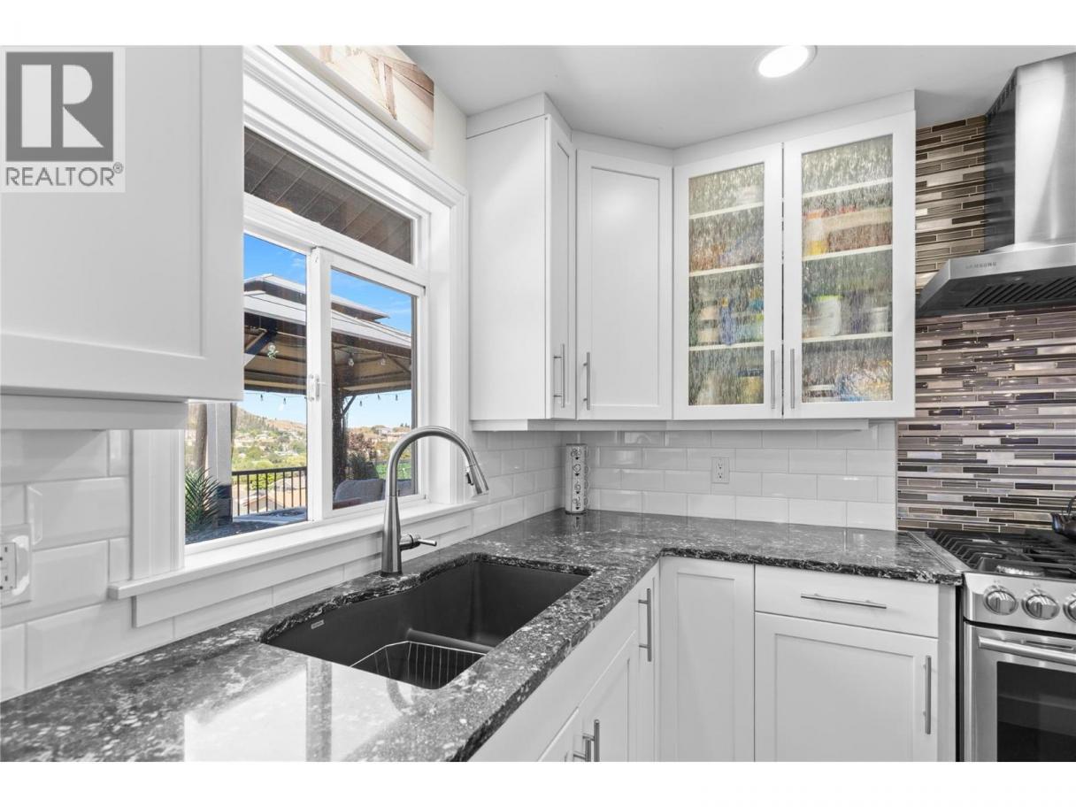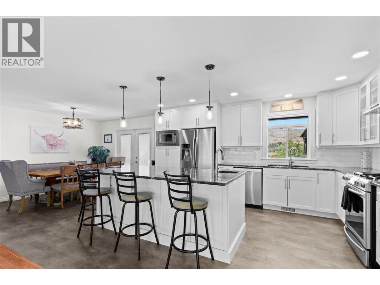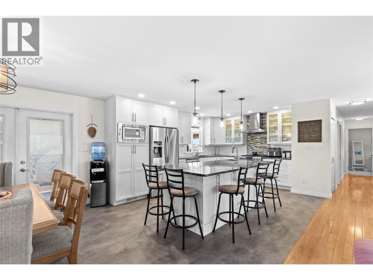 Welcome home! This move-in ready 5 bedroom, 3 bathroom plus den residence provides exceptional space for a growing family. Extensively updated in 2018, it showcases a bright, open concept kitchen, dining and living area. Ideal for entertaining, the chef’s kitchen features quartz counters, modern white soft-close cabinetry, a gas range, and an oversized island with bar seating. The sunlit living room offers hardwood floors, plenty of room for furnishings, and a cozy wood-burning fireplace. The main bath includes dual sinks, heated tile floors, and a tiled shower. Down the hall sits one of the 5 bedrooms, while the spacious Primary retreat at the end includes a spa-like ensuite with heated floors, walk-in shower, oversized soaker tub, built-in vanity and private water closet. French doors open to a serene patio and hot tub, the perfect spot to unwind while enjoying the view. The expansive upper deck is ideal for outdoor dining or lounging, with direct access from the dining room and Primary suite. Downstairs, a generous recreation room with gas fireplace, three additional bedrooms, laundry with 3-piece bath, and a den/office with separate entrance provide endless options. A covered lower patio extends your living space outdoors, backyard is low-maintenance with synthetic turf and rock scaping. With ample storage, versatile spaces, and a layout that balances comfort with style, this home is truly move-in ready. Book your private showing today and start imagining life here! (id:6769)