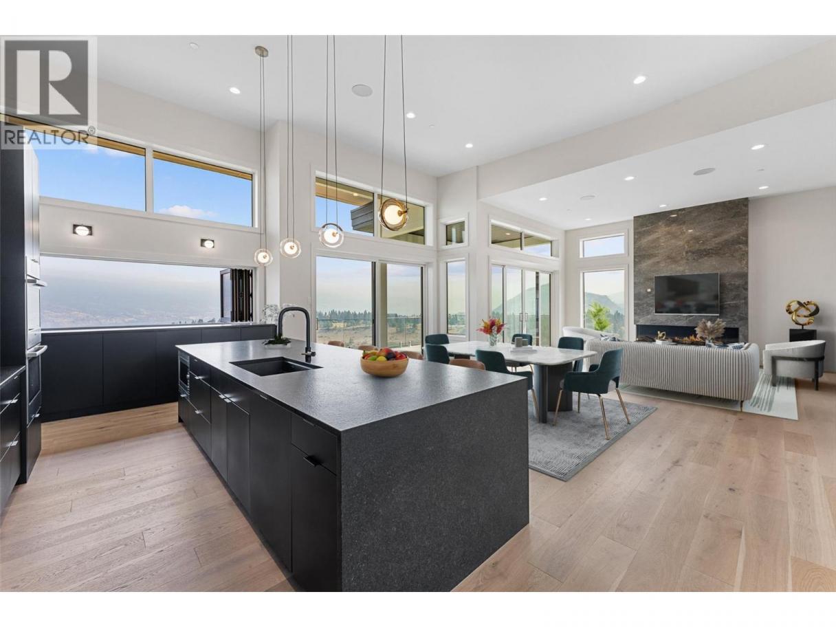 Brand new and net-zero ready, this architectural showpiece by Gelcor is set in Summerland’s coveted Hunters Hill community - an area exempt from the foreign buyer ban. With panoramic 180 views of Okanagan Lake, vineyards, & mountains, the home blends design excellence with forward-thinking innovation. Inside, wide-plank oak floors, soaring ceilings, & walls of glass frame the lake beyond. The kitchen is a culinary masterpiece with professional Bosch appliances, granite surfaces, walk in pantry, & a dramatic island with an adjacent pass through that opens to a deck w bar seating & built-in speakers. The main level hosts a dining room, living area with tiled feature wall & fireplace, & a serene primary suite w a spa-like, award-nominated, ensuite w heated floors, freestanding tub, & lake views. The lower level extends the lifestyle: a rec room with nano doors to the covered patio, a quartzite waterfall edge wet bar, glass-walled wine cellar, theatre, gym, & guest suites, all capturing lakefront vistas. Lower level flooring is heated excluding the wine room & gym. Outdoors, xeriscape landscaping frames a generous side yard, a pool permit is in place. Upgrades include 3 zone indoor/outdoor speaker system, triple-glazed windows, sprinkler system, EV-ready 3-car garage w epoxy floors, & suspended slab construction. A rare opportunity to own a design-forward home that redefines Okanagan living. (id:6769)