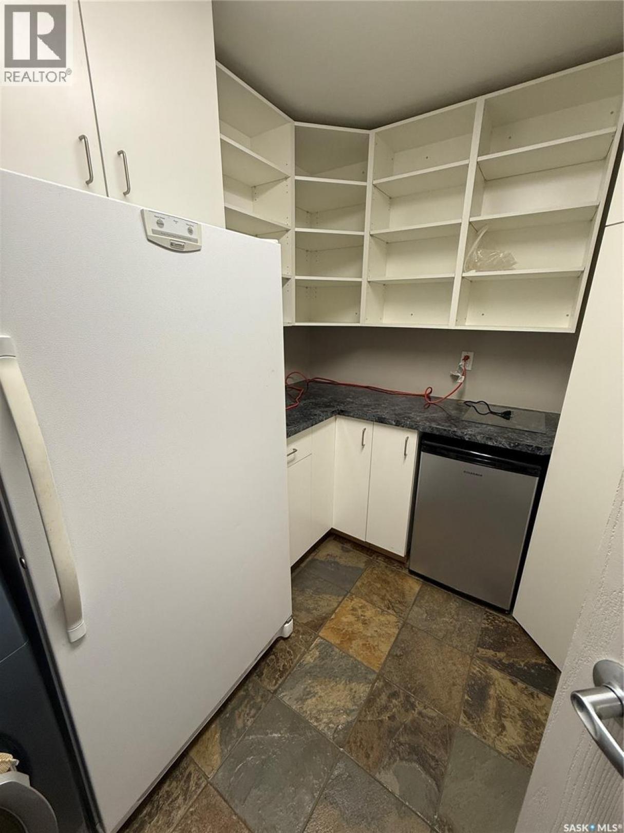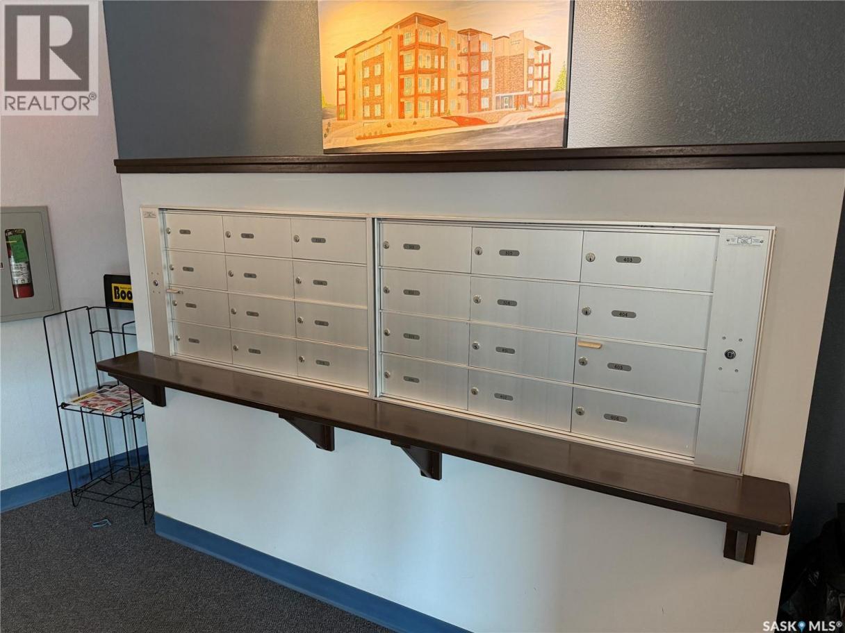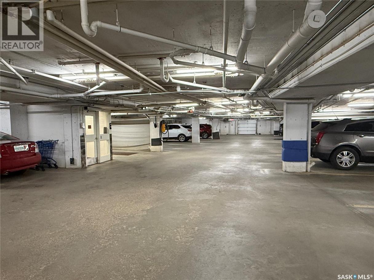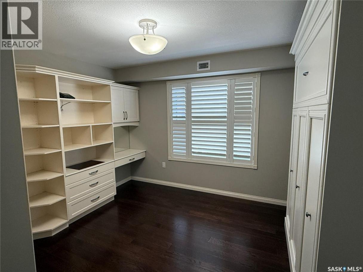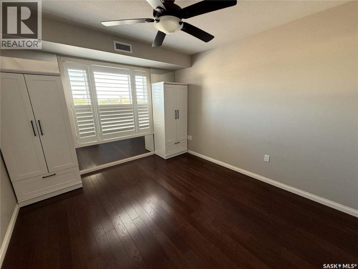 Executive 4th Floor Condo with Sweeping Views. Step into this beautiful condo where luxury and comfort meet. With soaring 11' ceilings and expansive windows, the home feels bright, airy, and welcoming. The two-sided balcony is the perfect spot to sip your morning coffee or enjoy an evening sunset while taking in the panoramic views. The heart of the home is the white kitchen, featuring upgraded solid countertops, fresh backsplash, and plenty of storage with an abundance of drawers. Just off the kitchen, a beverage centre makes entertaining a breeze, while a custom lit display wall adds elegance and personality to the living space. Thoughtful touches are found throughout—custom wood shutters, built-in storage, and even a Murphy bed for when friends or family come to stay. The primary suite is a private retreat with a walk-in closet and a spa-like ensuite, complete with double sinks, and jacuzzi tub. A second bedroom and full bathroom with a walk-in shower ensure comfort for guests. Practical and stylish details add ease to daily living: In-suite laundry with built-in shelving, mini fridge, and stand-up freezer included. Warm hardwood and tile flooring throughout and a private furnace and central A/C tucked away off the balcony for year-round comfort. Another notable feature of this building is the wide hallways and ample visitor parking. Enjoy access to a welcoming common room, fitness area, and a handy wash bay in the heated underground parking garage, where your car stays comfy inside all year long. The building also offers a recycling program and a sense of community. More than just a place to live, City View Estates is where you will find the perfect balance of style, comfort, and convenience. (id:6769)
